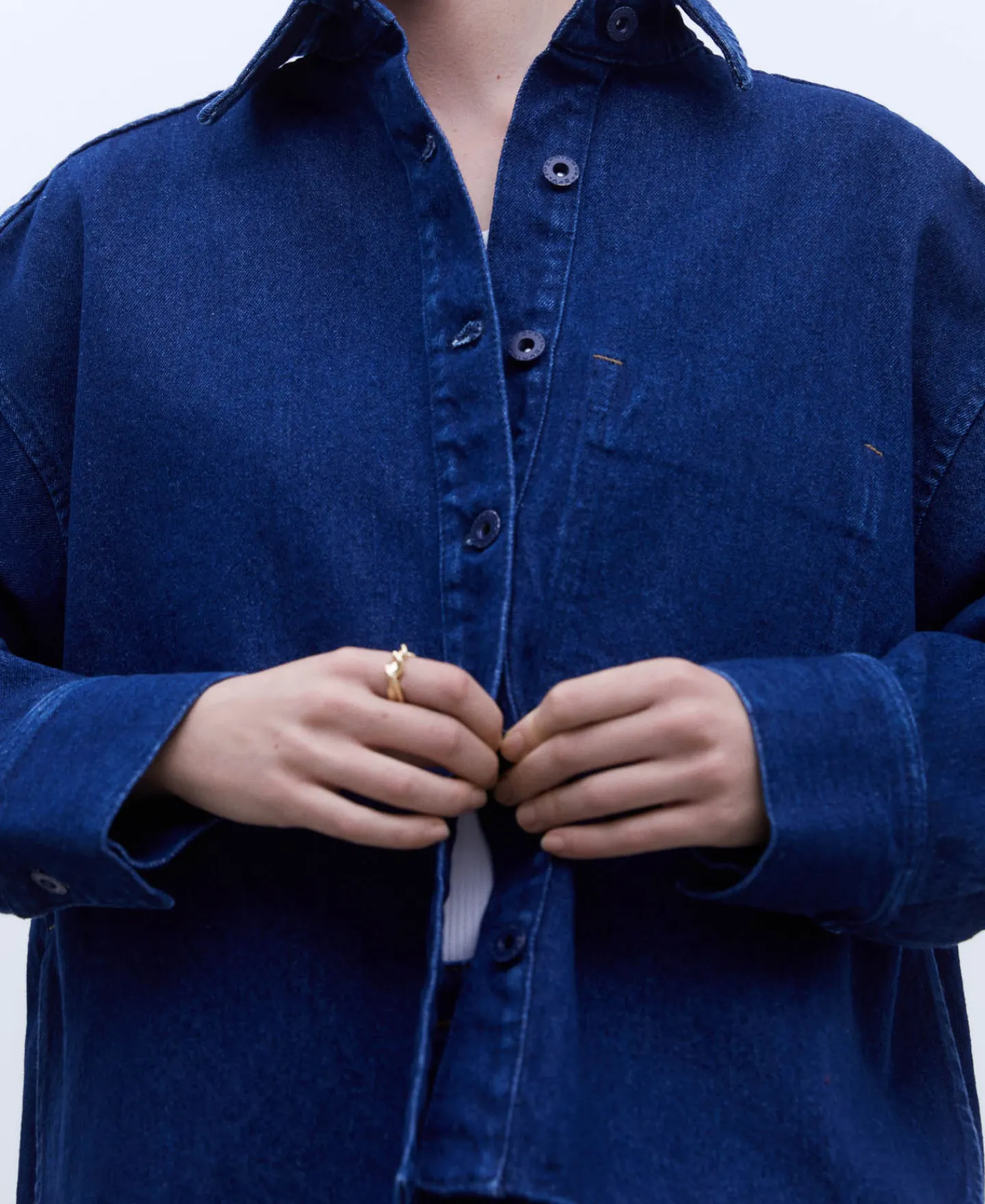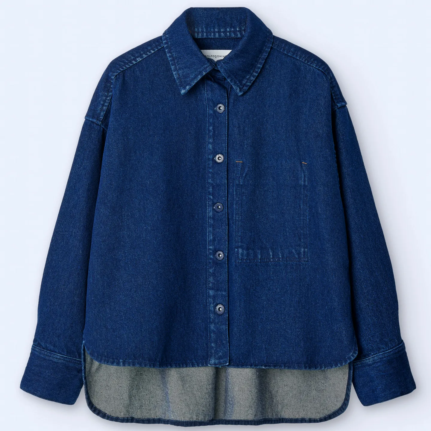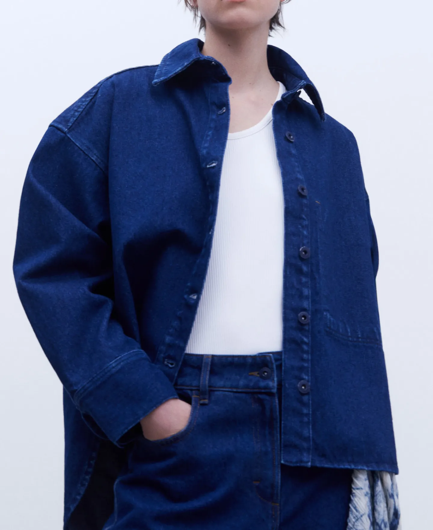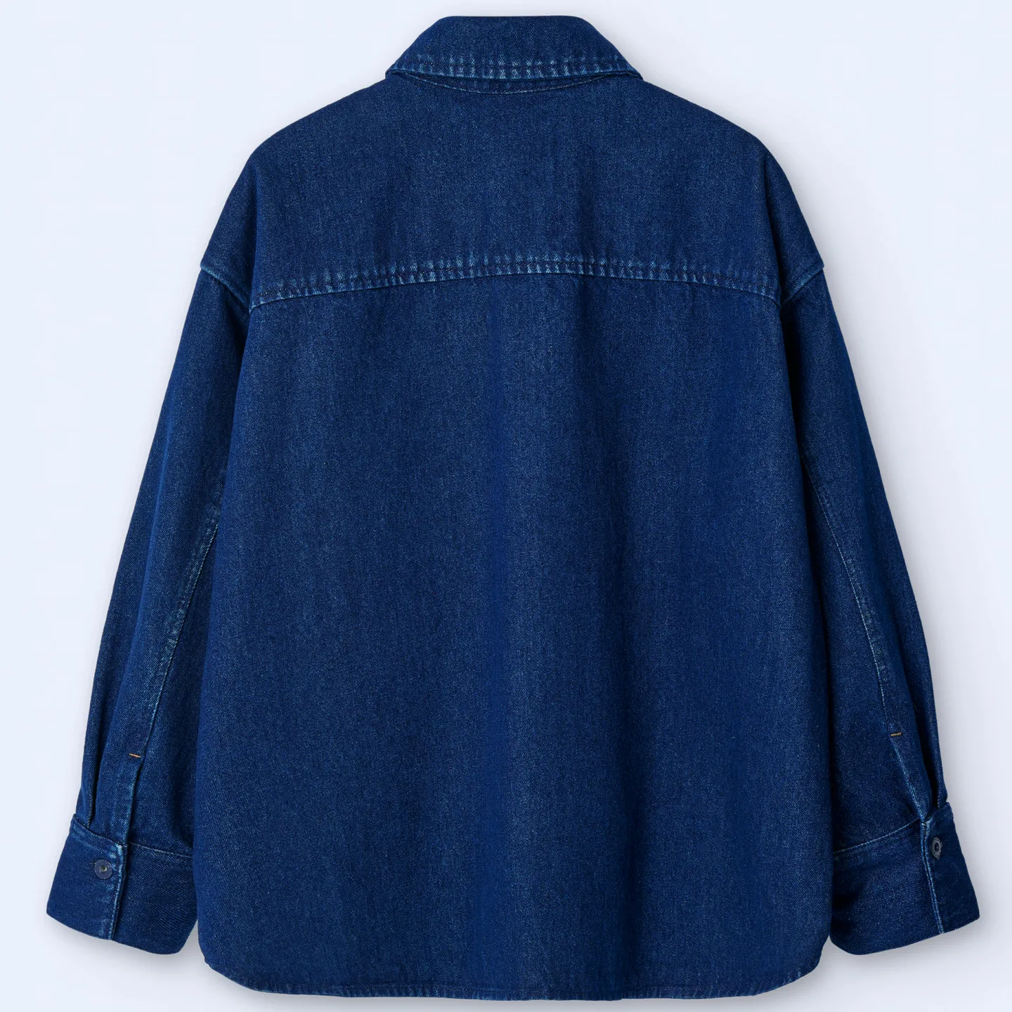Sobrecamisa Oversize Em Ganga De Algodao. Gola De Lapela. Fecho De Botoes. Bolso Interior Com Costuras Exteriores. Escapulario. Aberto Nos Lados. Costas Assimetricas.