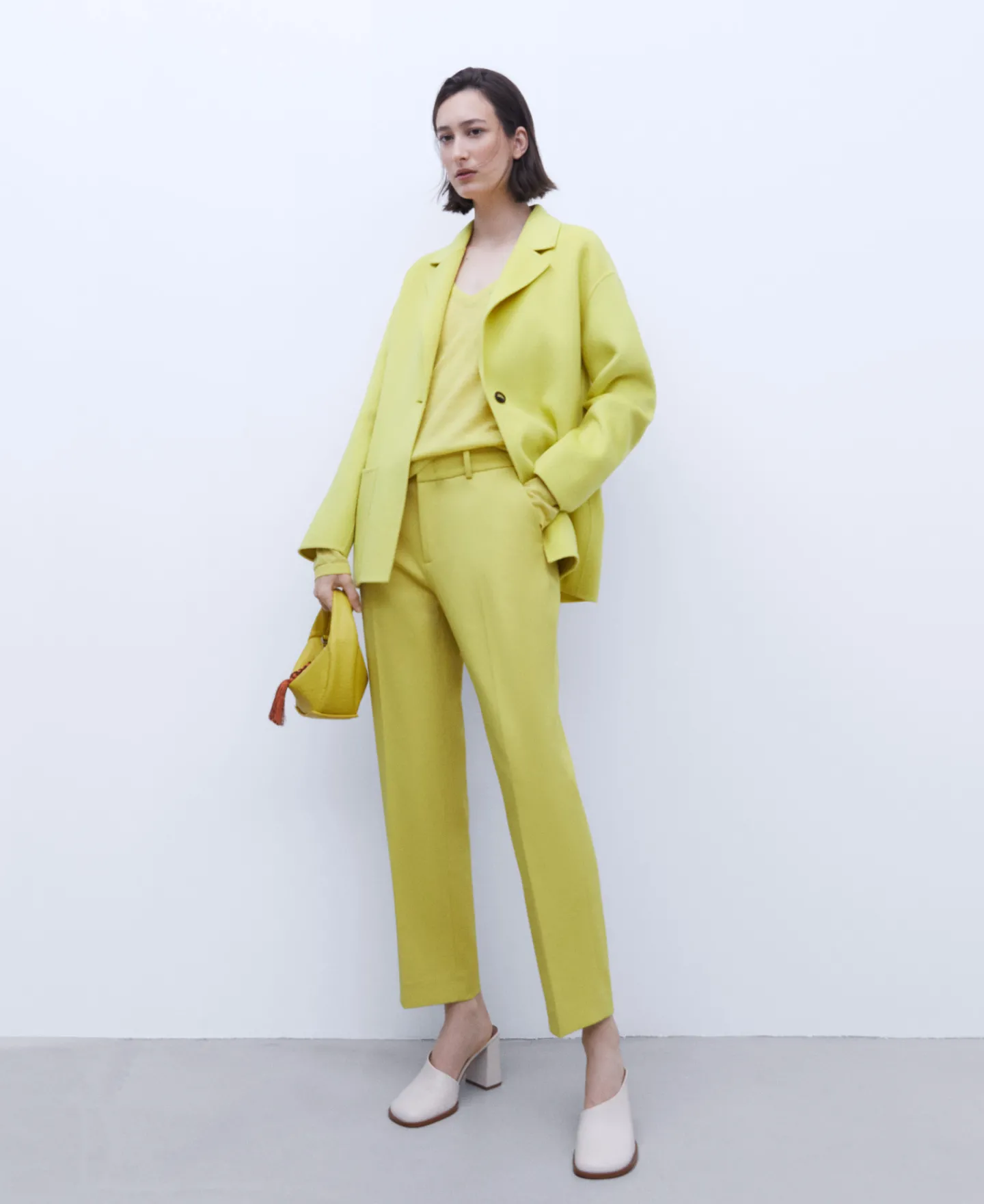 Calças Com Corte Reto. Presilhas. Fecho De Colchete E Fecho De Correr. Bolso Lateral. Pinca Posterior. Bolso Posterior De Alfaiataria. Pelo Tornozelo. Bainha Reta.