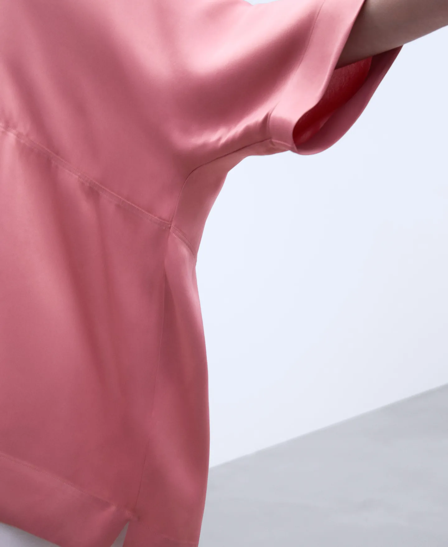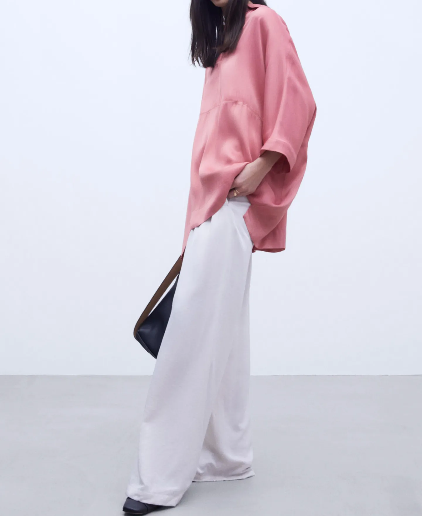 Camisa Em Viscose. Gola De Malha Com Lapela. Manga Japonesa Tres Quartos. Fluida. Aberturas Laterais.