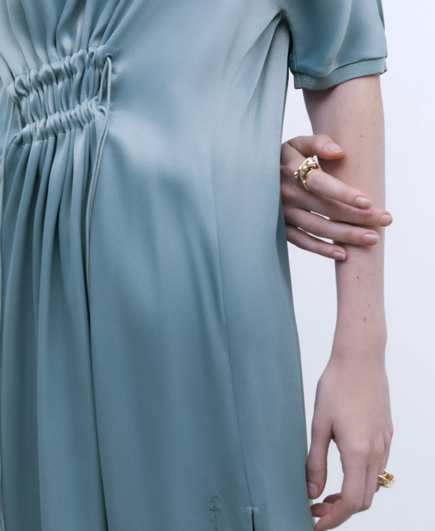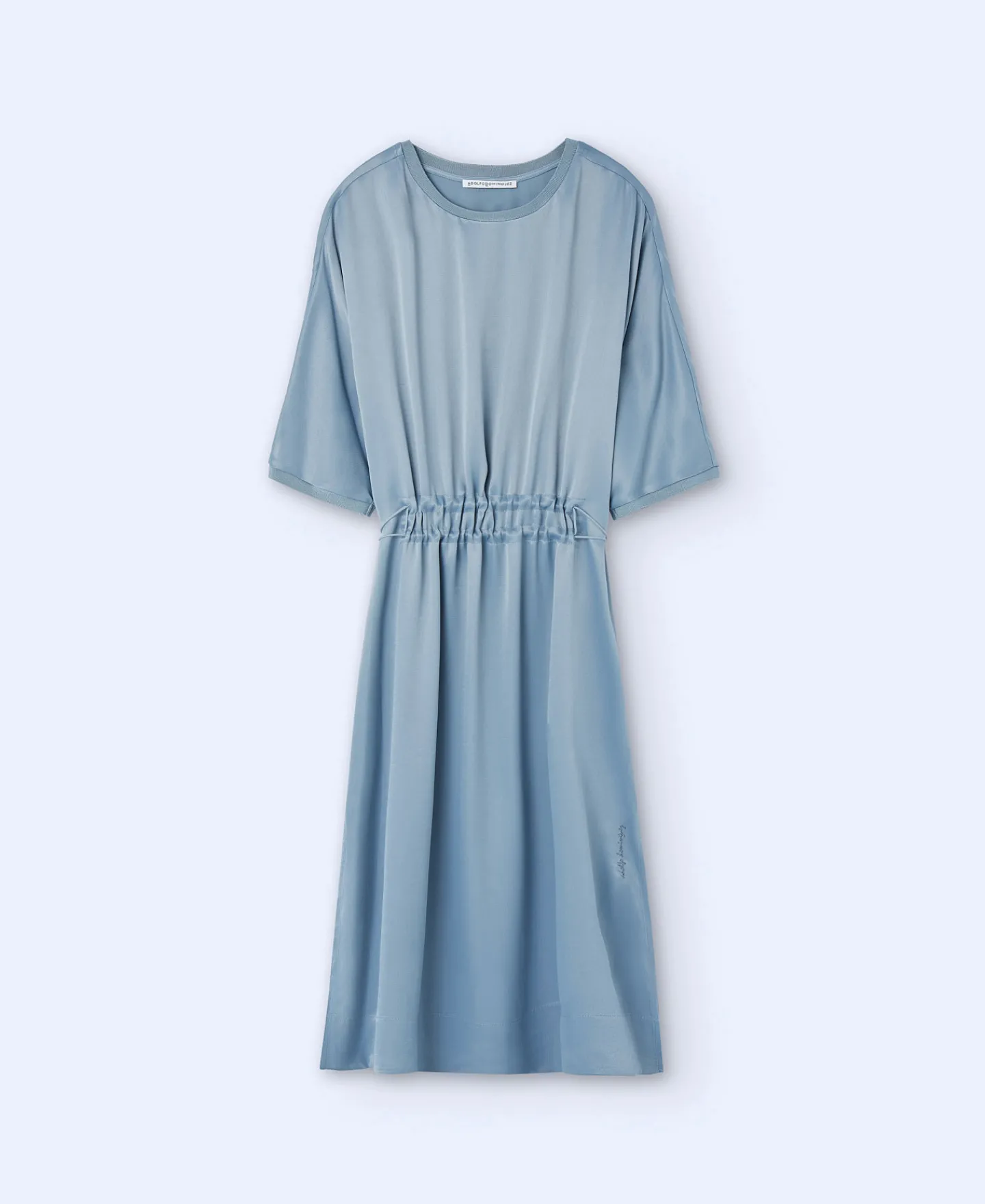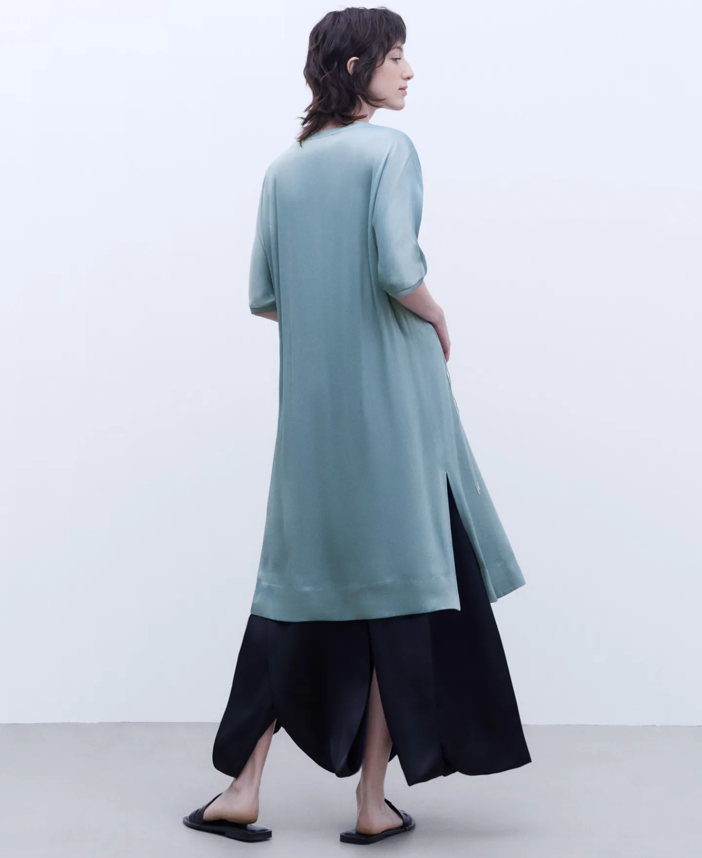 Camisa Em Viscose. Gola Caixa. Manga Japonesa Curta. Cordao De Ajuste Central. Comprida. Aberturas Laterais. Remates Canelados.