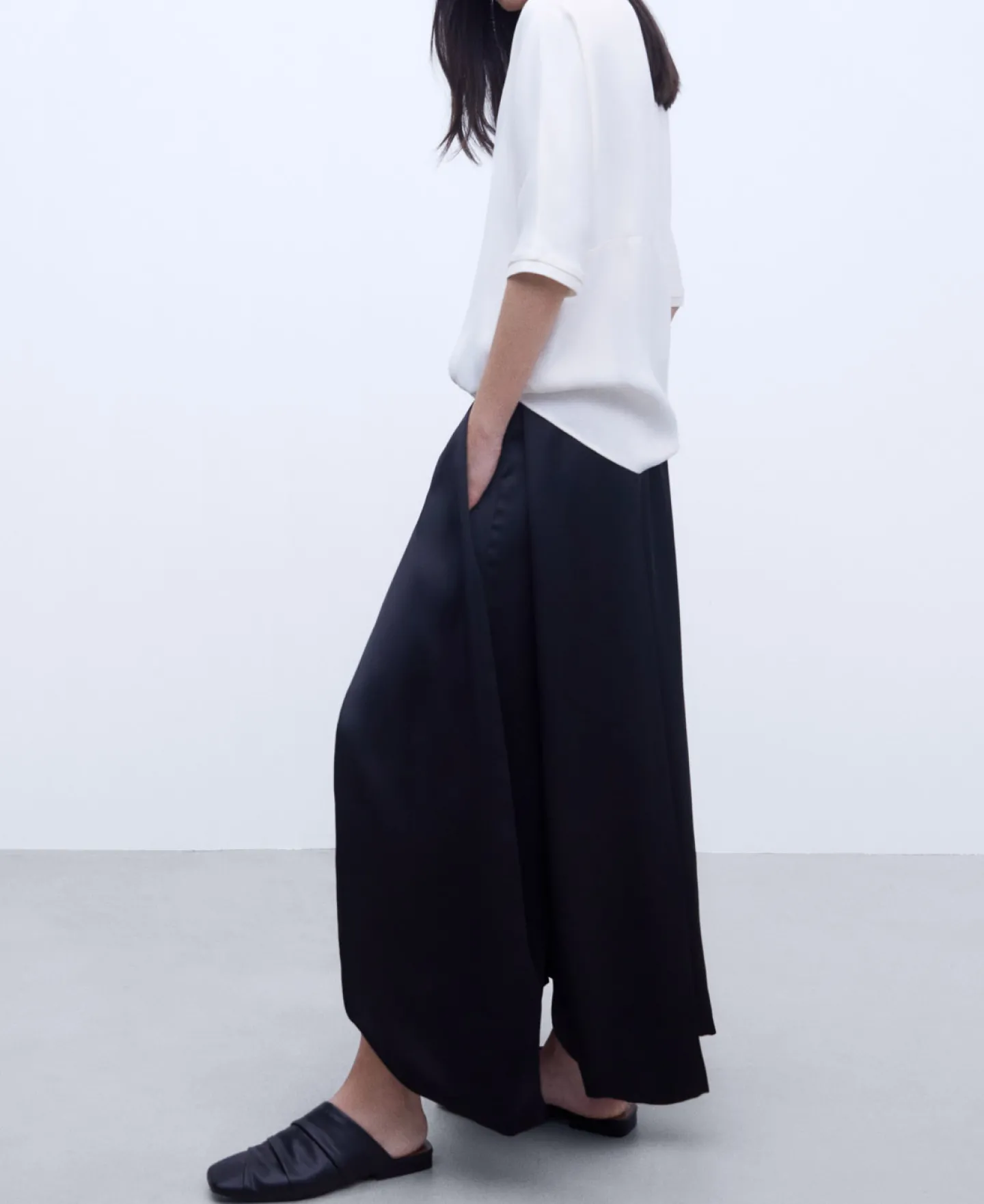 Camisa Fluida Em Viscose. Decote Em V. Manga Japonesa Curta. Remates Canelados. Bainha Reta.