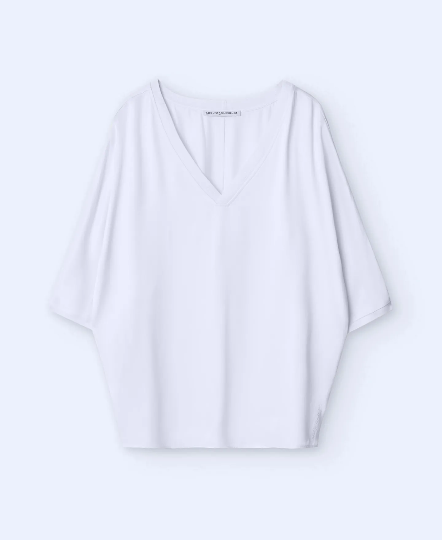 Camisa Fluida Em Viscose. Decote Em V. Manga Japonesa Curta. Remates Canelados. Bainha Reta.ViscoseFluidaDecote Em VMang…