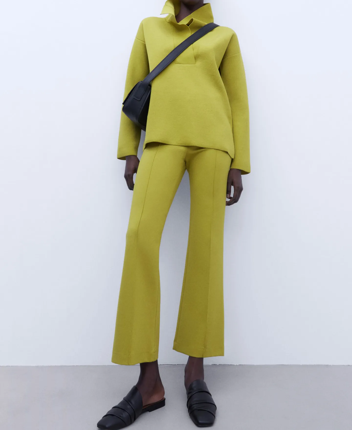 Camisola De Malha Em Dupla Frontura. Gola Fita. Manga Comprida E Caida. Abertura Lateral. Bainha Reta.