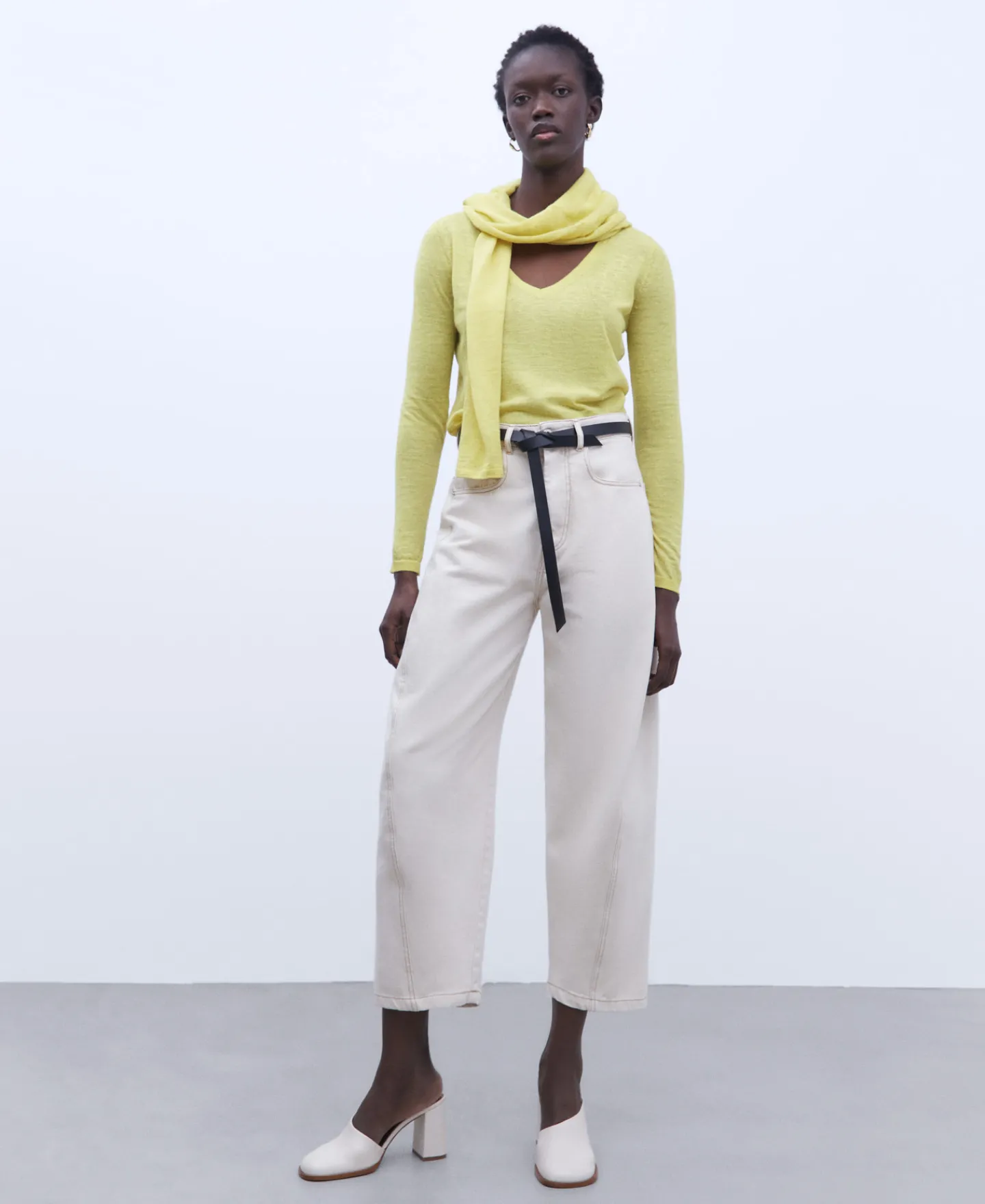 Camisola Em Tecido De Linho E Alpaca. Decote Em V. Manga Comprida. Acabamentos Canelados.LinhoAlpacaDecote Em VManga Com…