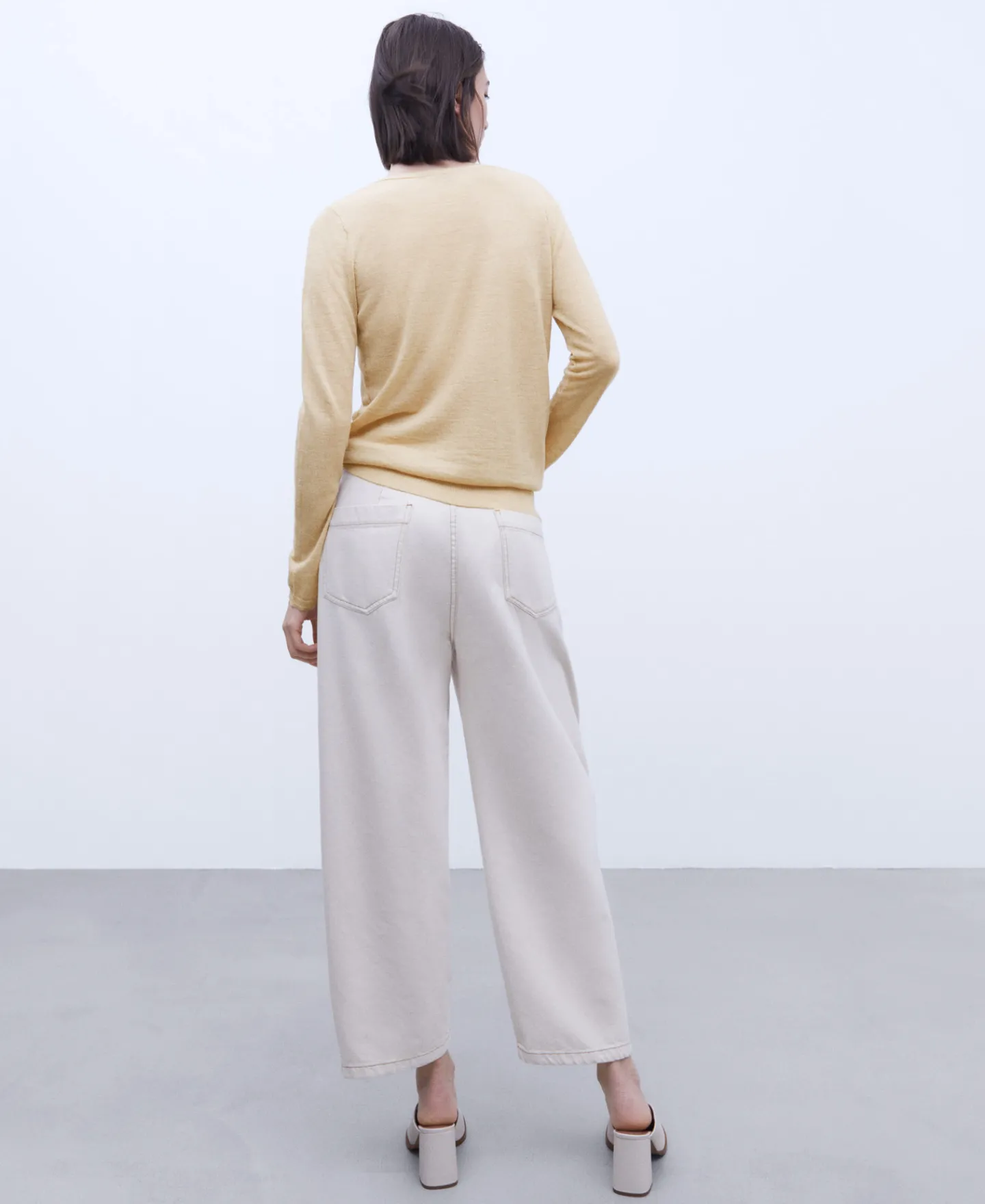 Camisola Em Tecido De Linho E Alpaca. Decote Em V. Manga Comprida. Acabamentos Canelados.LinhoAlpacaDecote Em VManga Com…