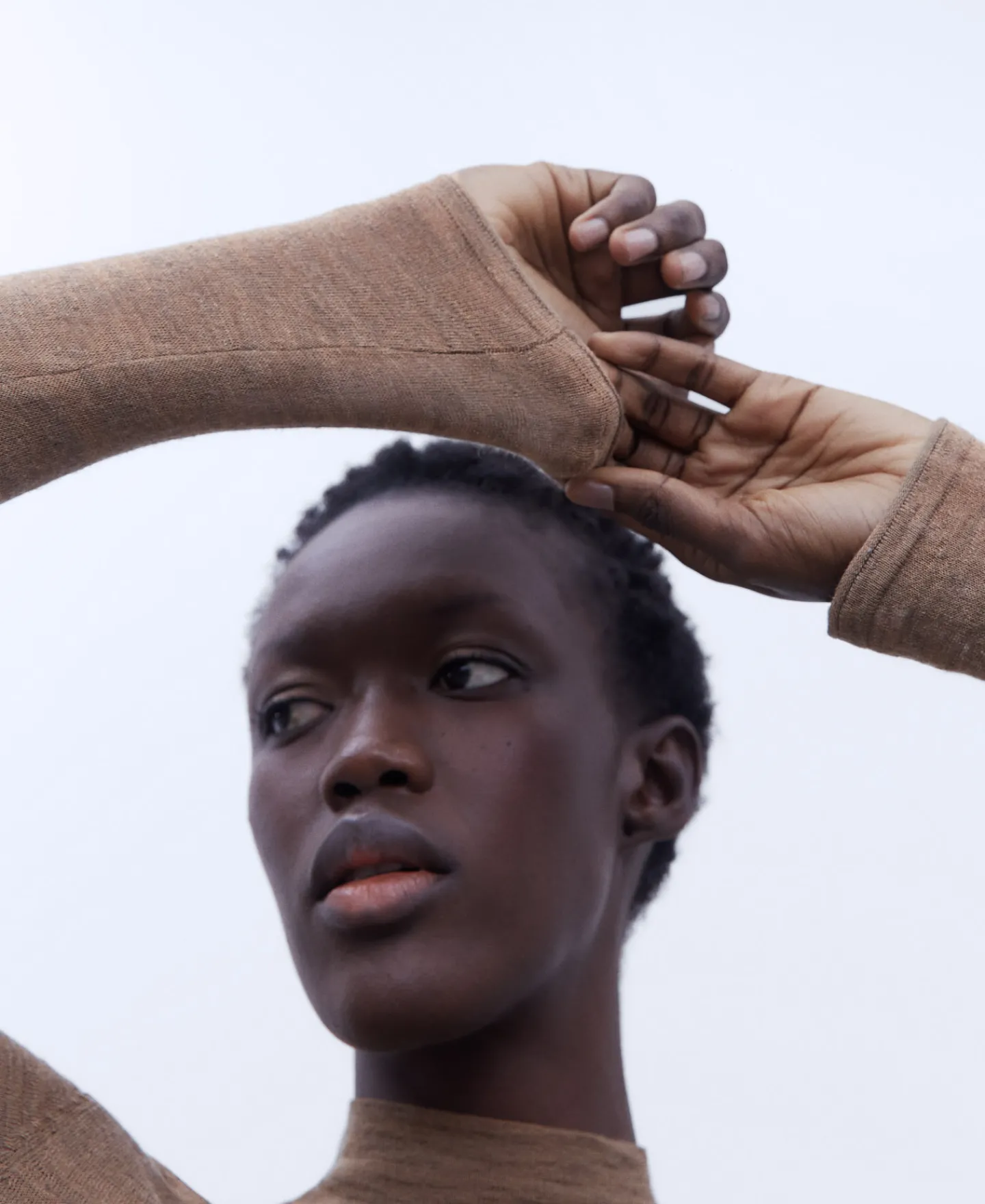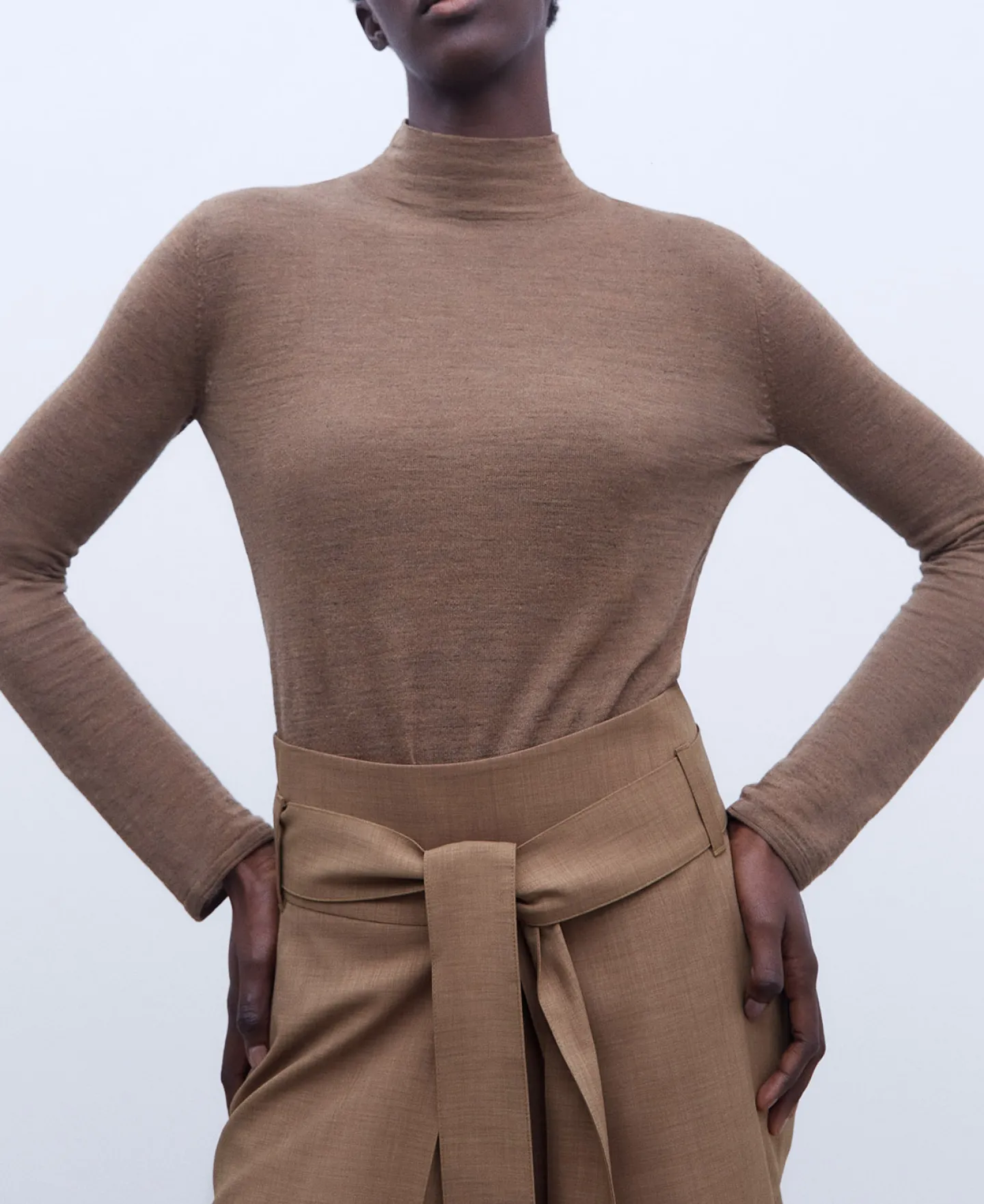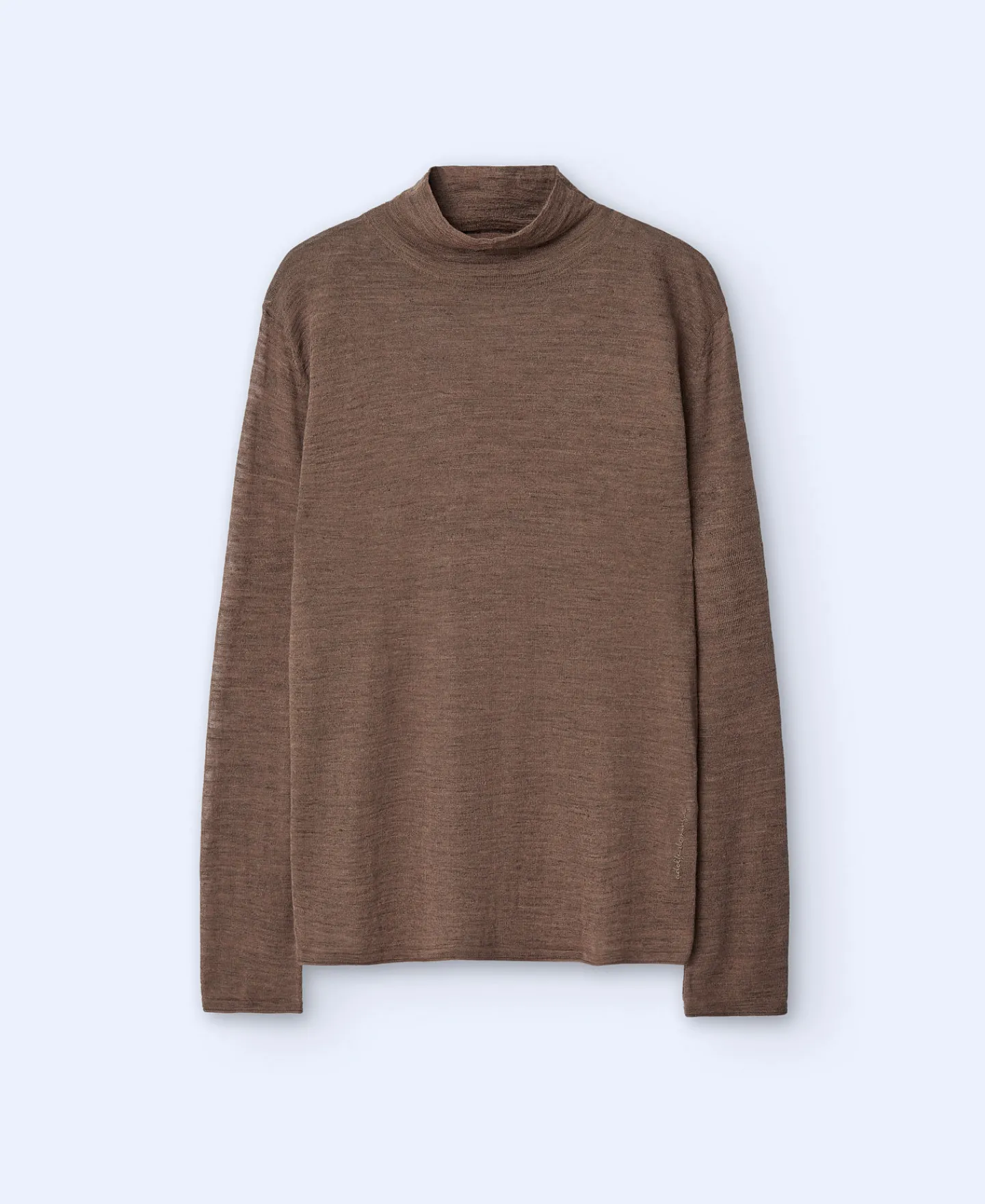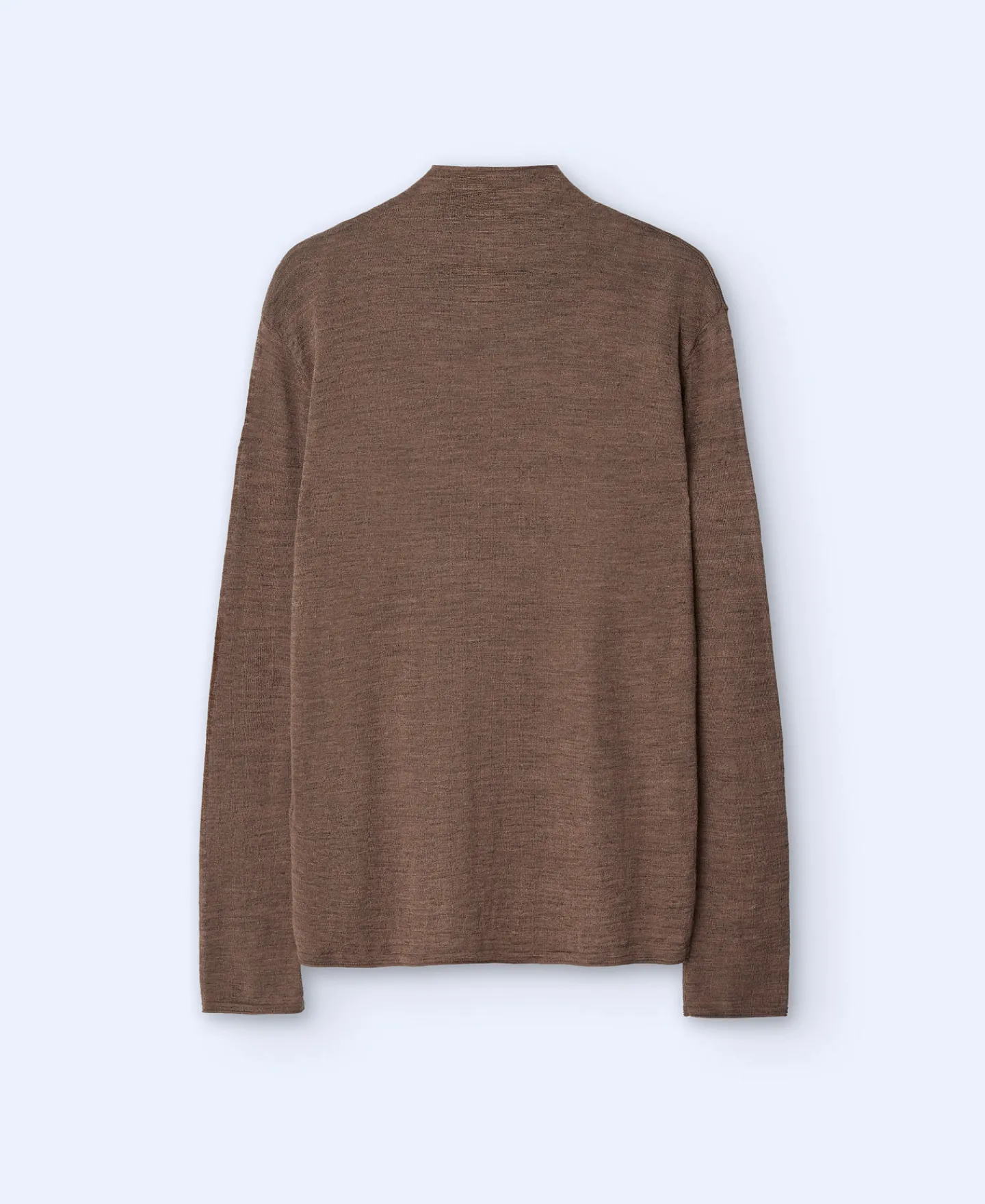 Camisola Em Tecido De Linho E Alpaca. Gola Chamine. Manga Comprida. Acabamentos Canelados.
