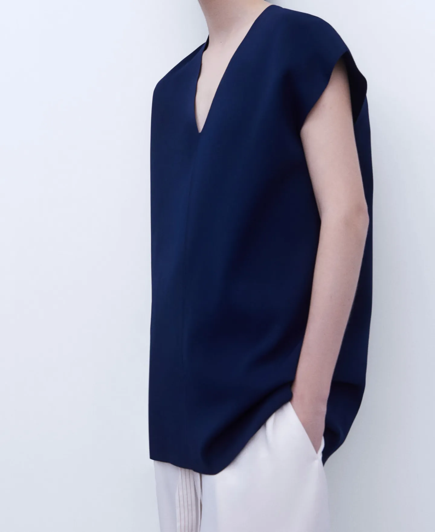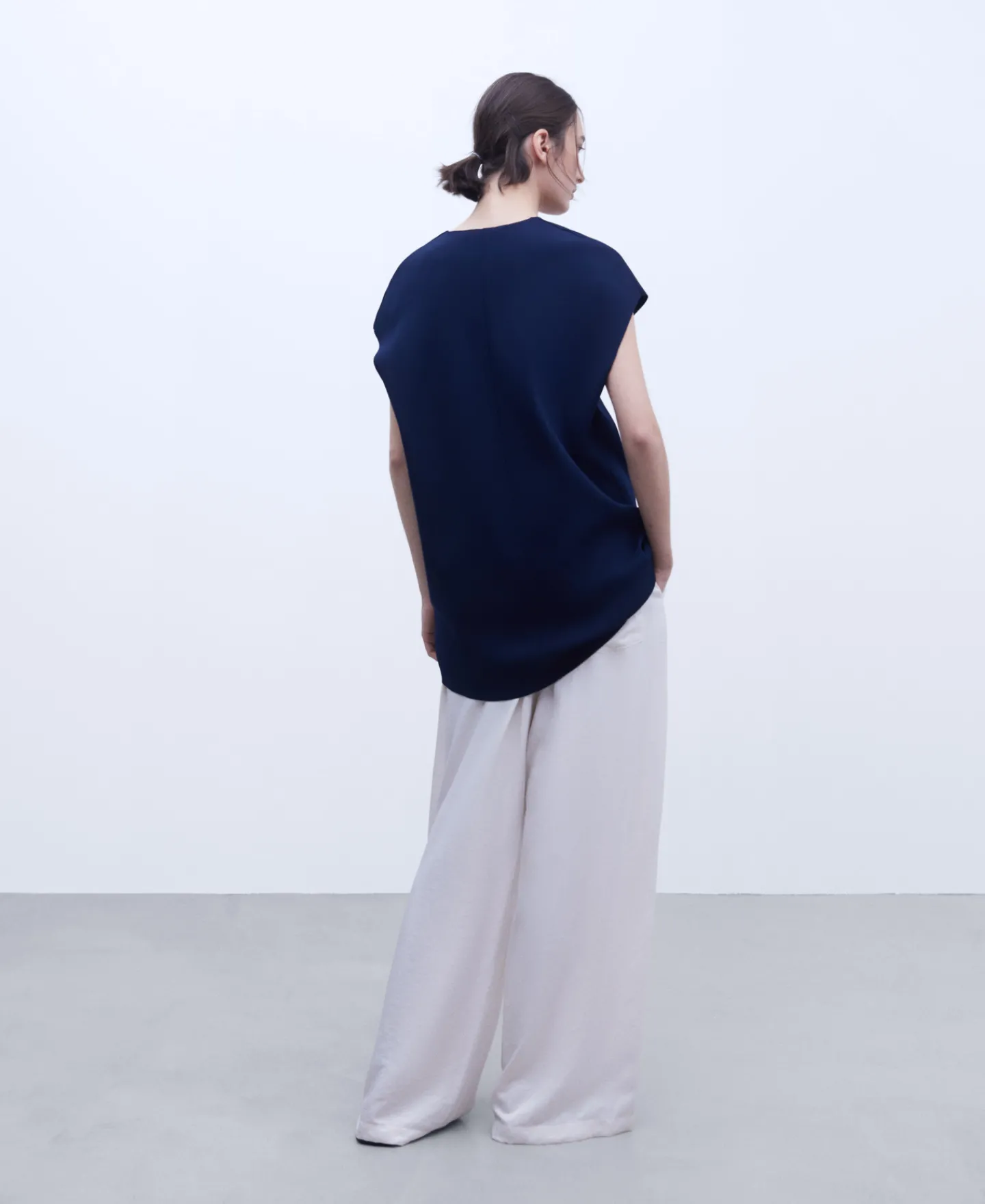Colete De Malha. Gola Em V. Corte Reto. Bainha Reta.49% Nylon RecicladoMalhaGola Em VCorte Reto