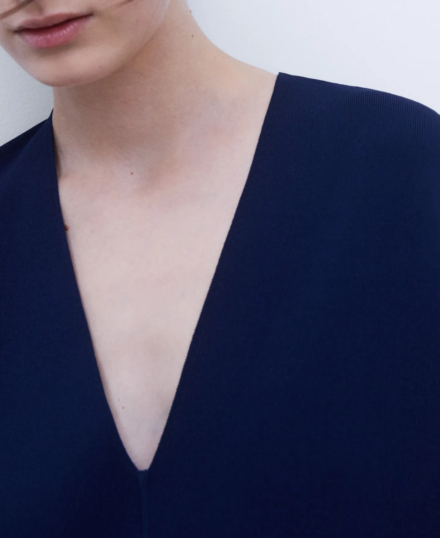 Colete De Malha. Gola Em V. Corte Reto. Bainha Reta.