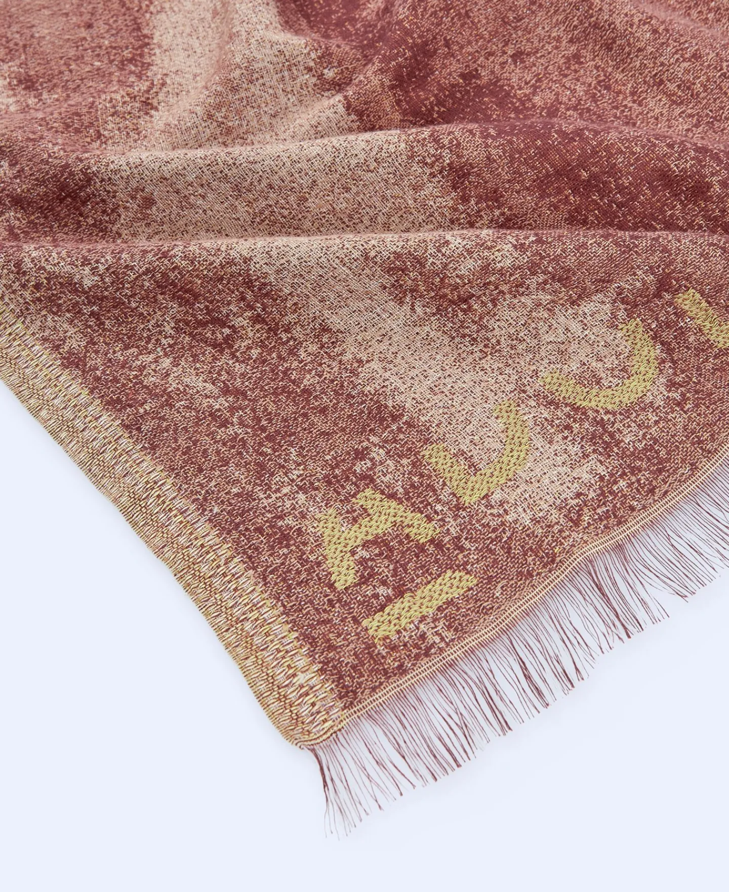 Xaile Estampado Em Algodao E Modal. Jacquard. Logotipo Com Tecnica Cutwork. Franja Curta.