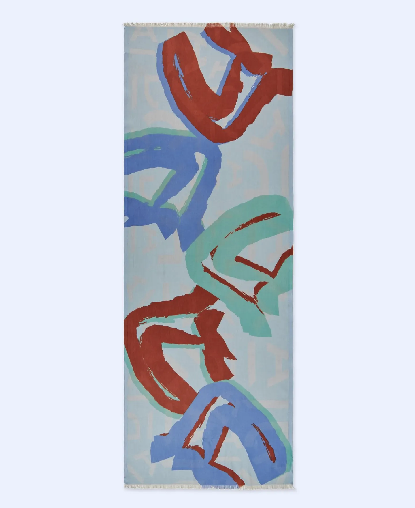 Xaile Estampado Em 100% Algodao. Motivo Vibrar. Franja Curta. Logotipo Em Jacquard.