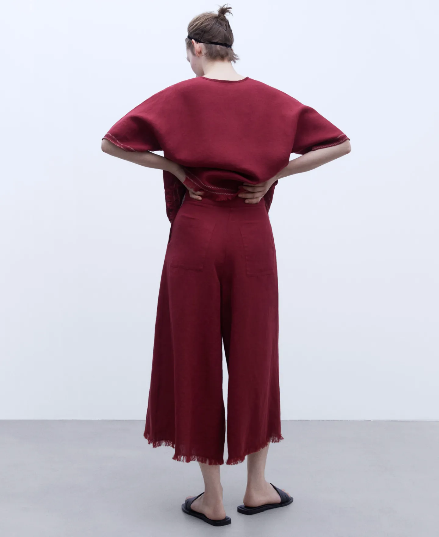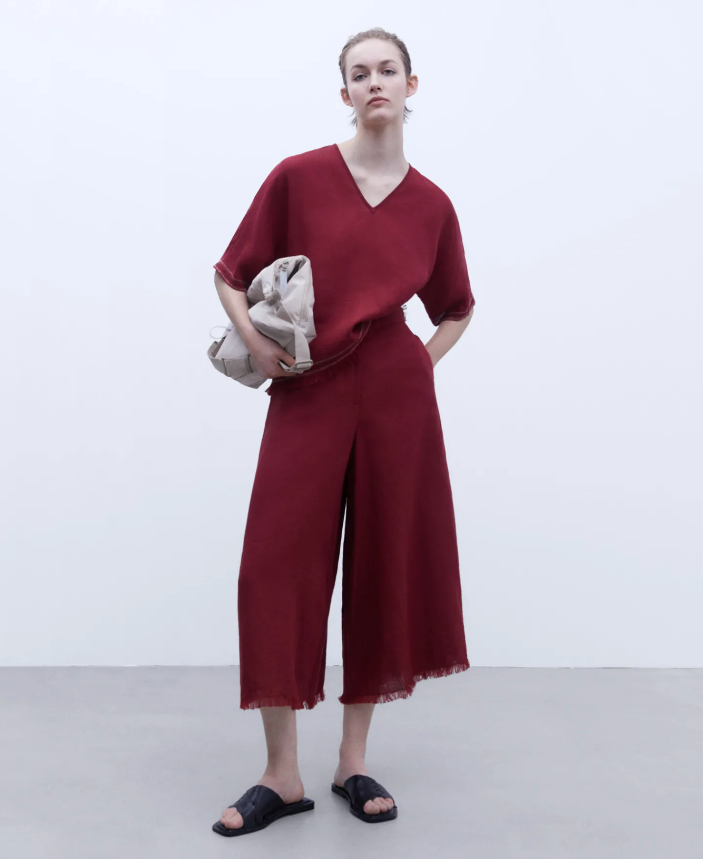 Cintura Alta E Perna Ampla. Ilhos Em Contraste. Logotipo Bordado No Bolso Traseiro Direito.100% Linho EuropeuCintura Alt…