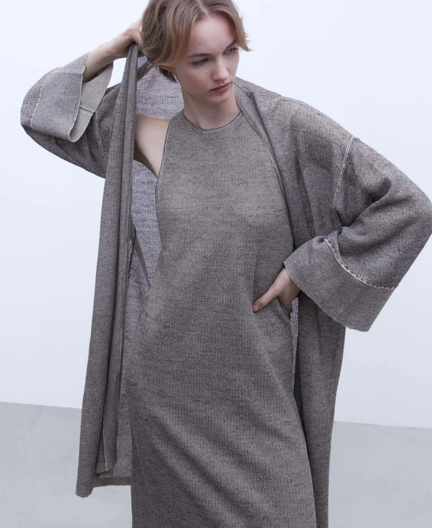 Linho E Nylon. Manga Ampla. Sem Botoes.Linho E NylonManga AmplaSem Botoes