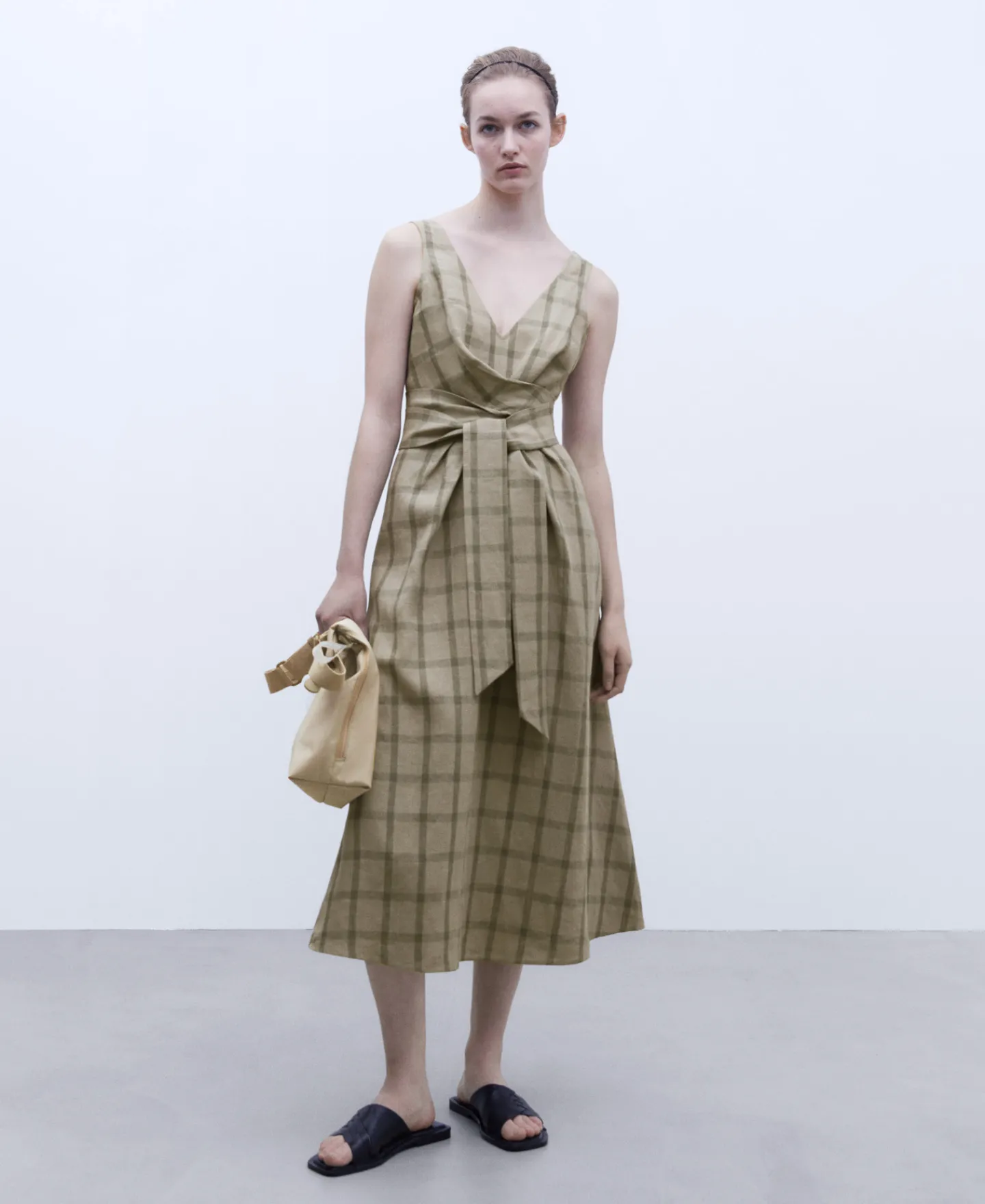 Midi. Cintado Na Cintura. Saia Capa.100% LinhoComprimento MidiAlcas
