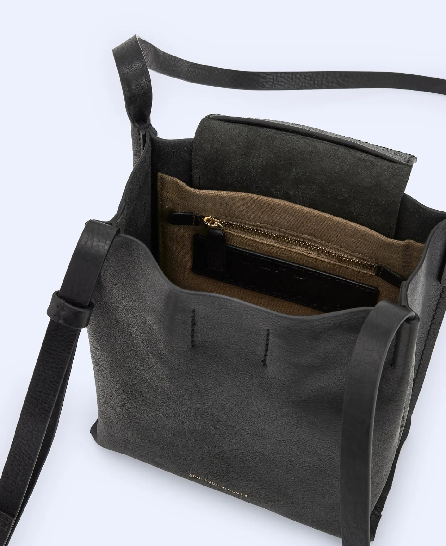 Mala A Tiracolo Cubo Em Pele Curtida. Pele De Vaca. Forro Em 100% Algodao Organico. Dois Compartimentos. Bolso Interior Com Fecho De Correr. Alca Comprida Ajustavel. Logotipo.