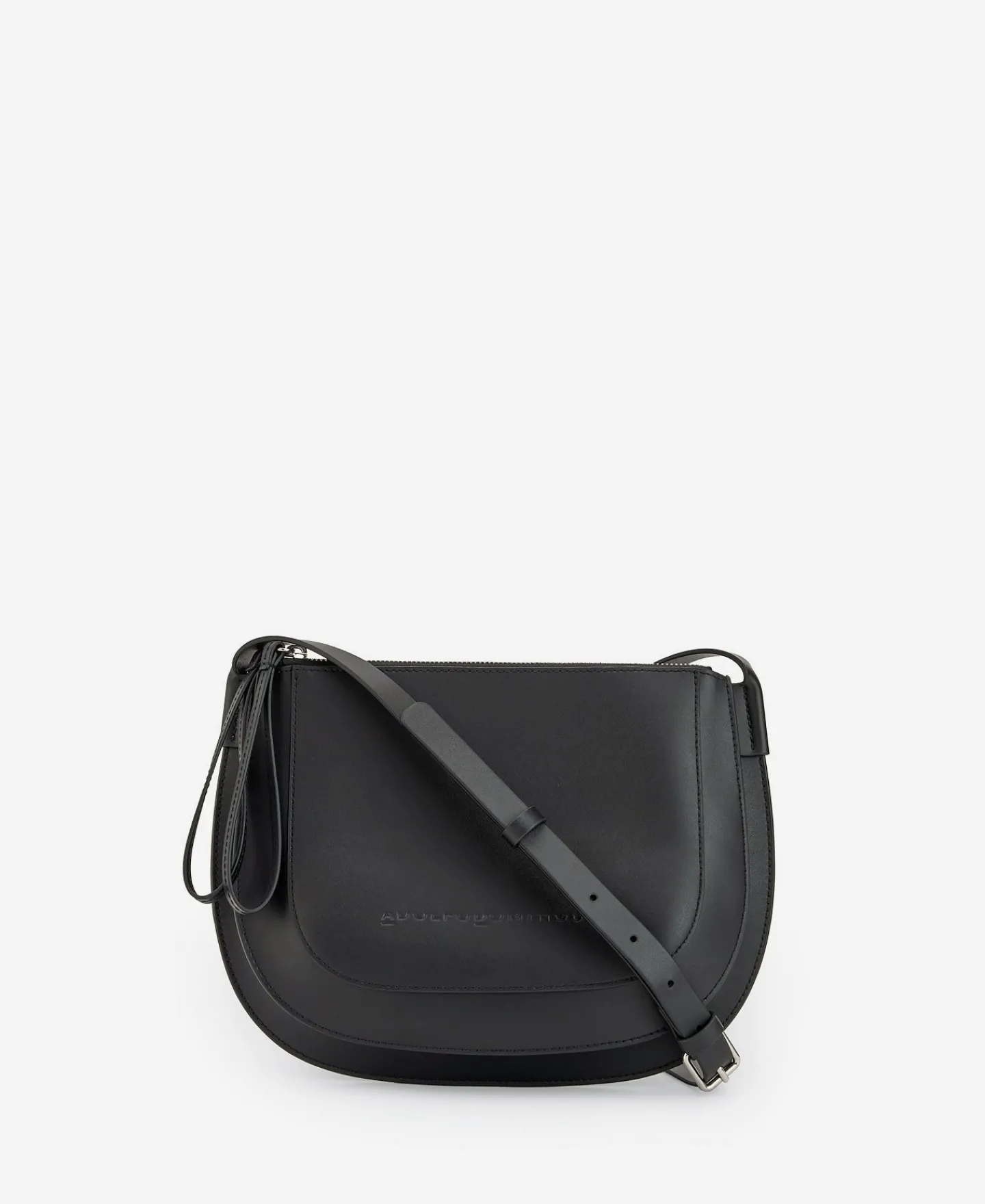 Pele De Vaca. Dois Compartimentos. Fecho De Correr. Alca Comprida Ajustavel. Fivela. Textura Lisa. Logotipo.