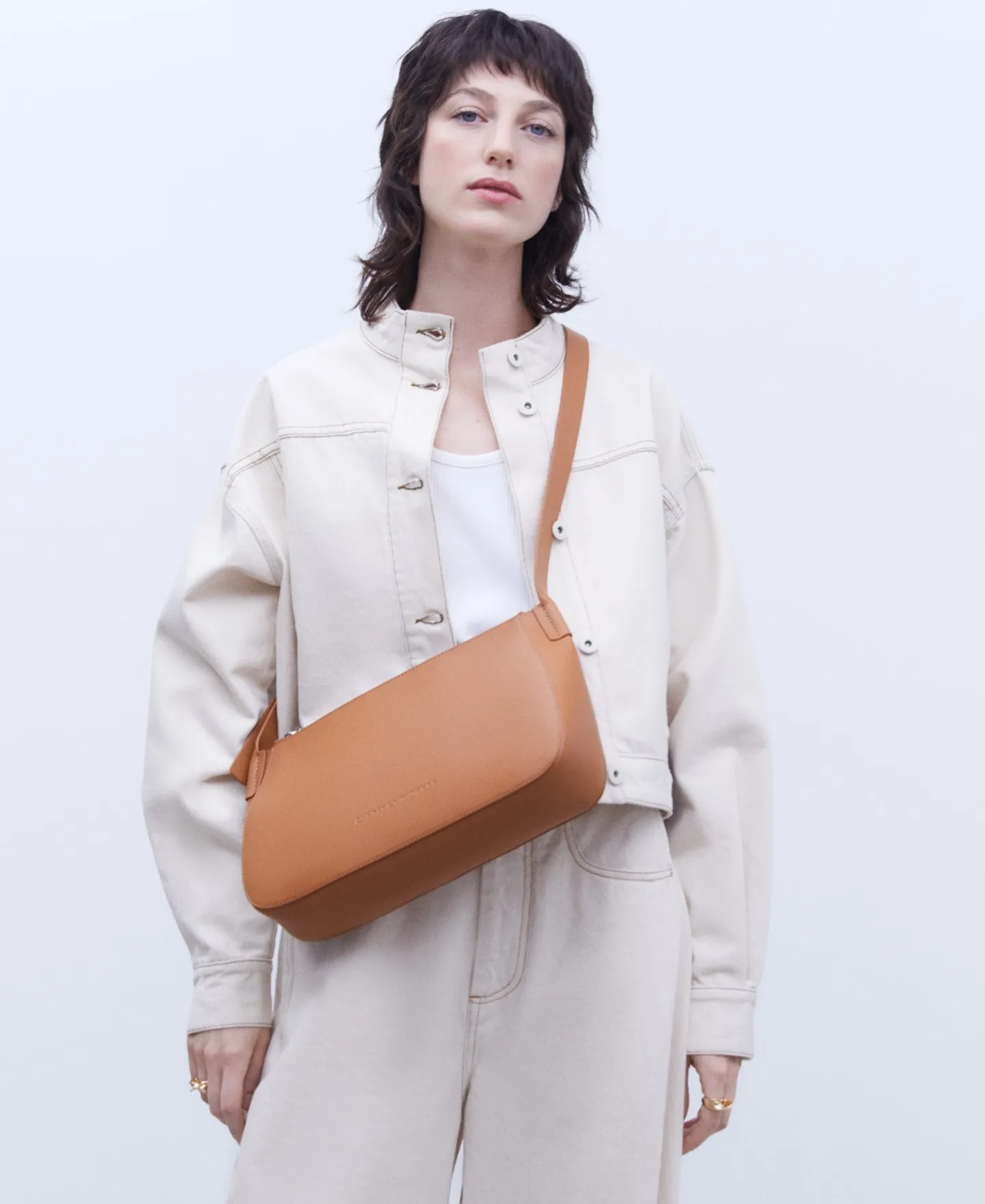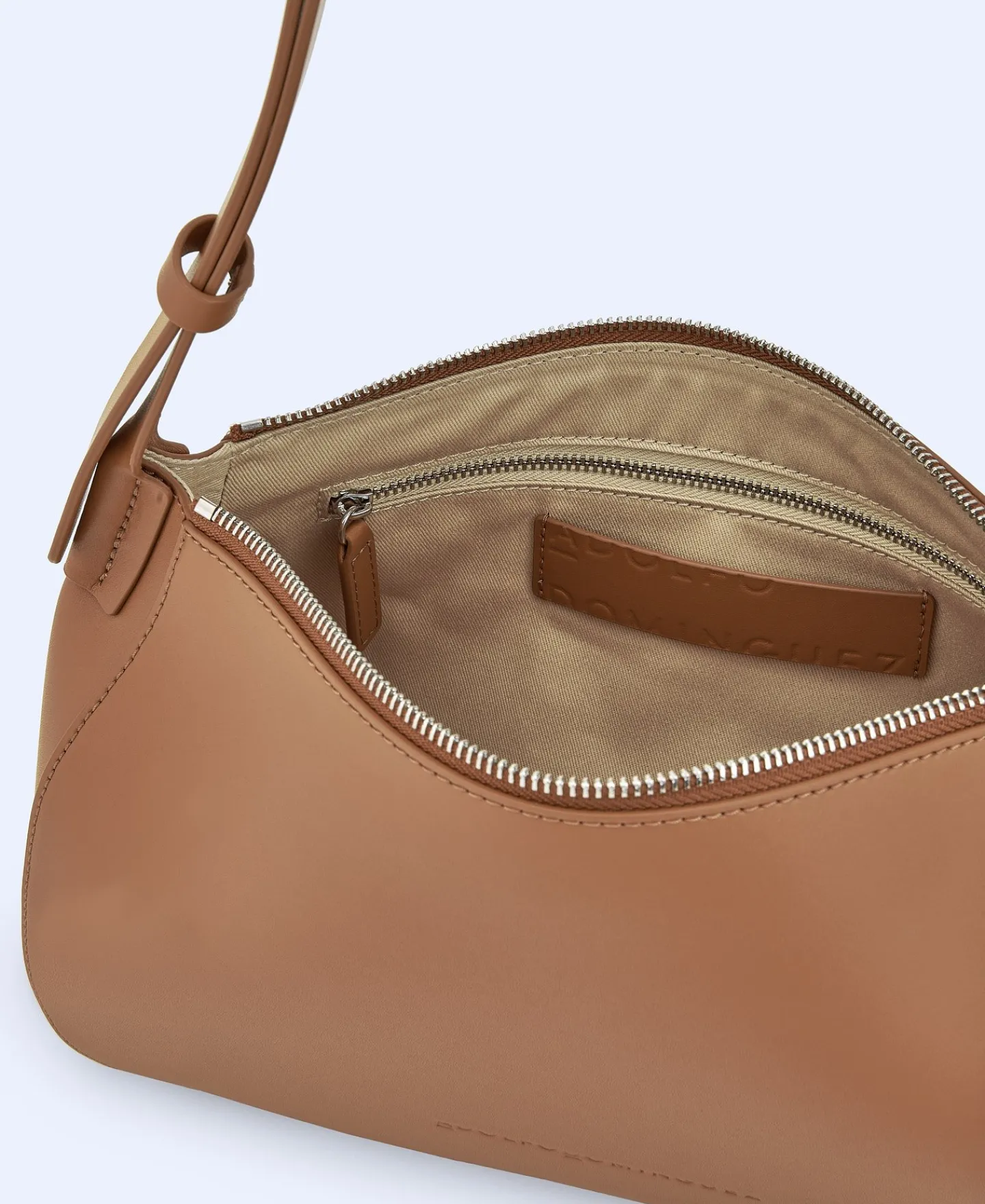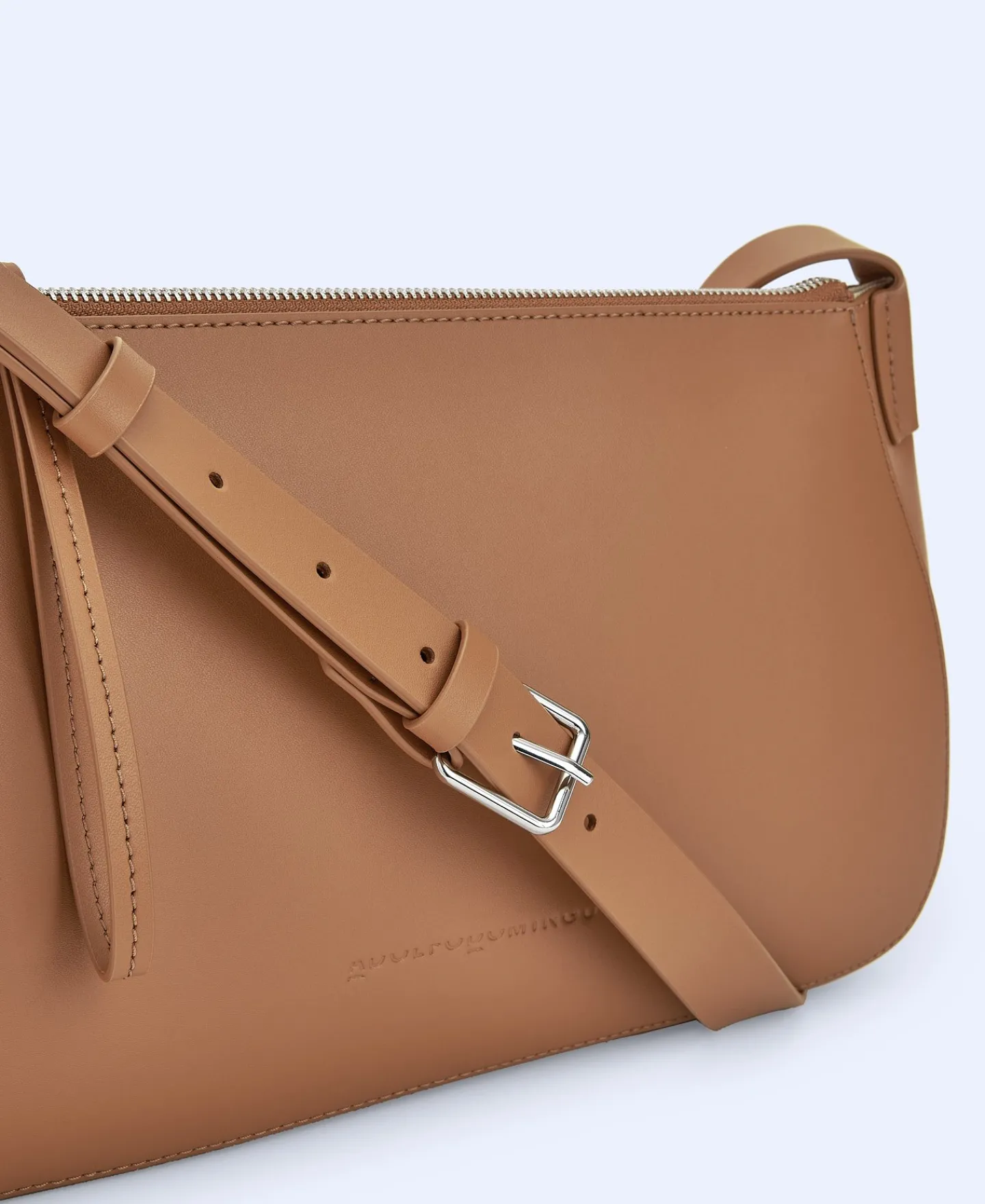 Mala A Tiracolo Em Pele De Vaca. Um Compartimento. Alca Comprida Ajustavel. Fivela. Fecho De Correr. Bolso Interior. Textura Lisa. Logotipo.