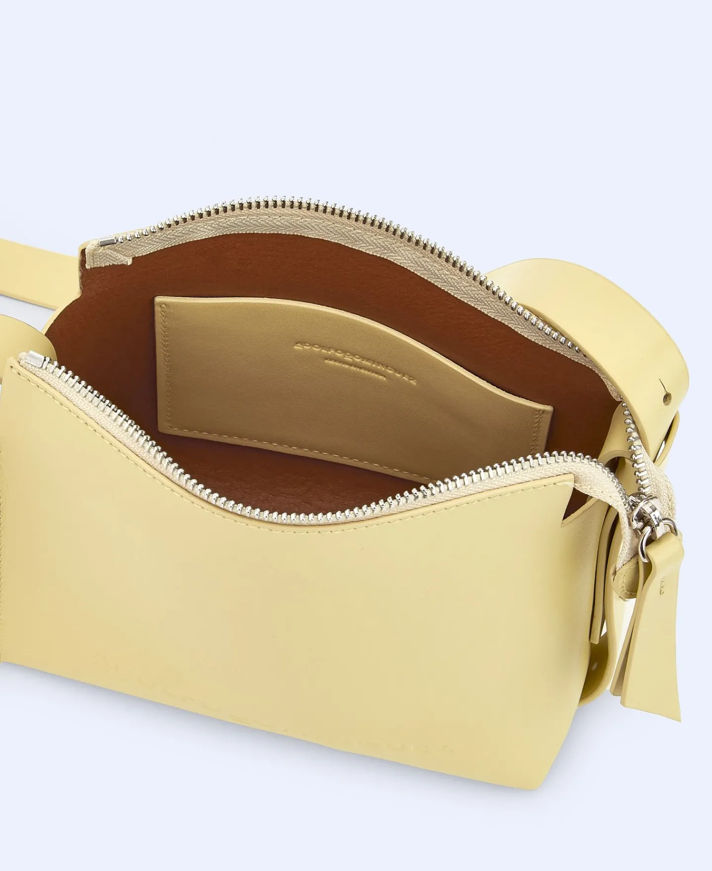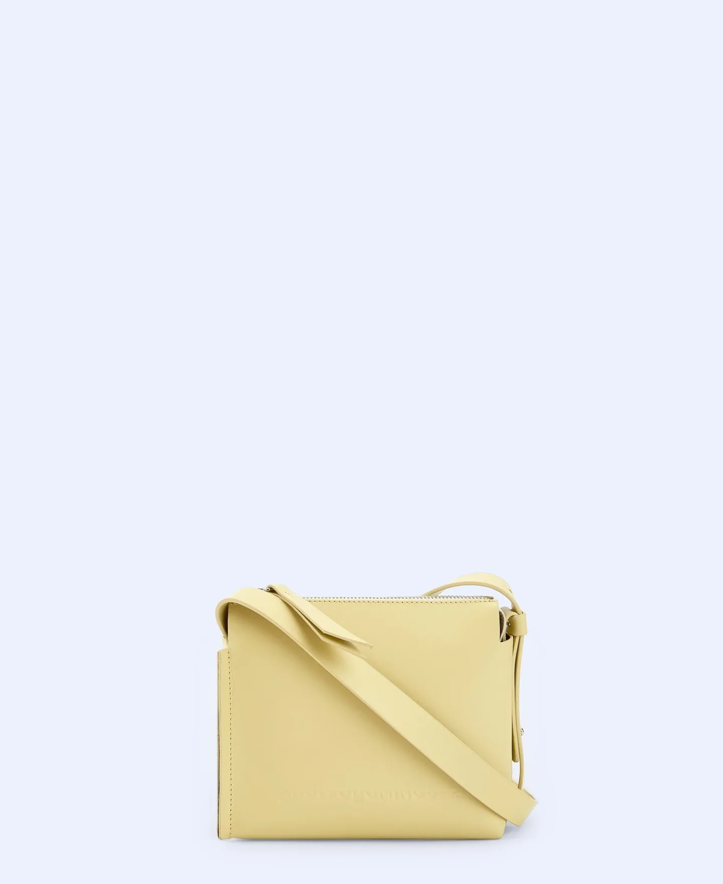 Mala A Tiracolo Mini Assimetrica Em Pele De Vaca. Um Compartimento. Fecho De Correr. Um Bolso. Alca Comprida Ajustavel Com Botoes De Punho. Fabricada Em Espanha Logotipo.