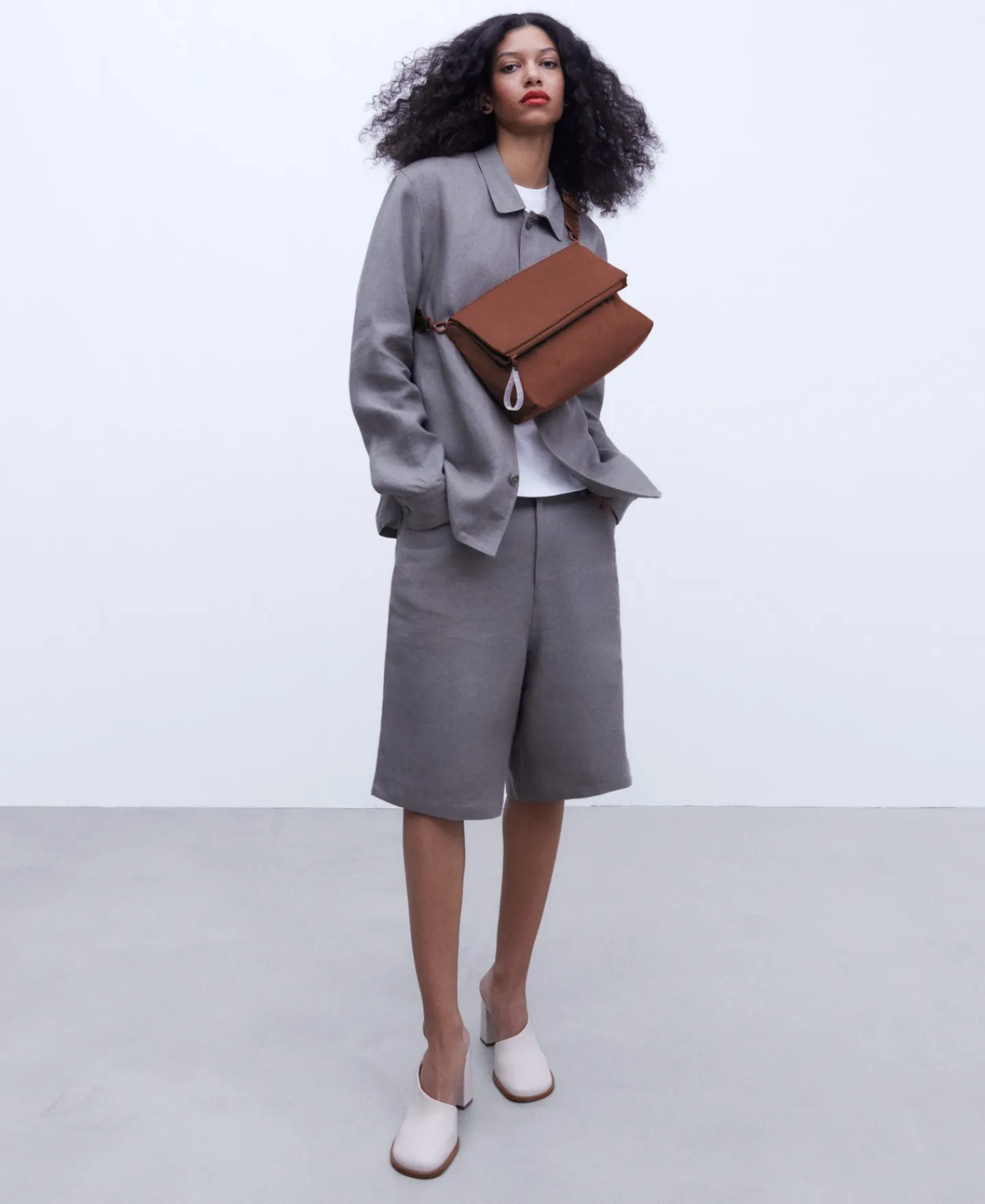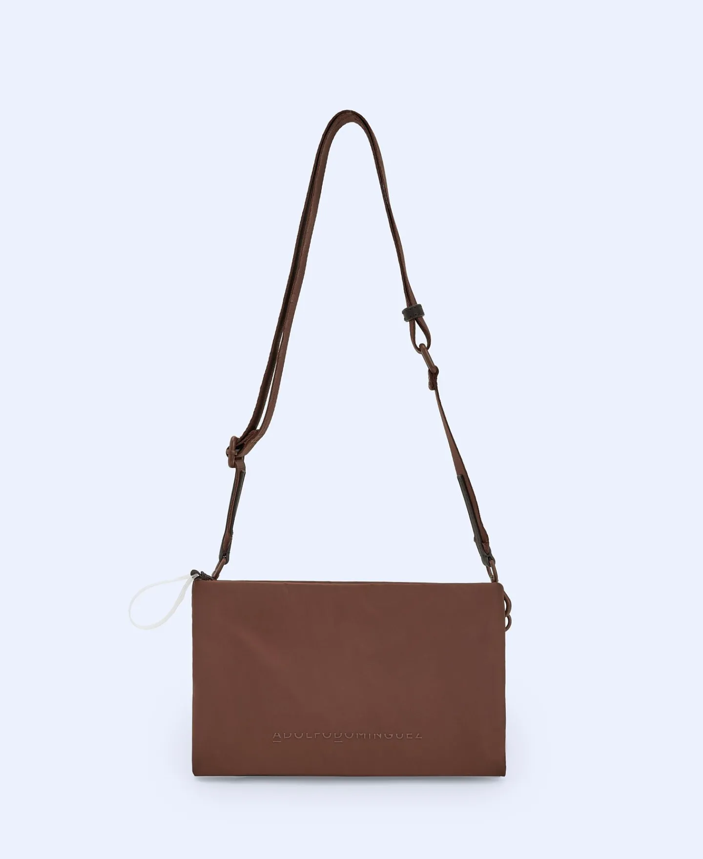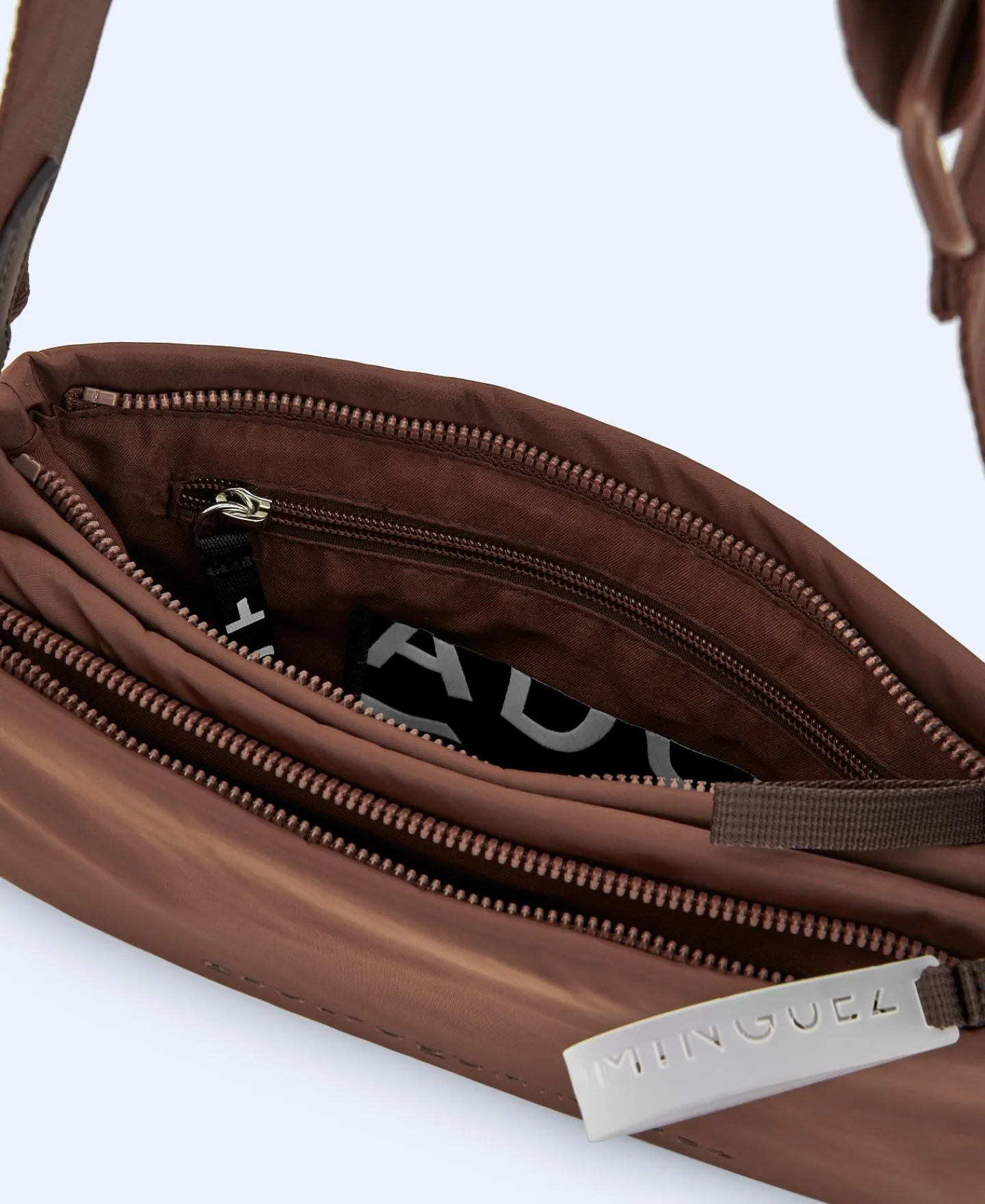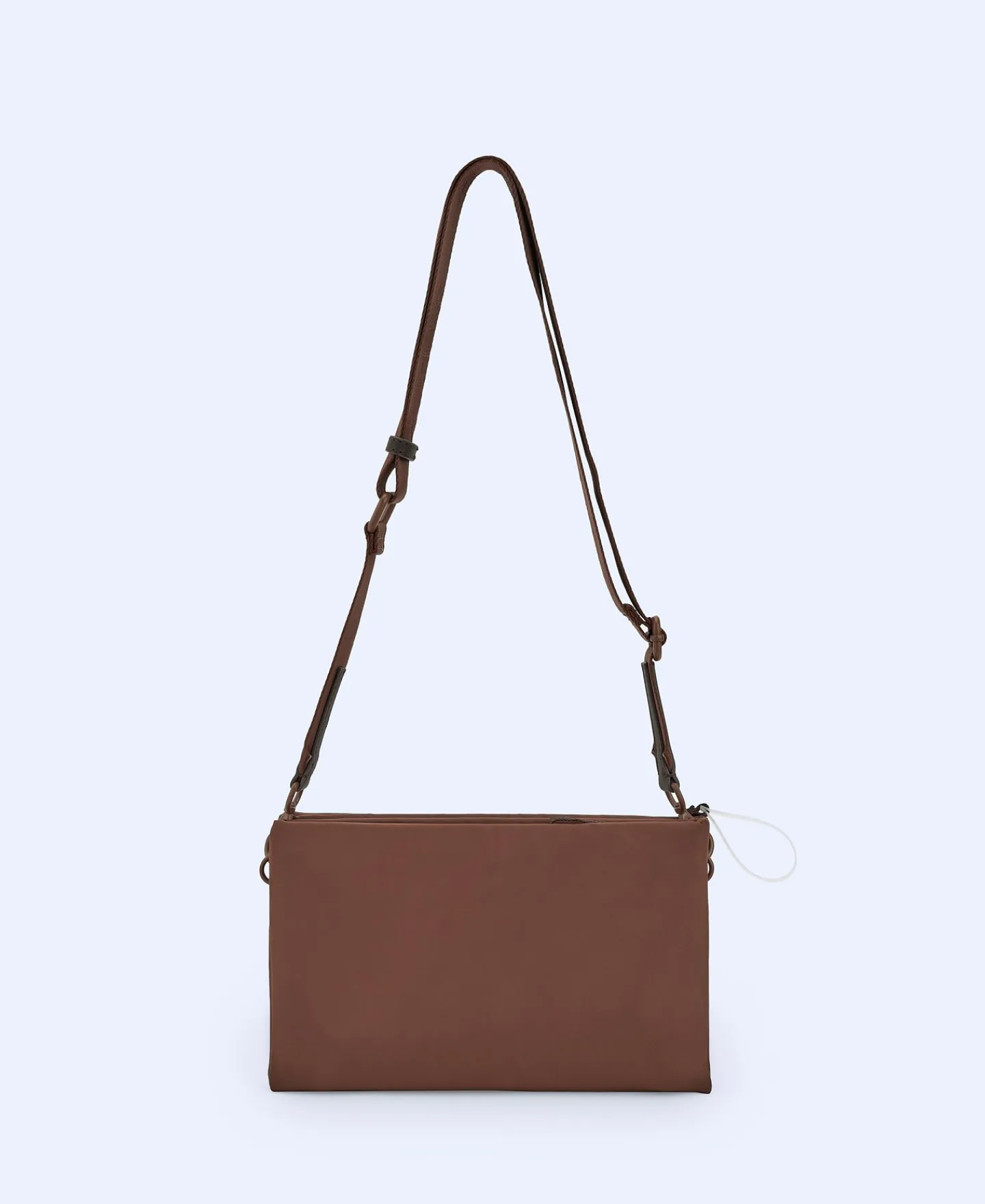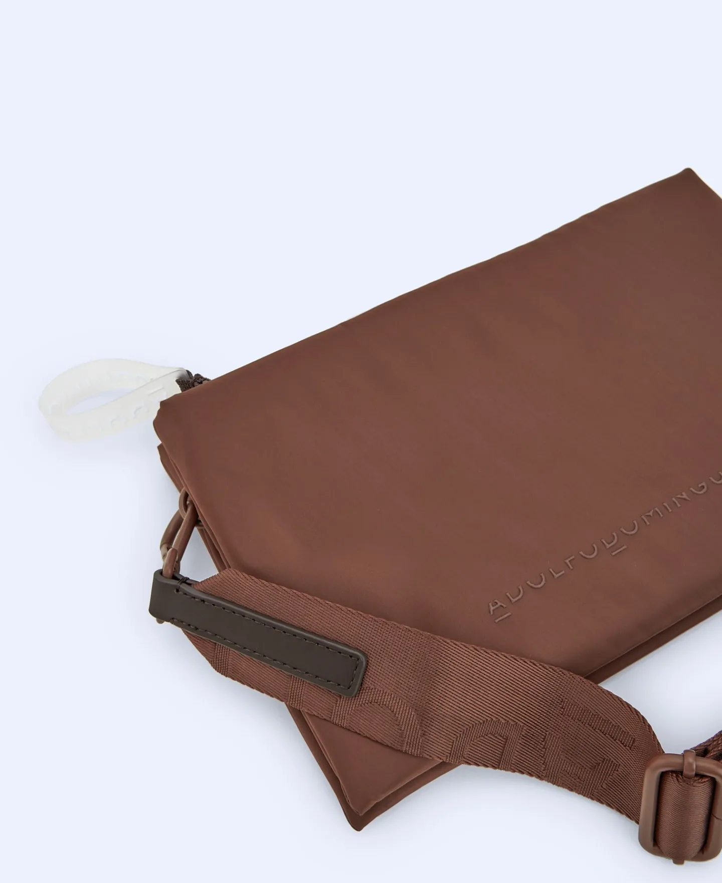 Textura Lisa. Dois Compartimentos. Fecho De Correr. Alca Comprida Em Nylon Reciclado. Correia Com Logotipo.