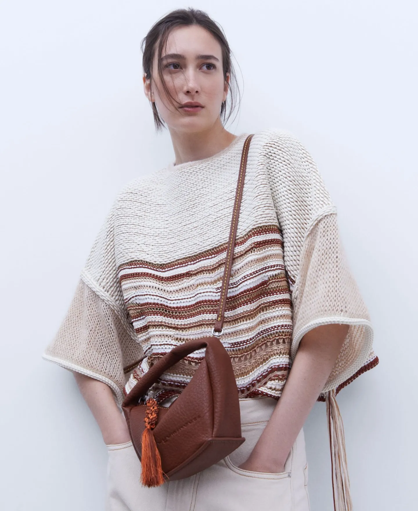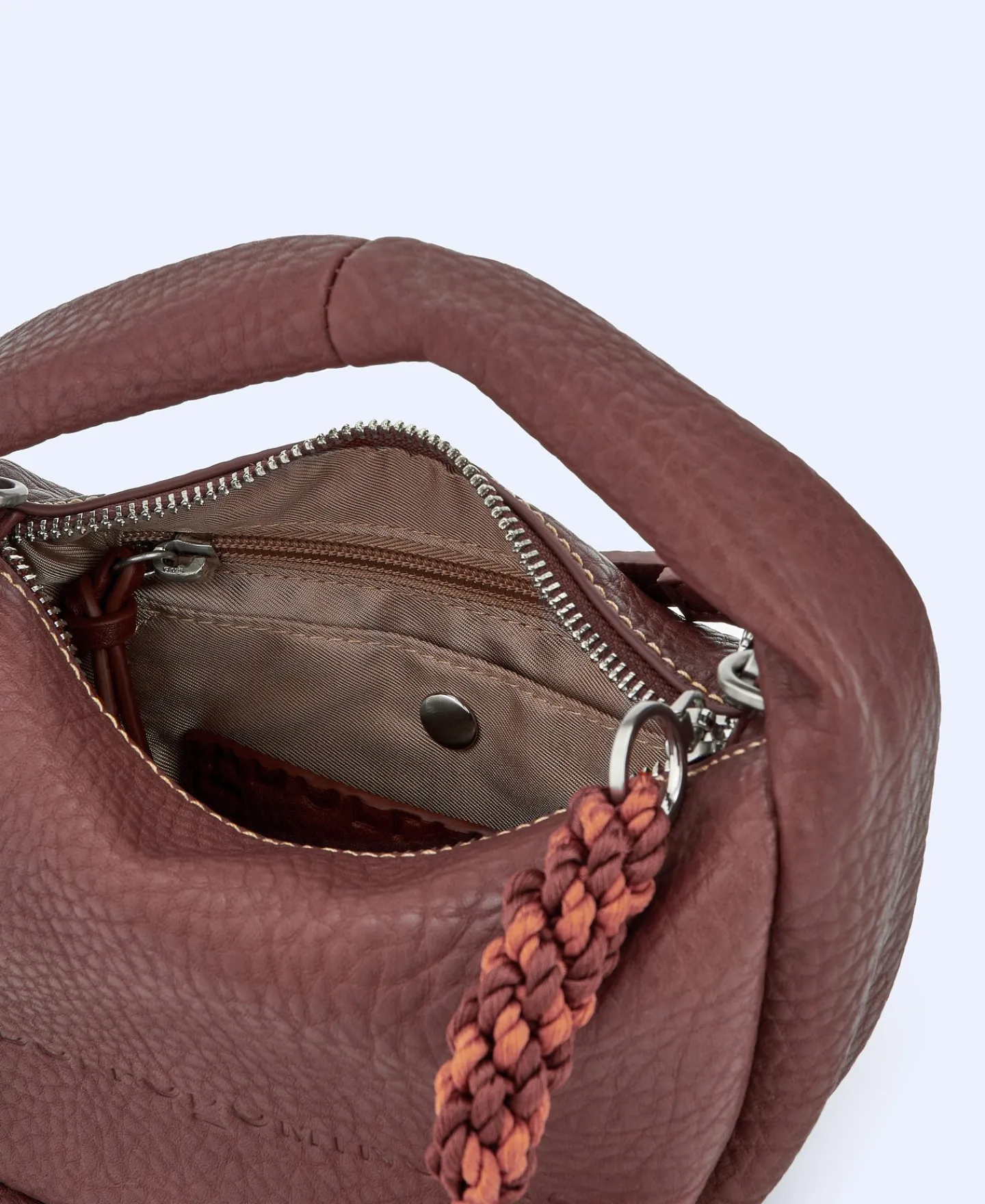 Mala A Tiracolo Pequena Com Textura Grao Em Poliester Reciclado. Alca Curta De Mao E Alca Comprida. Fecho De Correr. Puxador Decorativo.
