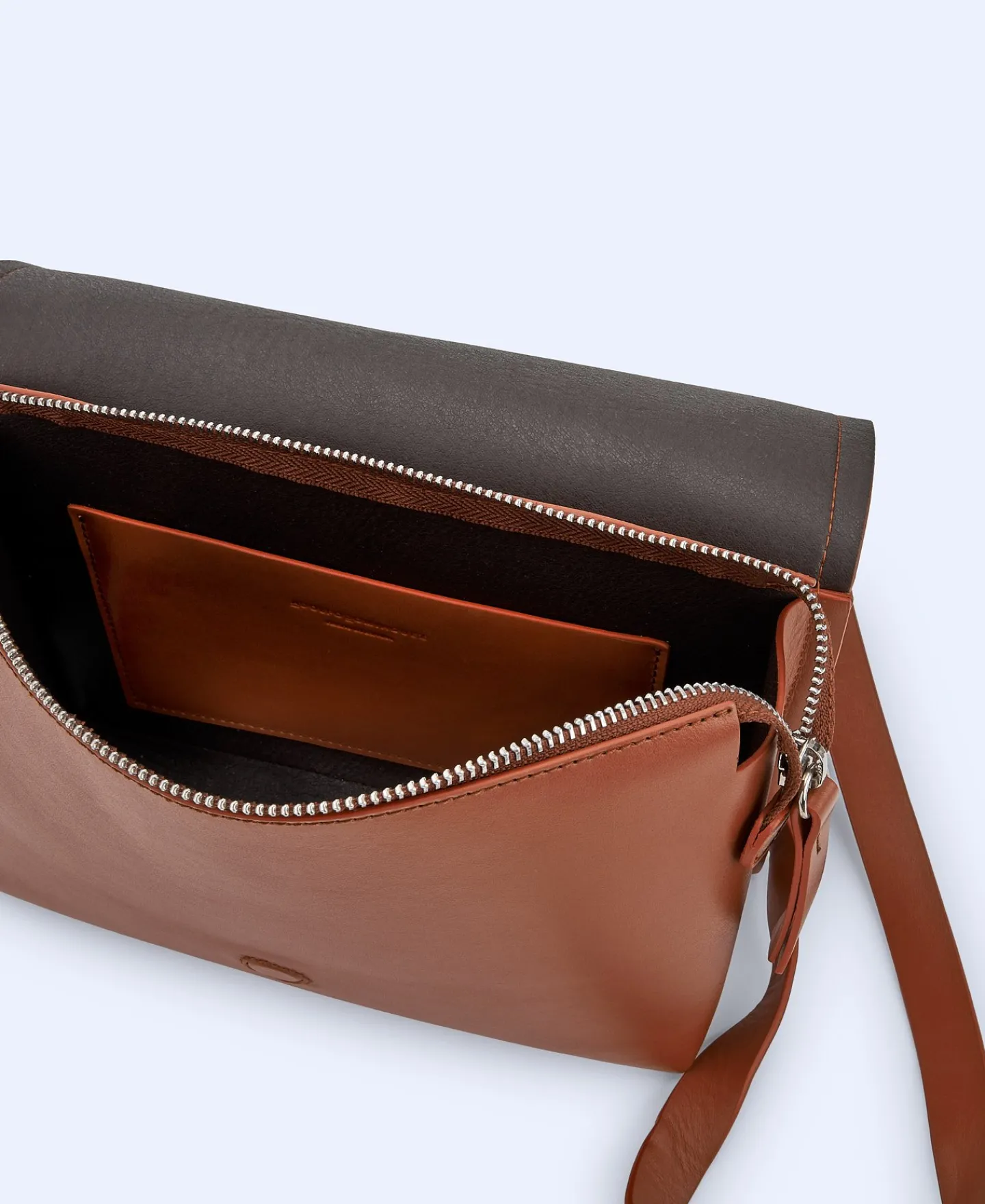 Mala Baguette Made In Spain. Pele Bovina. Assimetrico. Alca Comprida Regulavel. Um Compartimento. Fecho De Ziper Com Aba. Bolso Interior. Logotipo.