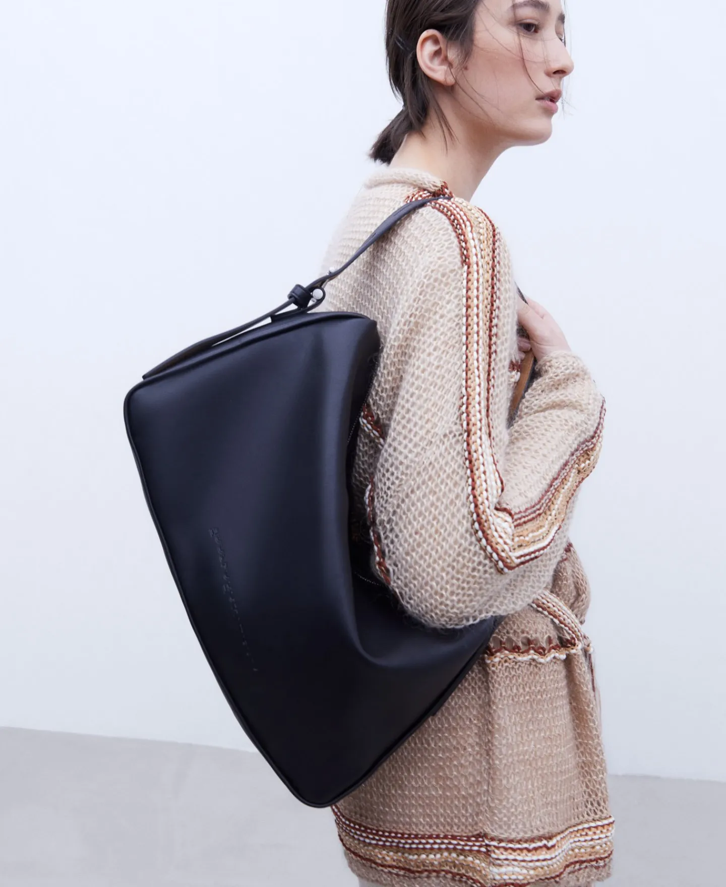 Mala Hobo Media Com Textura Lisa Em Poliester Reciclado. Um Compartimento. Alca De Ombro Ajustavel. Fecho De Correr. Acabamentos Em Metal Reciclado.