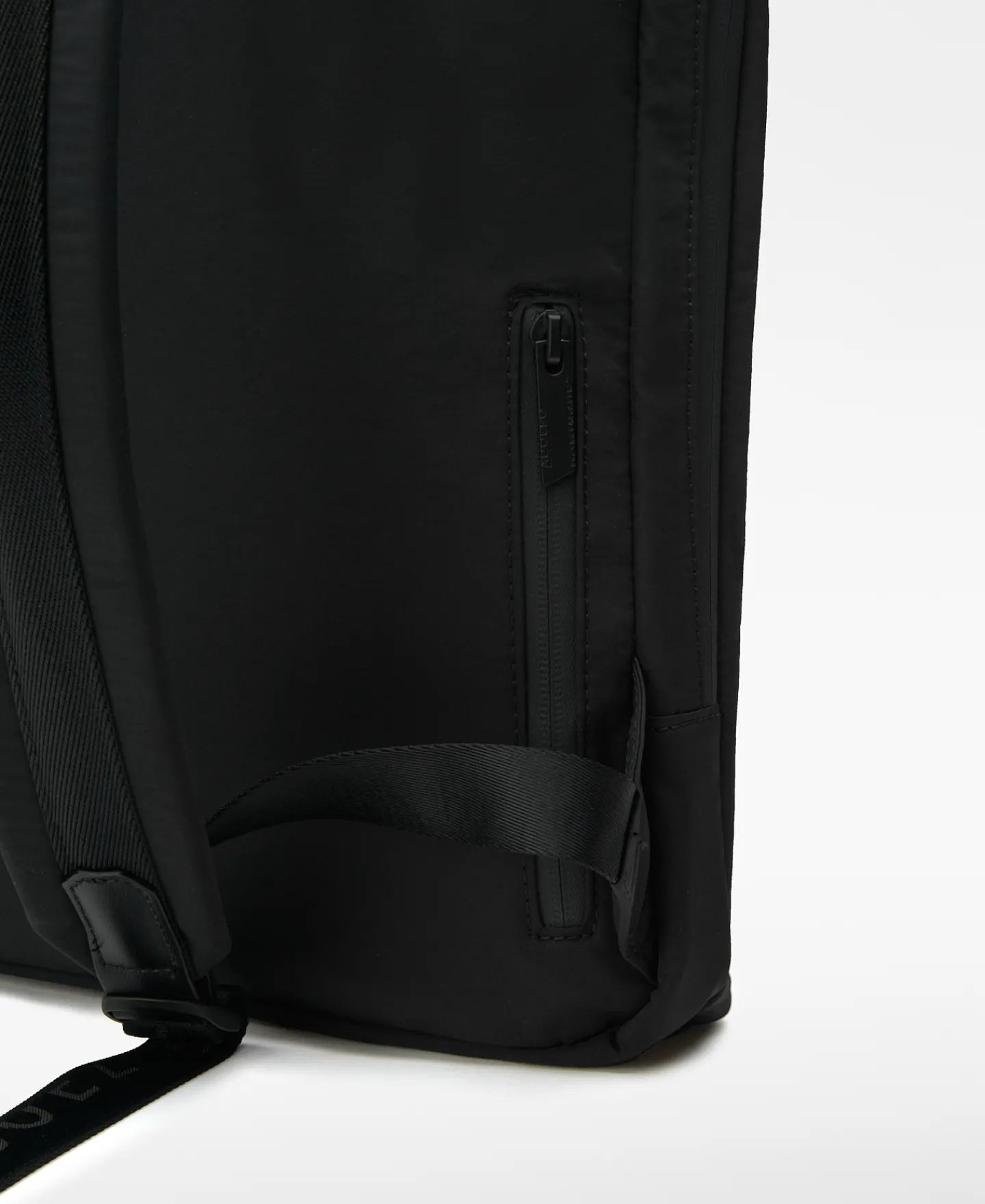 Um Compartimento. Fecho De Correr Duplo Termosselado. Bolso Remendo Frontal. Logotipo Gravado. Correia De Nylon Reciclado.