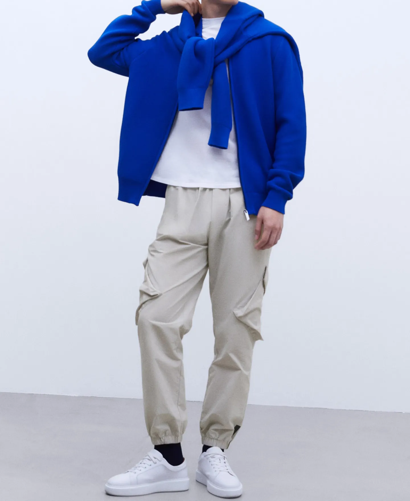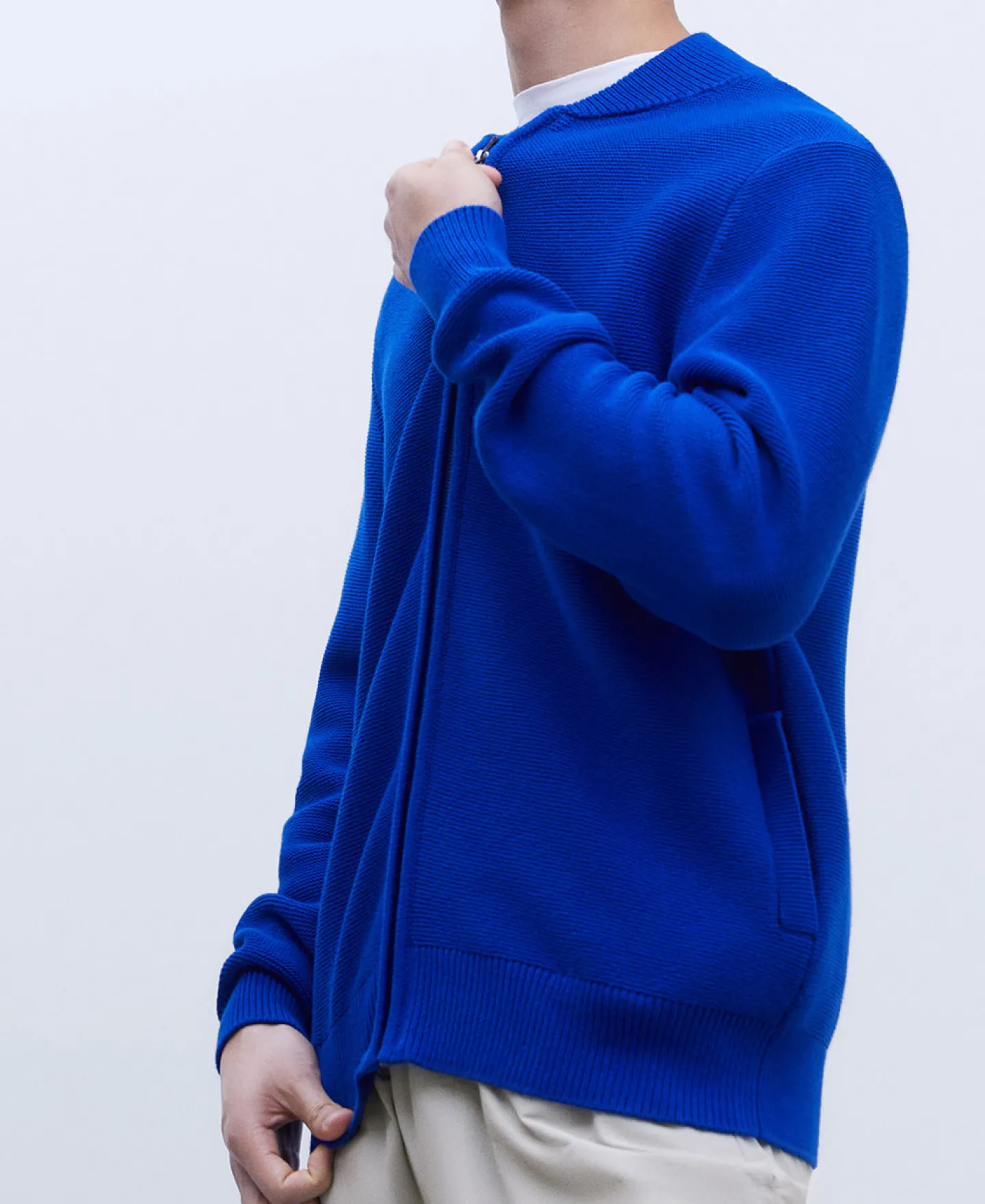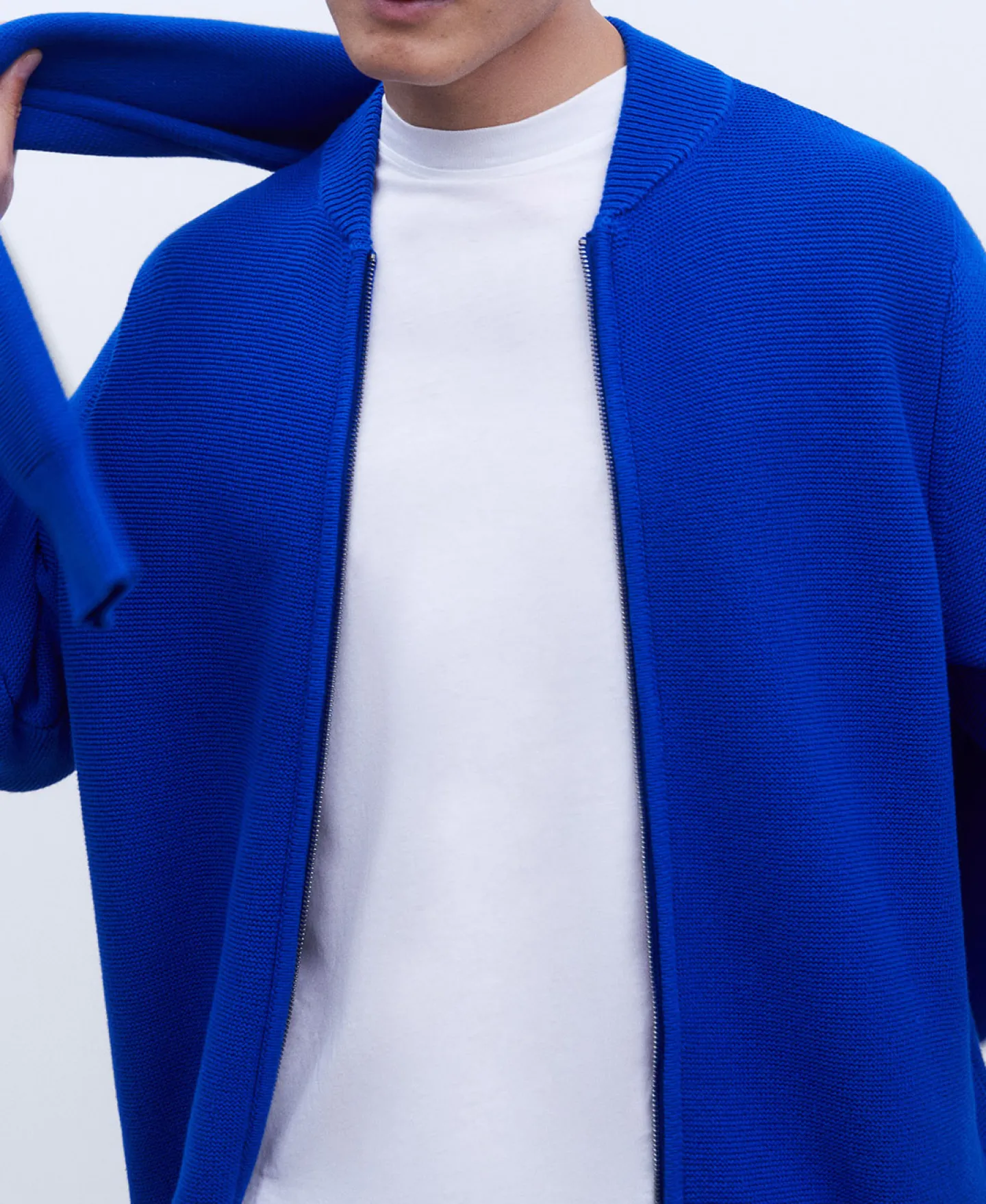 Blusao Bomber De Malha. Manga Comprida. Fecho De Correr Metalico. Bolsos Canguru. Remates Canelados.