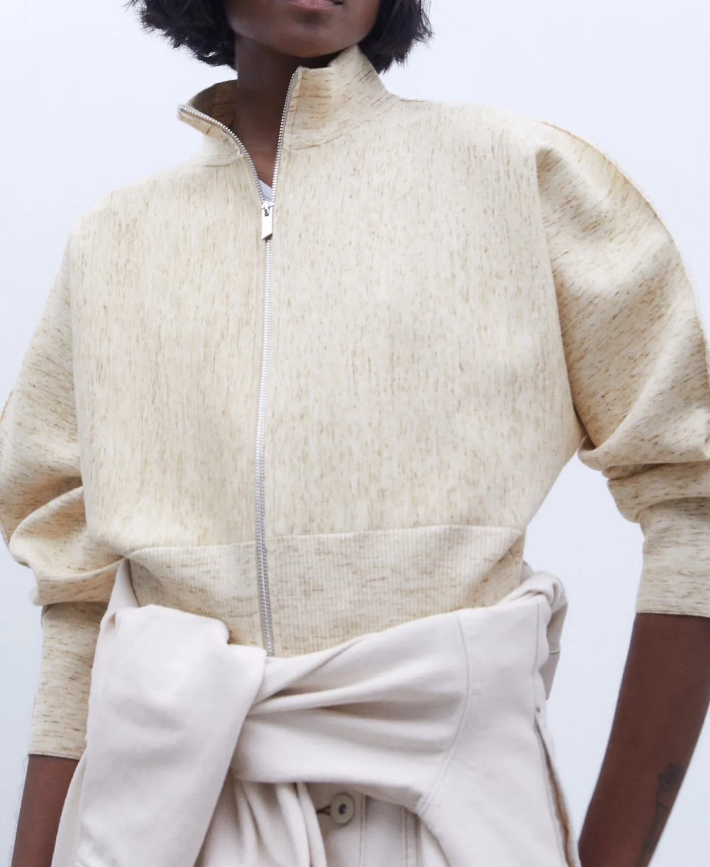 Blusao Bomber Estampado Com Dupla Frontura. Gola Alta. Manga Comprida E Estruturada. Fecho De Correr Central. Comprimento Pela Anca. Remates Canelados.
