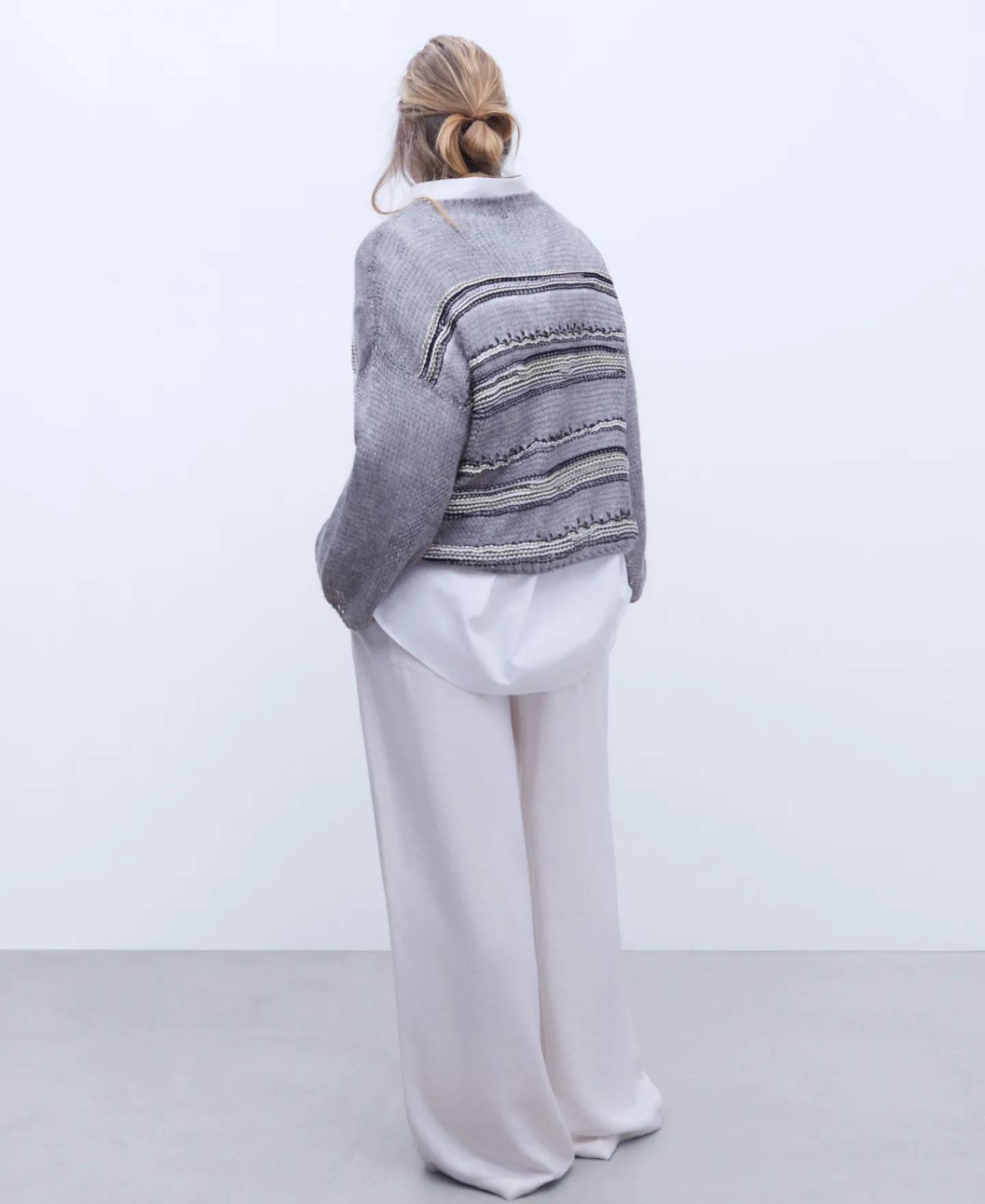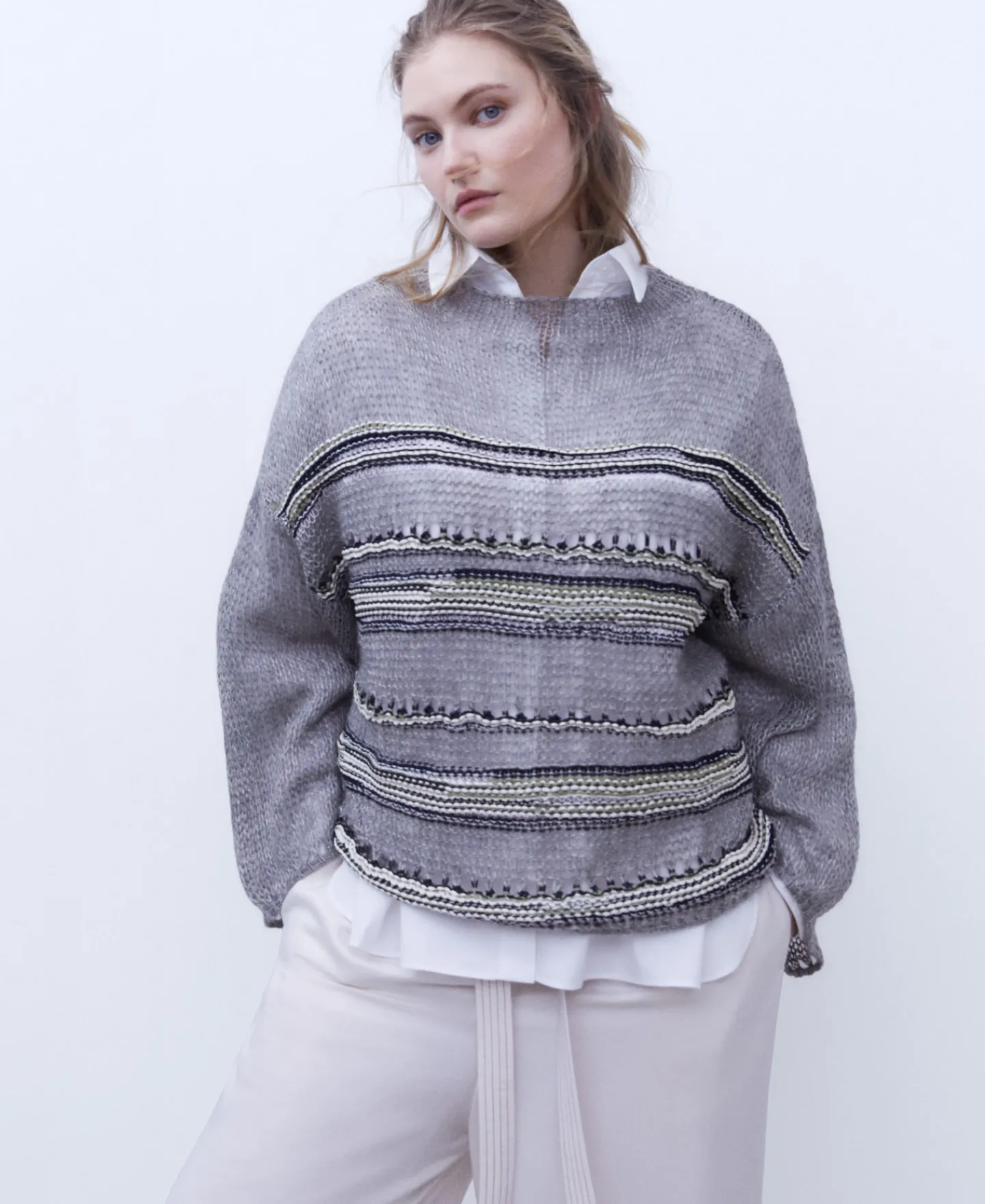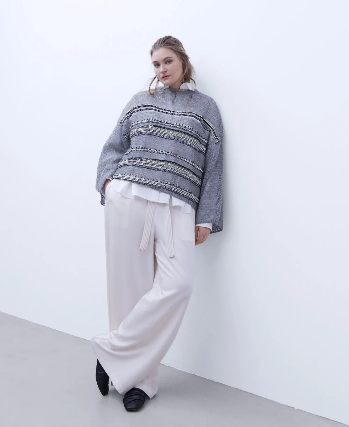 Camisola Ampla Com Gola Redonda. Manga Comprida E Caida. Malha. Silhueta Ampla.