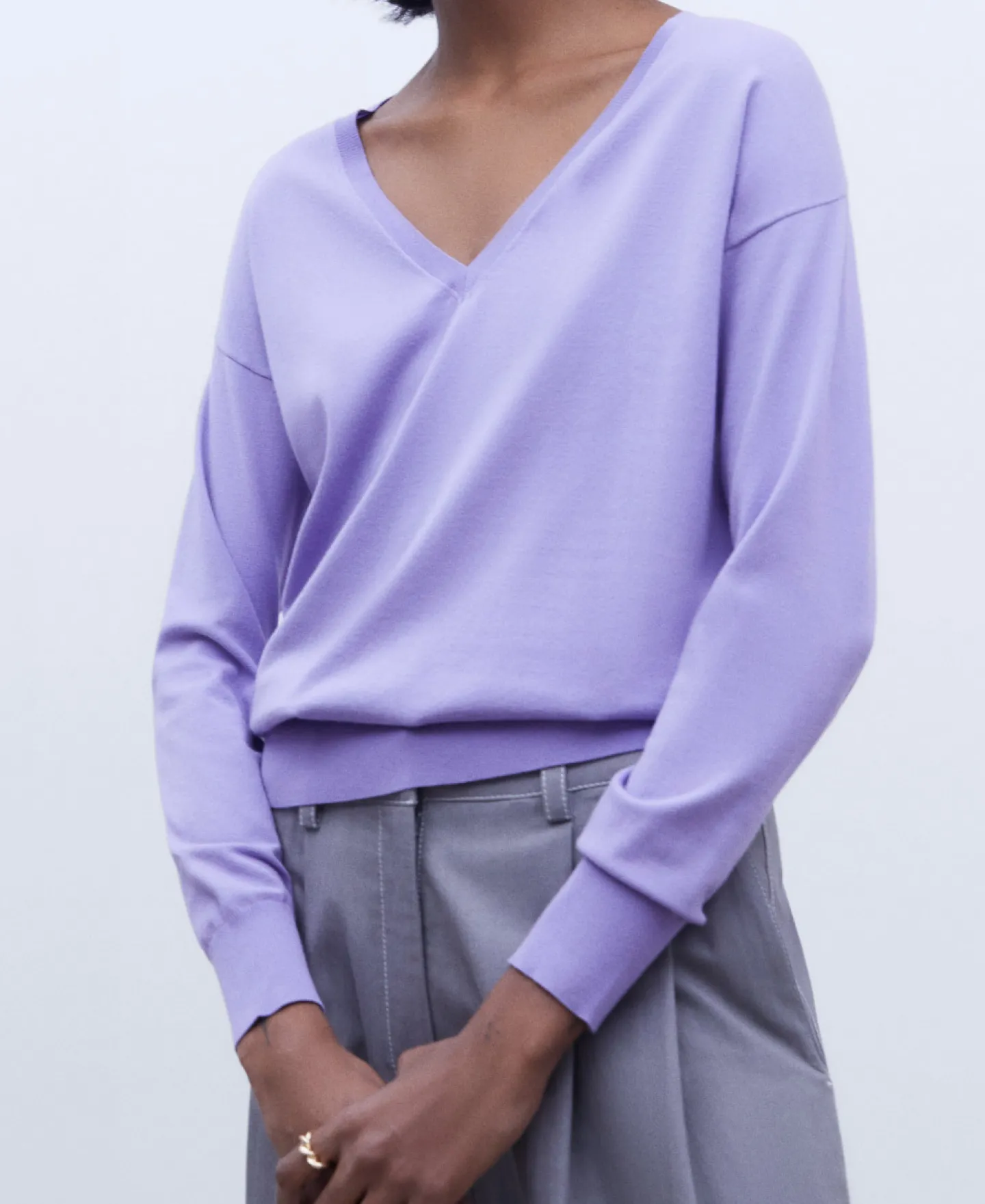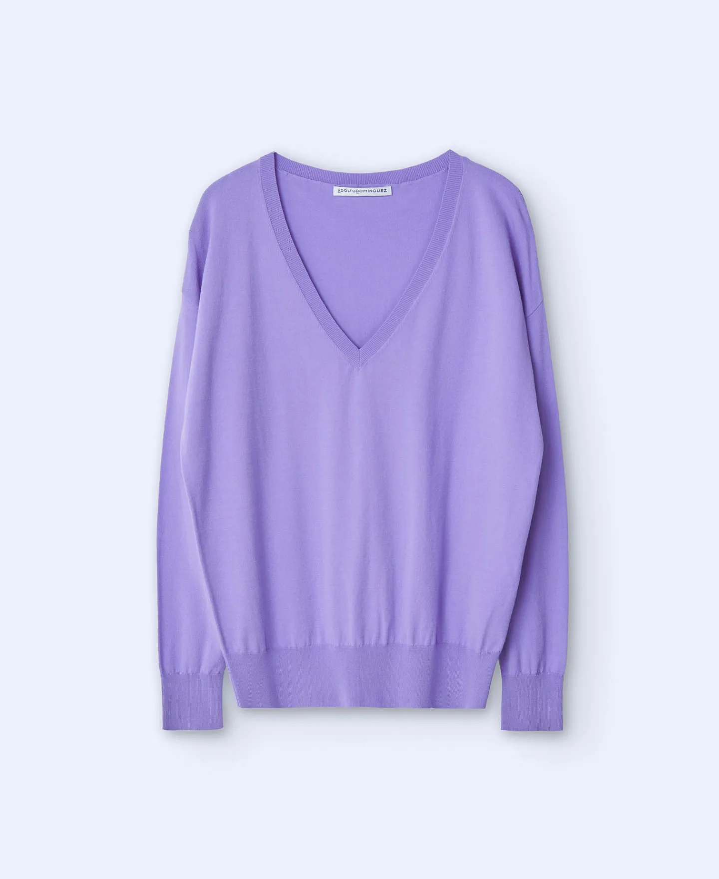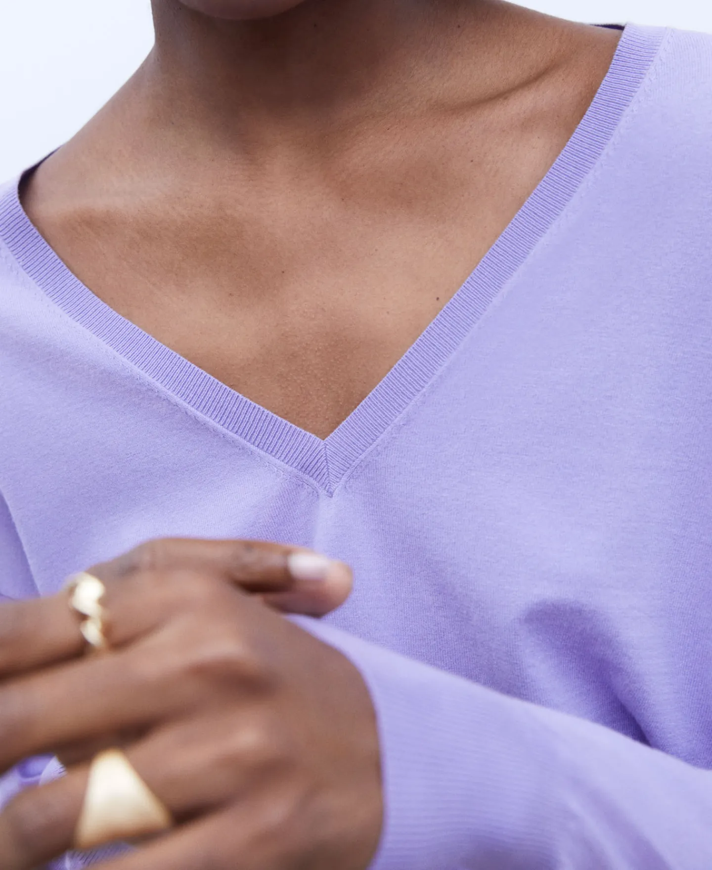 Camisola Em Malha. Gola Em V. Manga Comprida E Caida. Remates Elasticos. Bainha Reta.