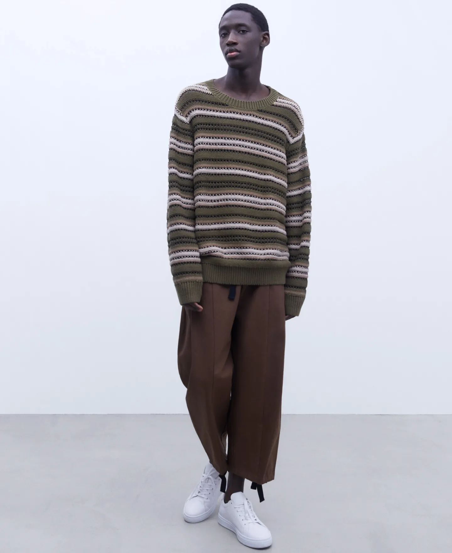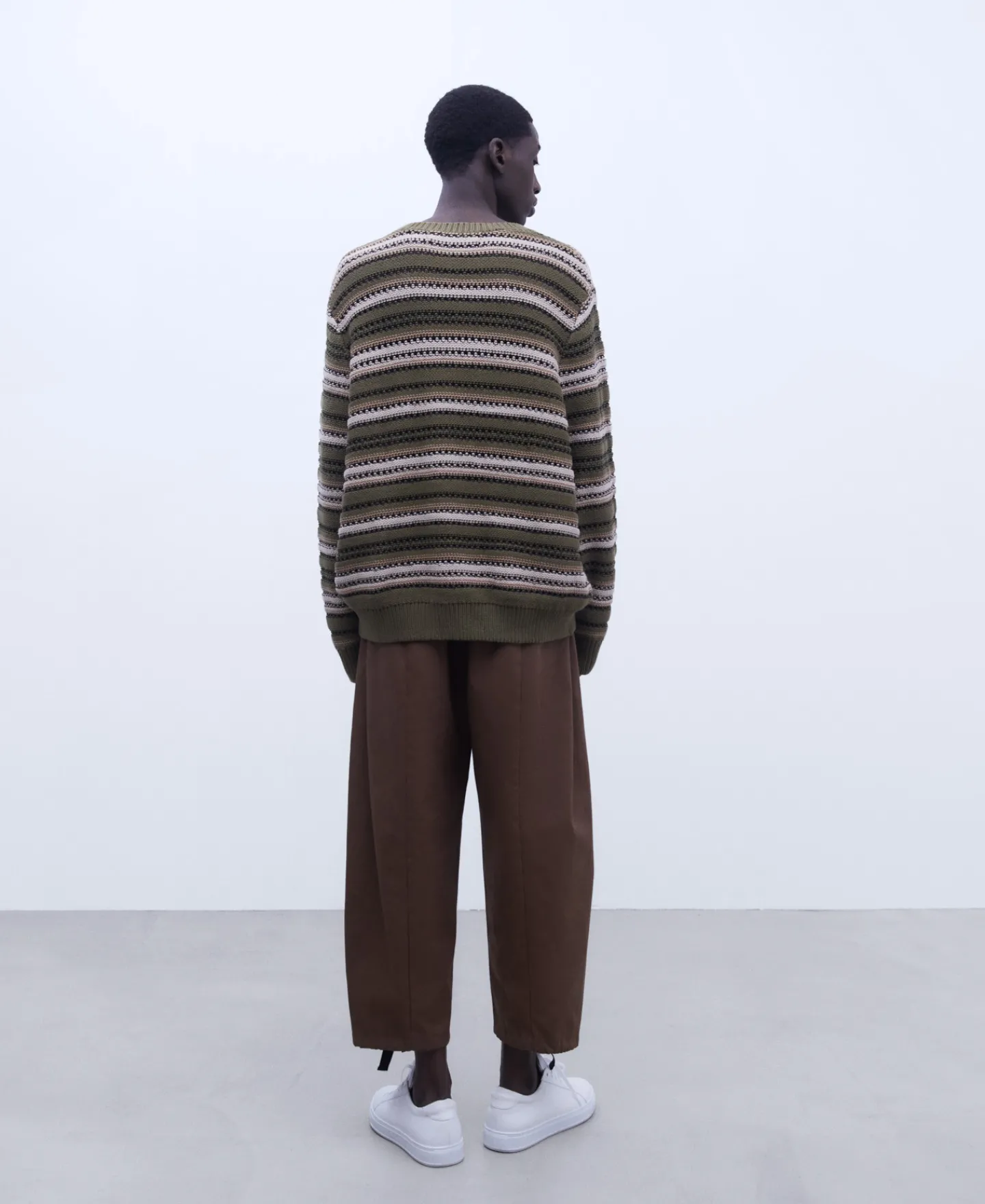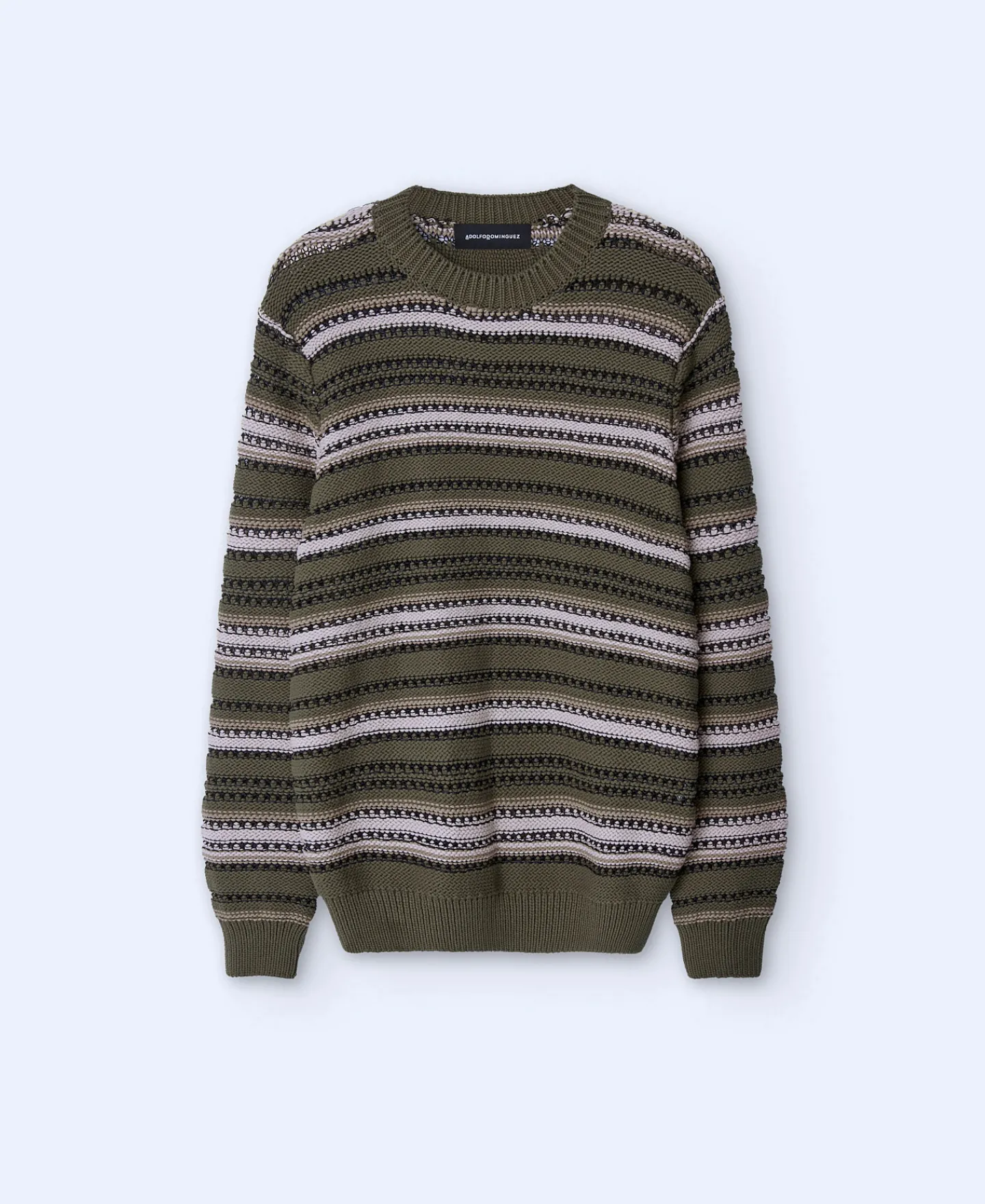 Camisola De Gola Caixa Com Estrutura De Riscas Em Tecido De Algodao. Manga Caida. Acabamentos Canelados.Tecido De Algoda…