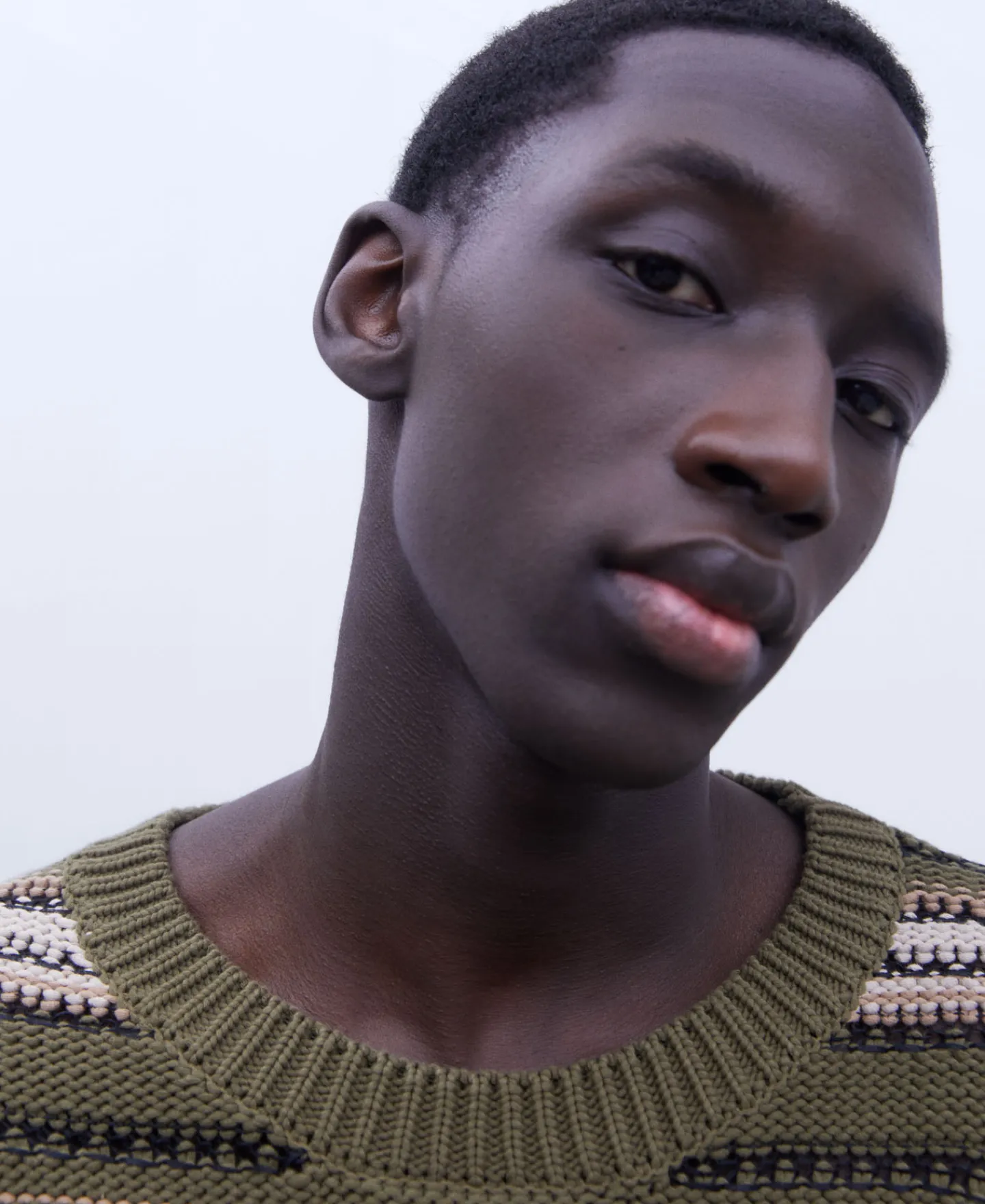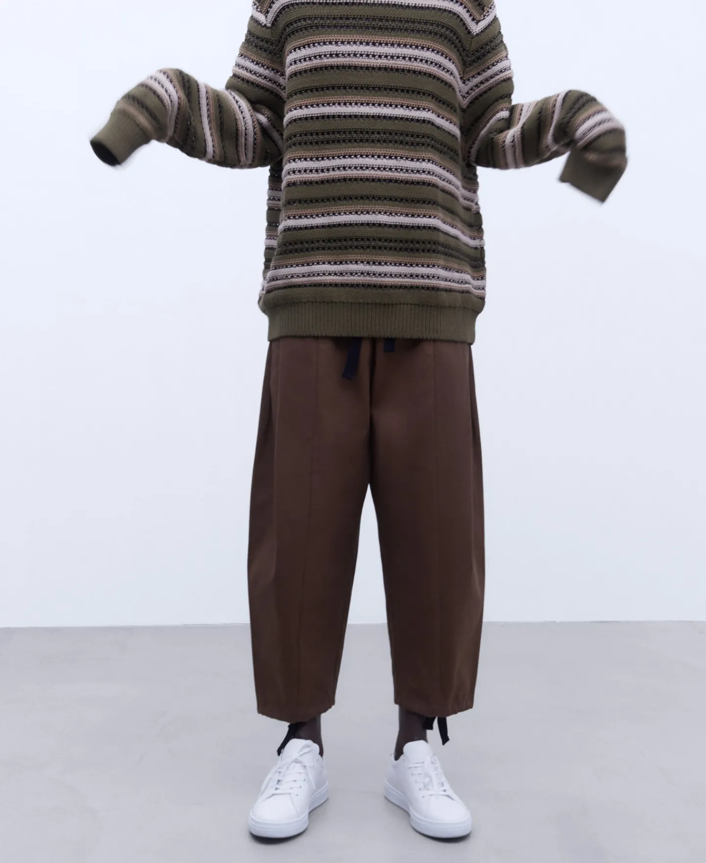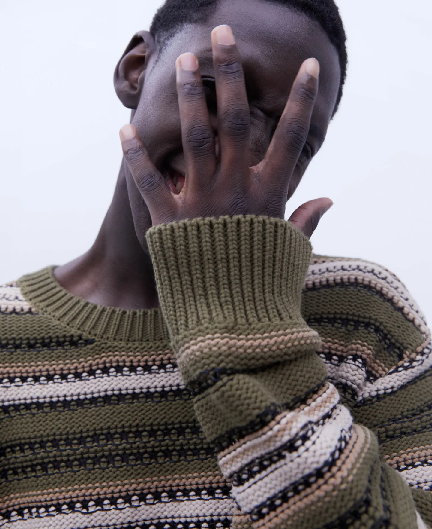 Camisola De Gola Caixa Com Estrutura De Riscas Em Tecido De Algodao. Manga Caida. Acabamentos Canelados.Tecido De Algoda…