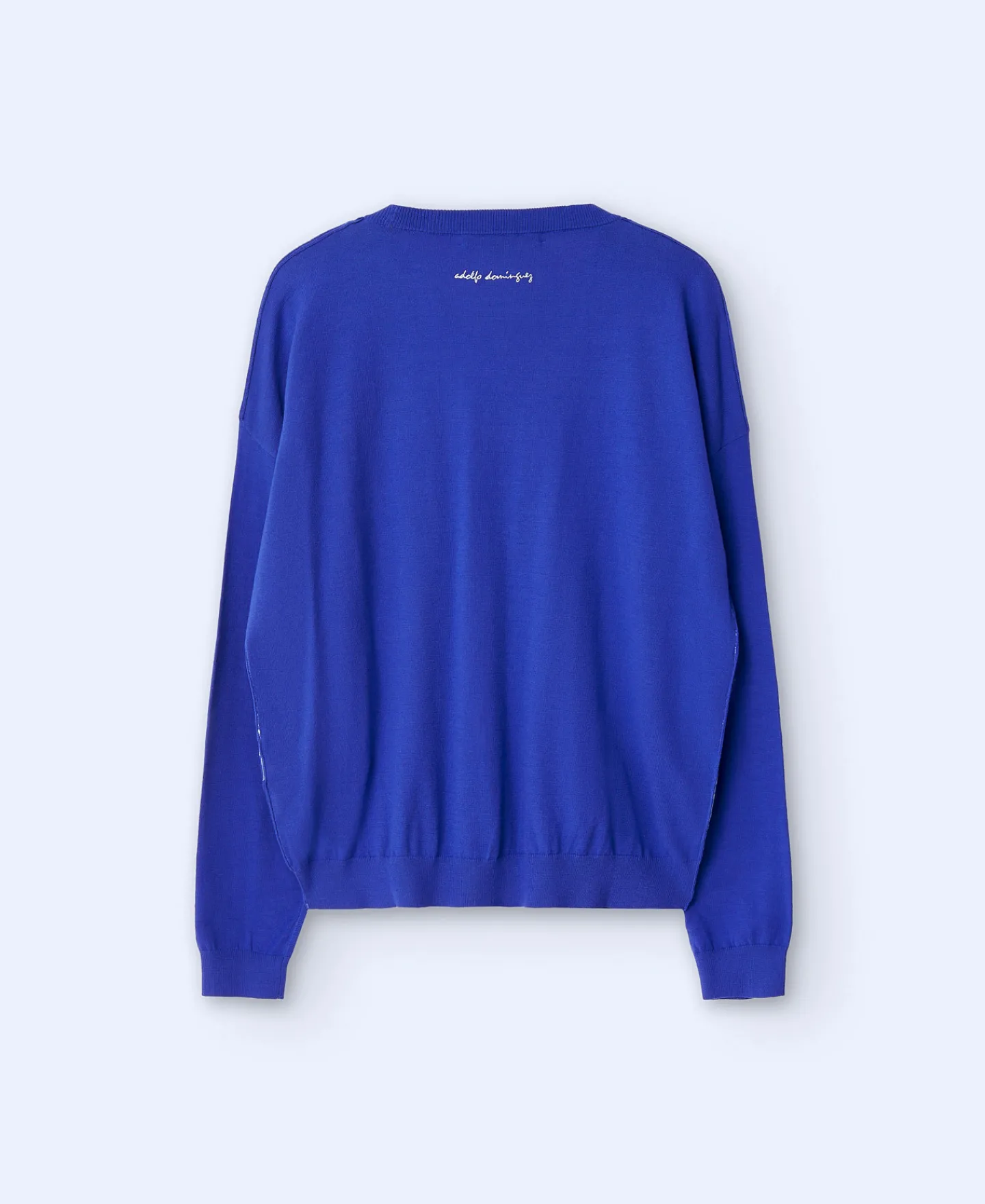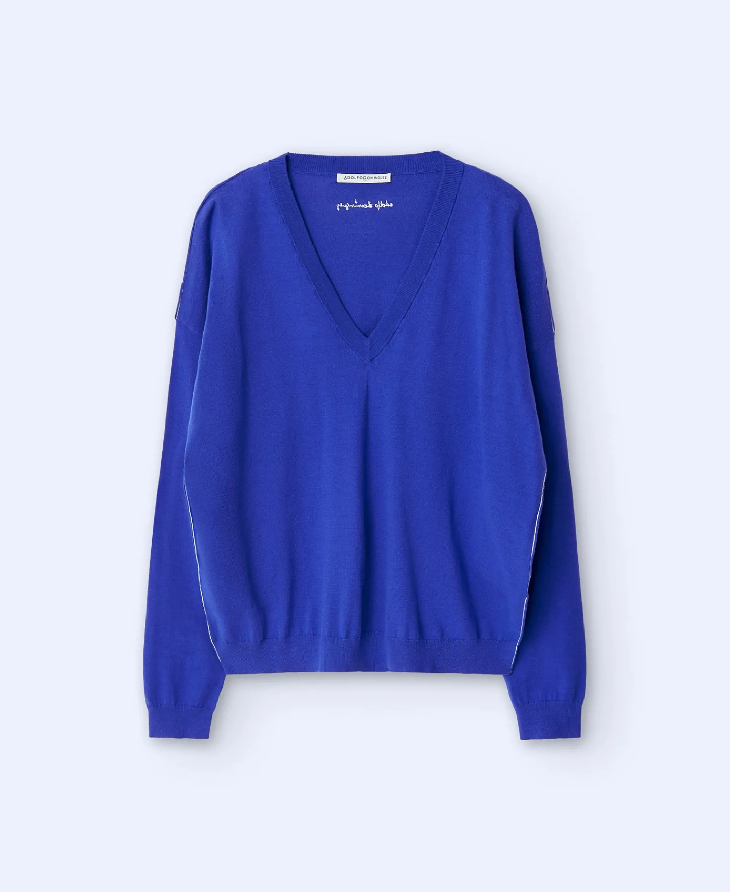 Camisola De Gola Em V. Manga Comprida. Remates Canelados. Costura Lateral Em Contraste.
