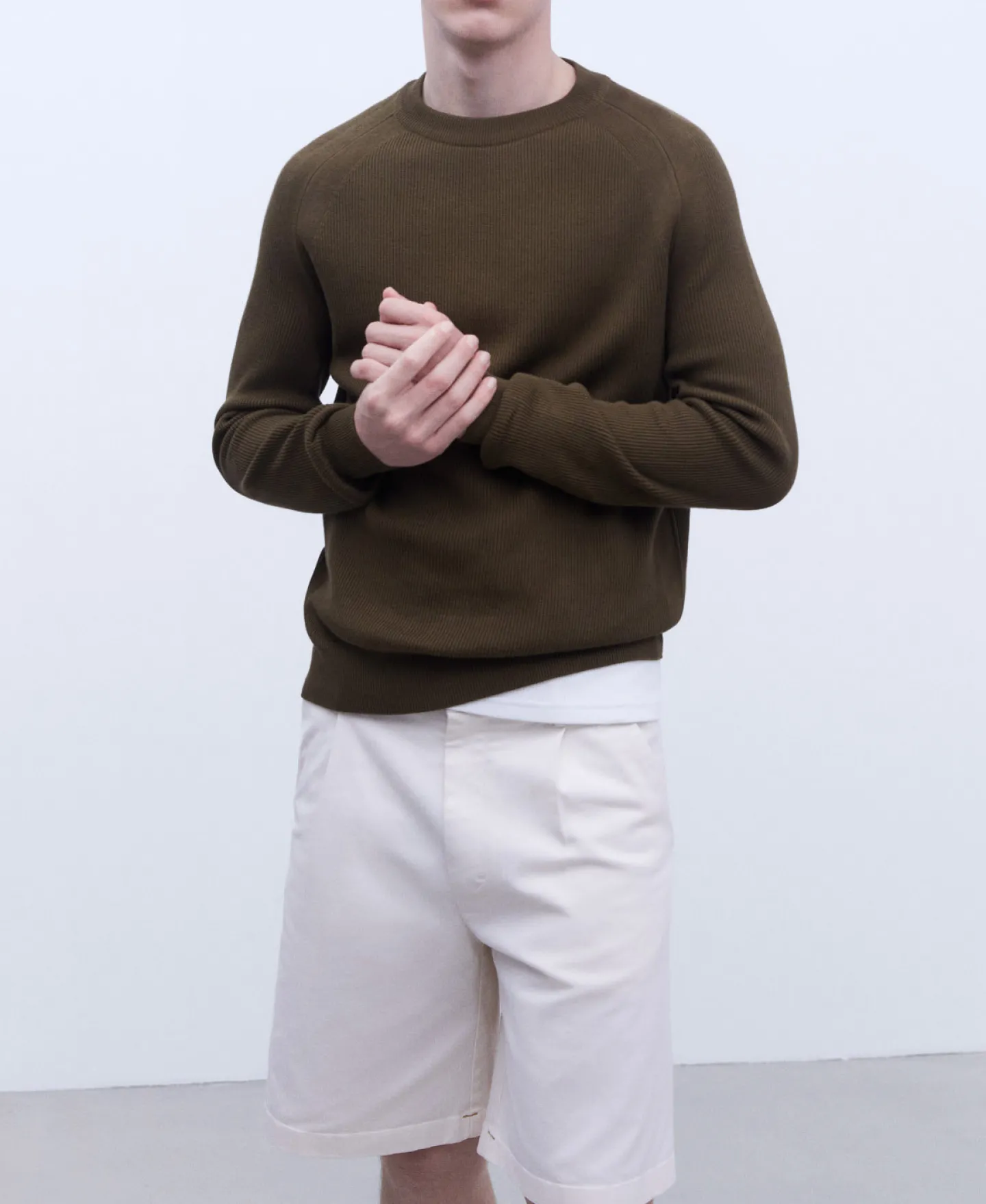 Gola Redonda. Remates Canelados. Detalhes De Reducoes.100% AlgodaoGola RedondaManga RaglanRemates Canelados