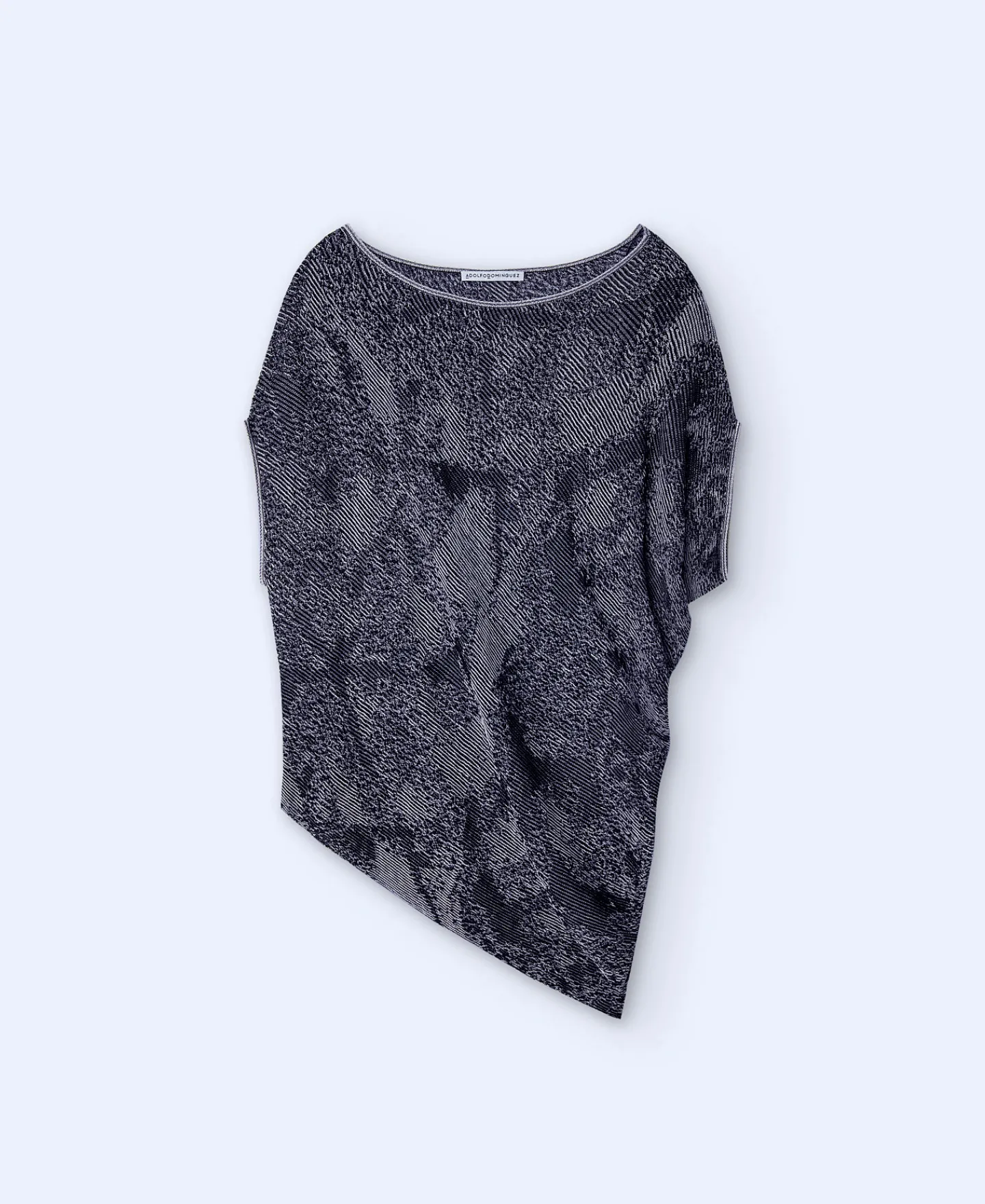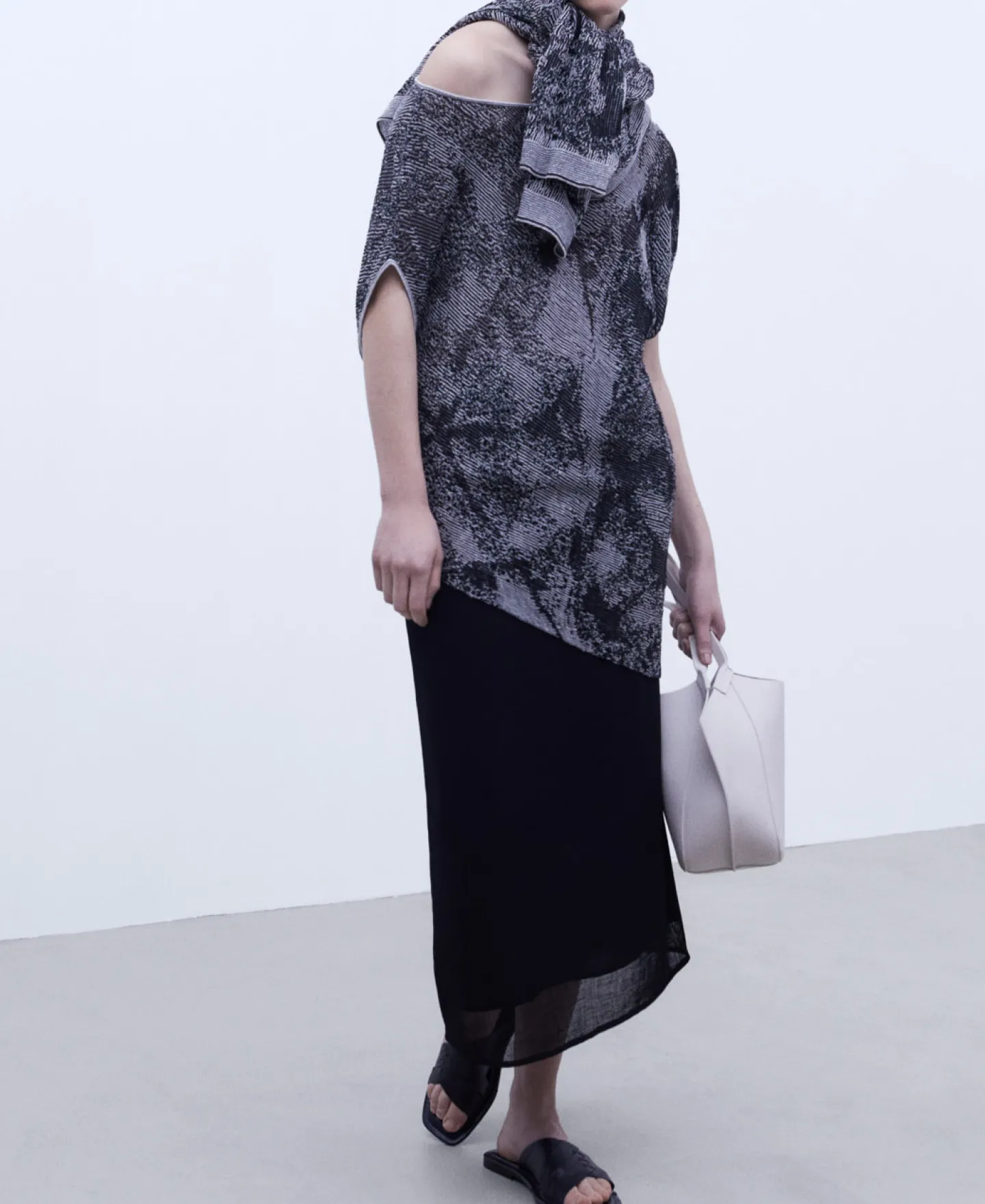 Decote Barco. Algodao E Linho. Bainha Assimetrica.Algodao E LinhoJacquardAssimetrica
