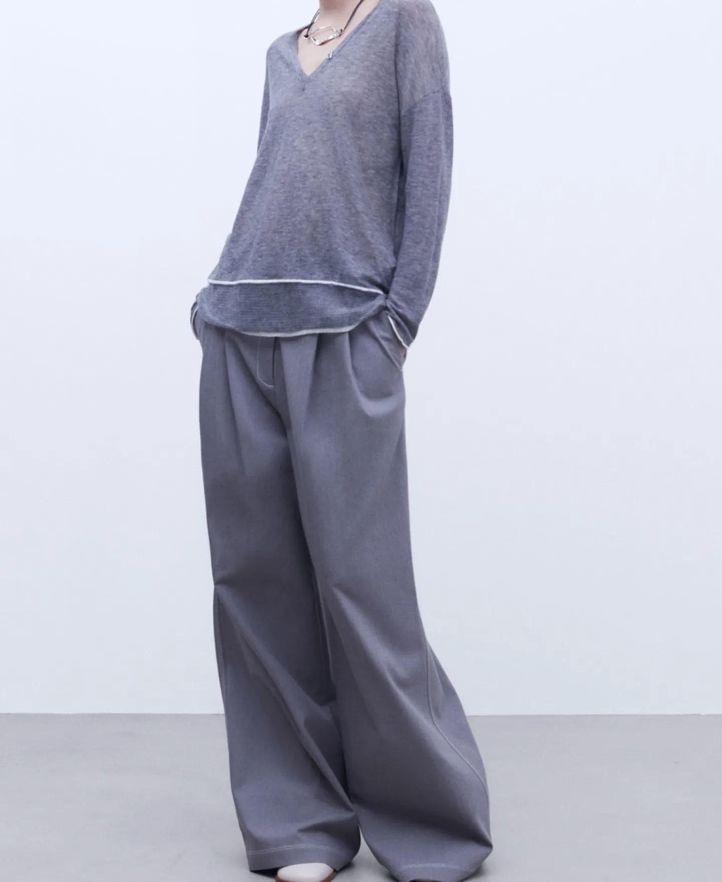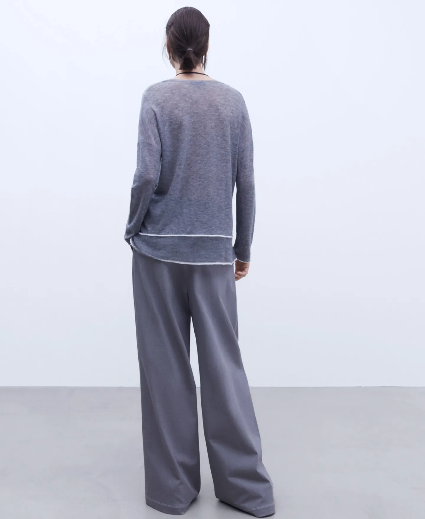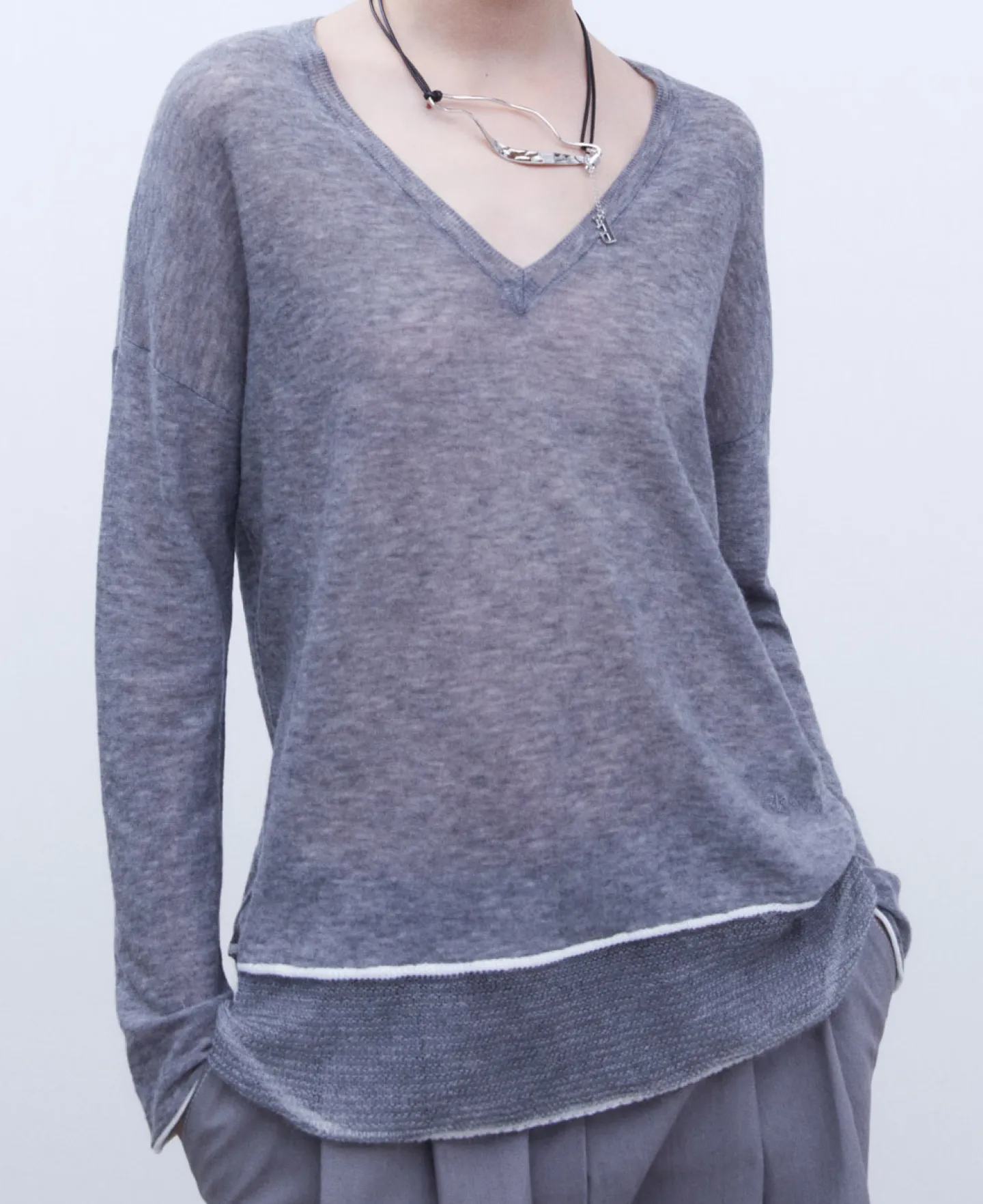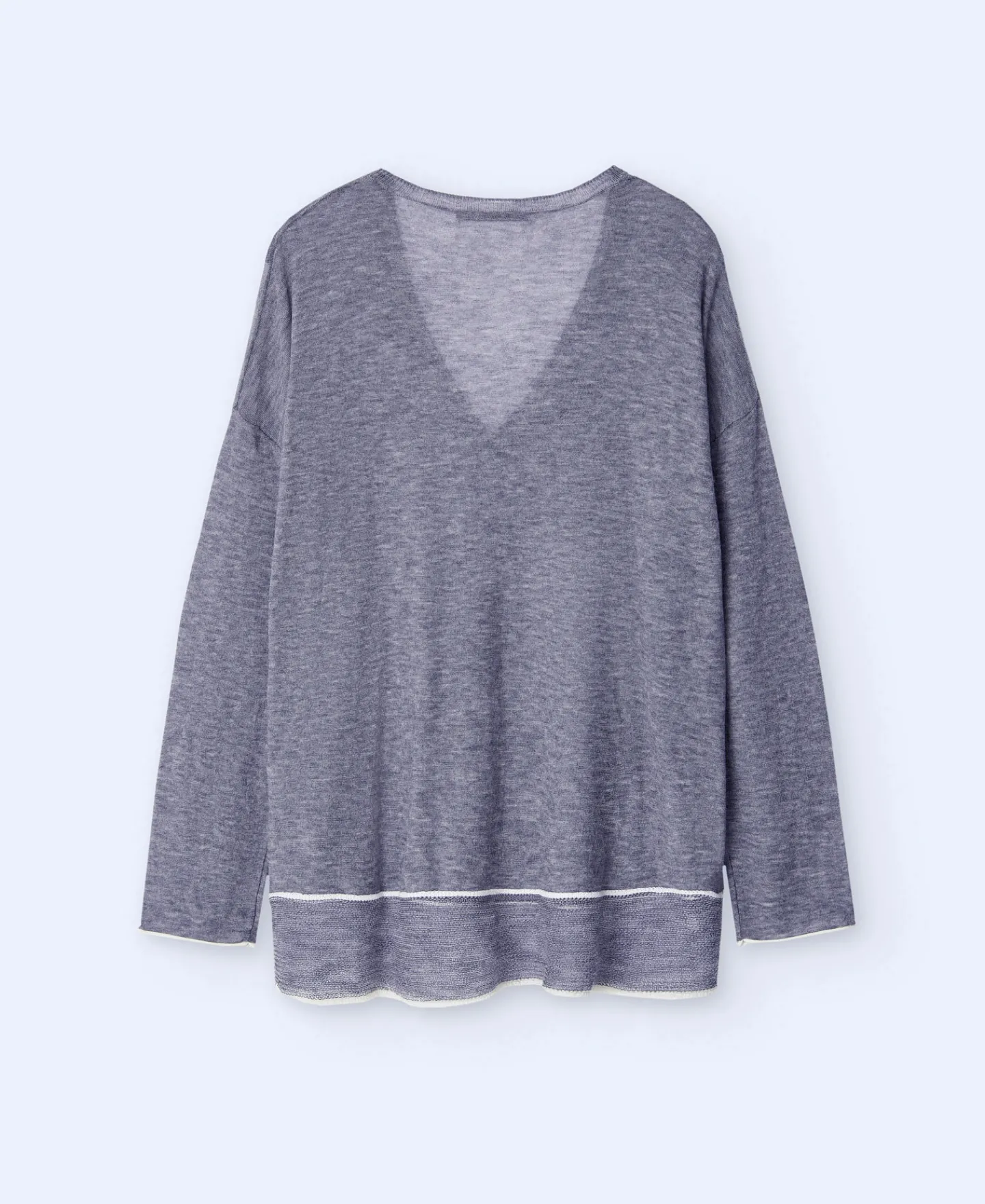 Camisola Em Tecido De La Merino. Gola Em V. Manga Comprida E Caida. Bainha Com Acabamentoem Contraste.La MerinoGola Em V…