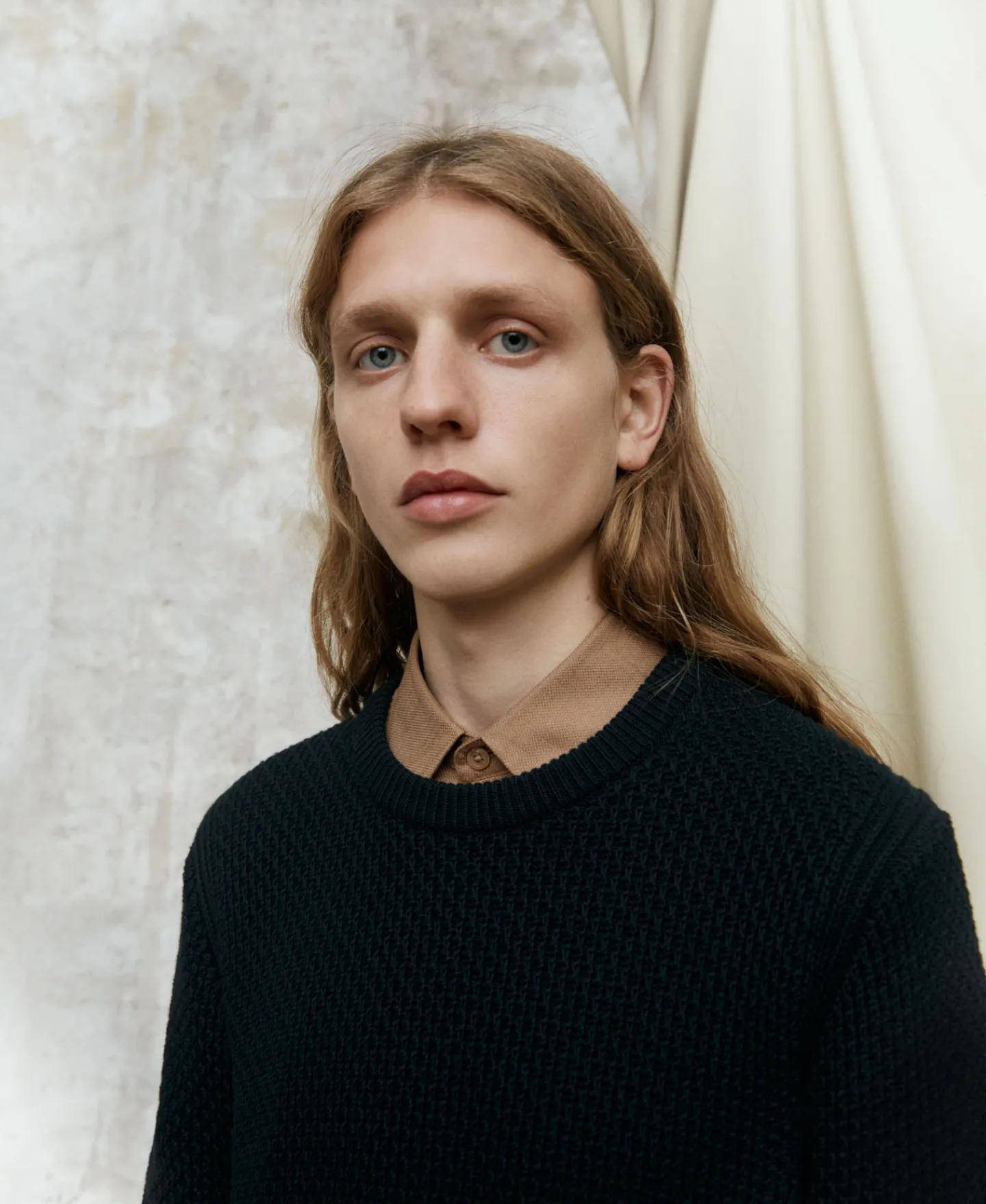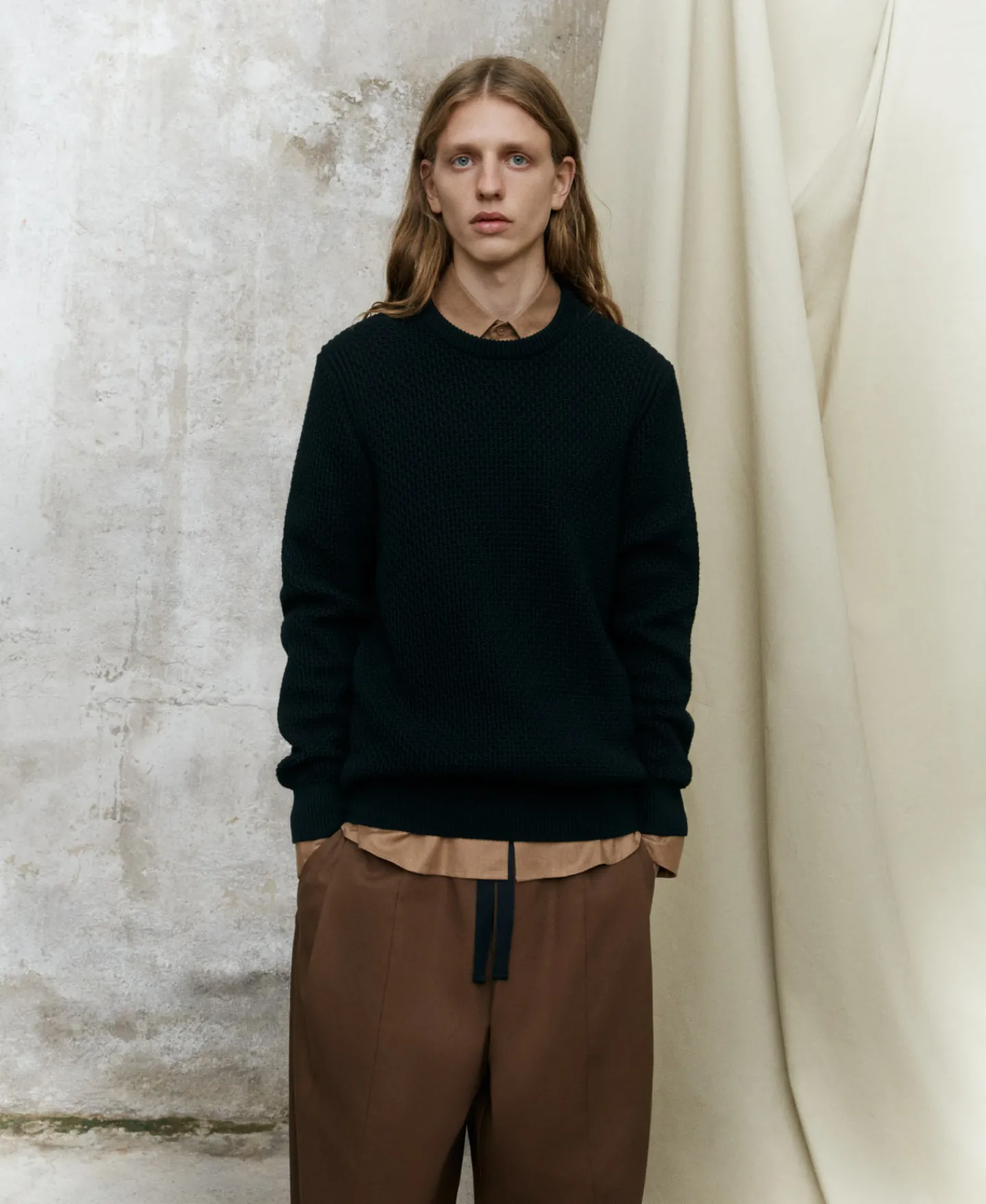 Camisola Estruturada Em Algodao Com Gola Caixa. Costuras Deslocadas. Detalhes De Reducoes. Acabamentos Canelados.