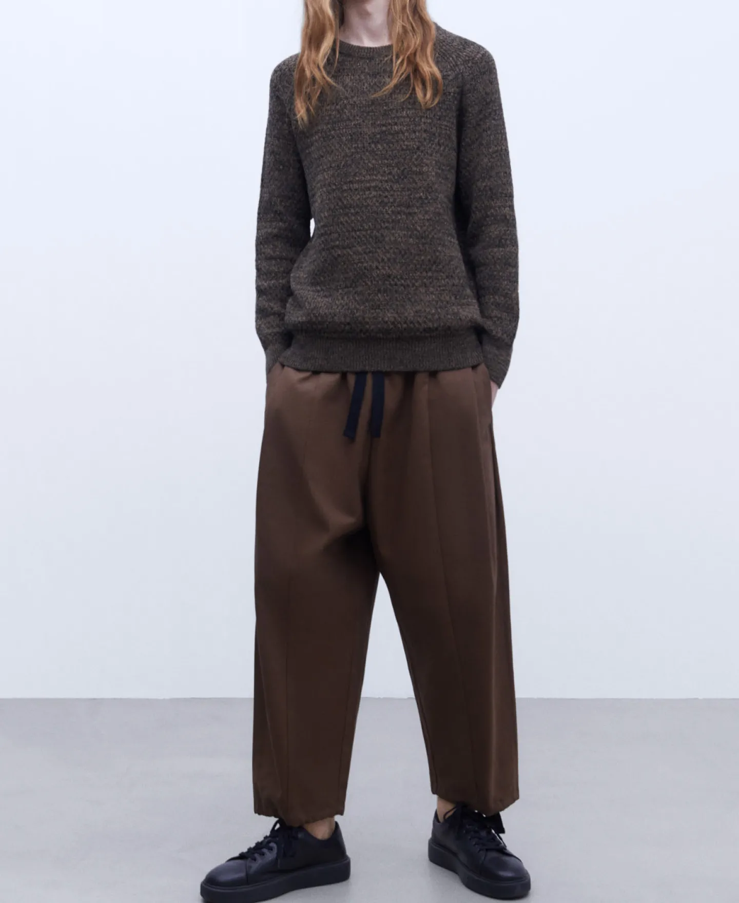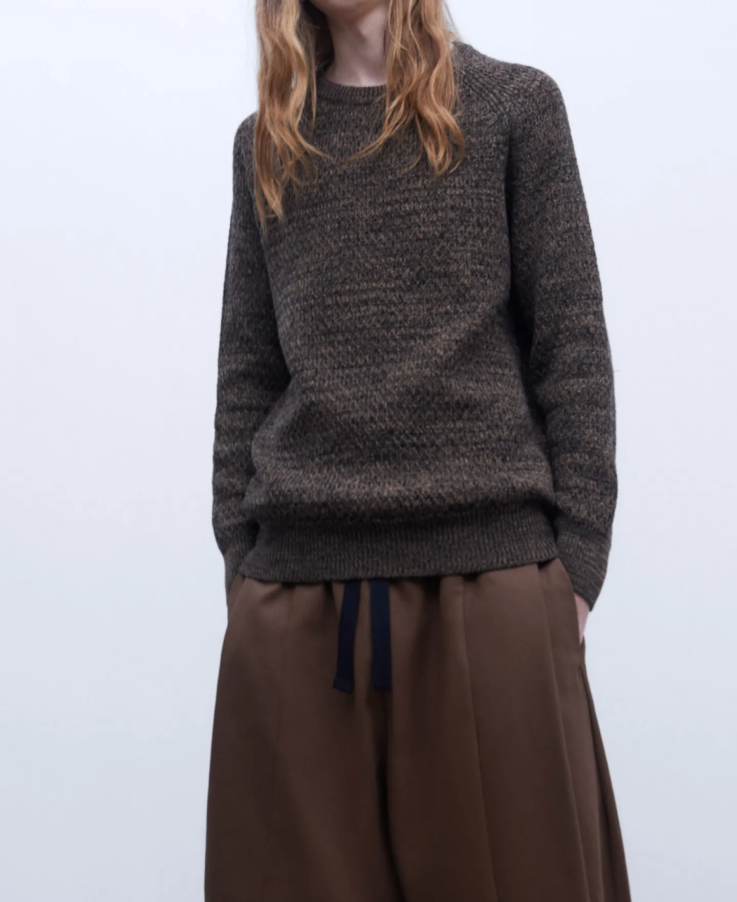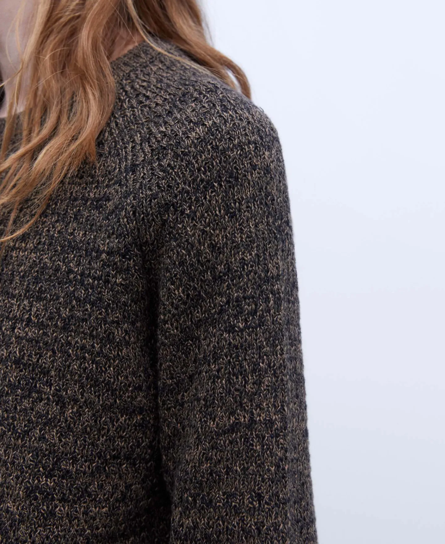 Camisola Jaspeada Em Algodao. Gola Caixa. Manga Raglan. Acabamentos Canelados.