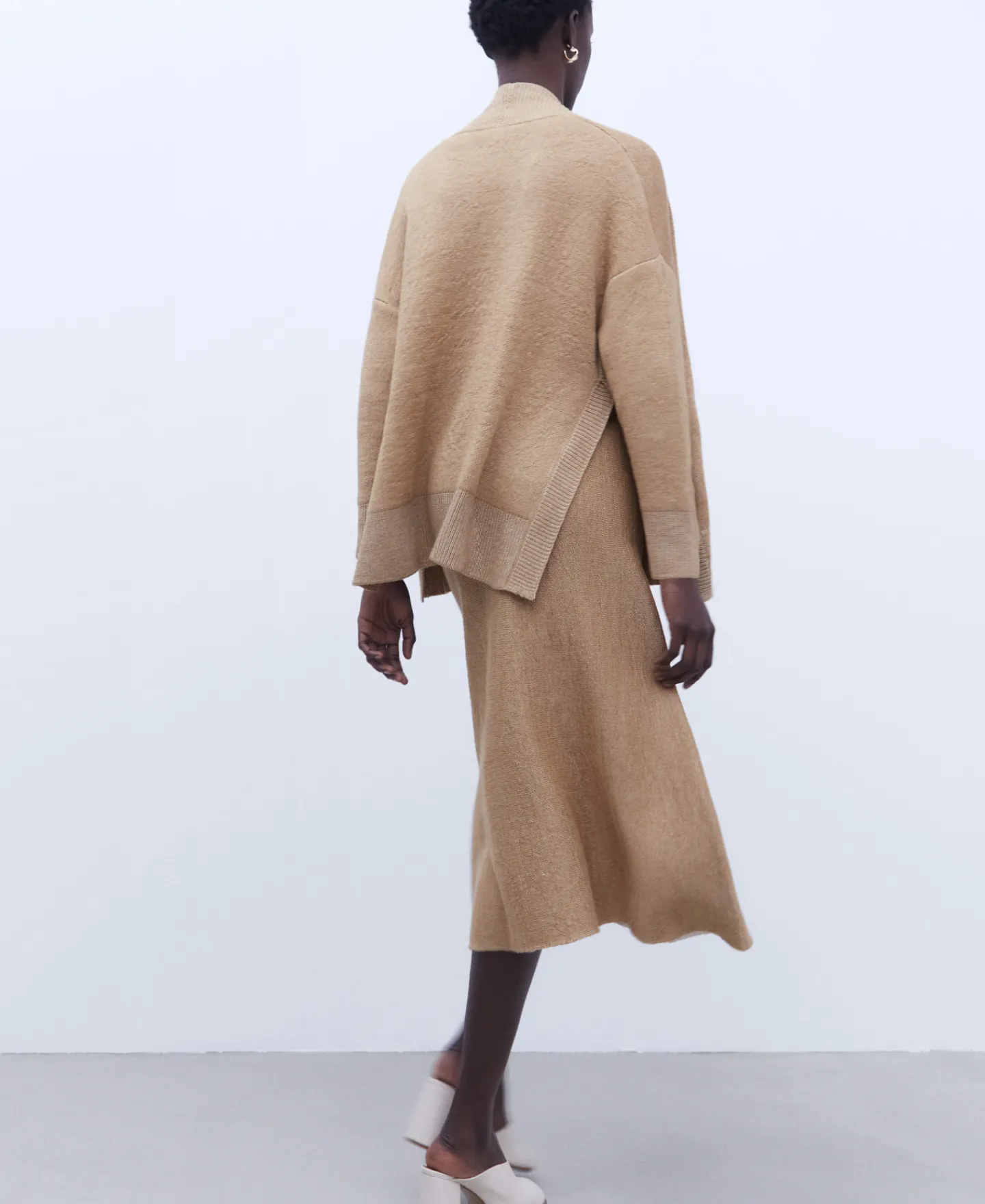 Casaco De Malha Em Dupla Frontura. Tecido De Linho. Gola Quimono. Manga Comprida. Abertura Lateral. Acabamentos Canelado…