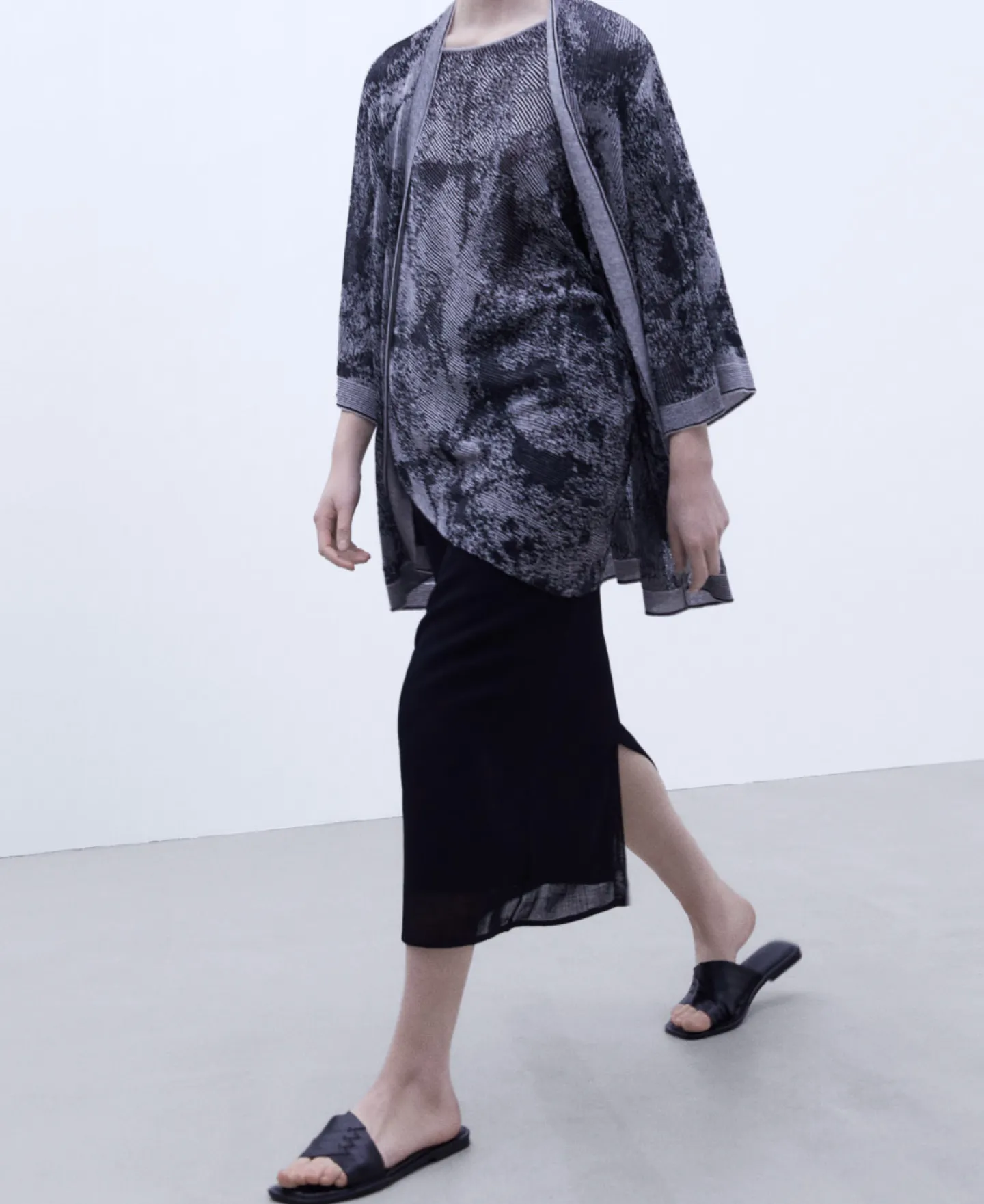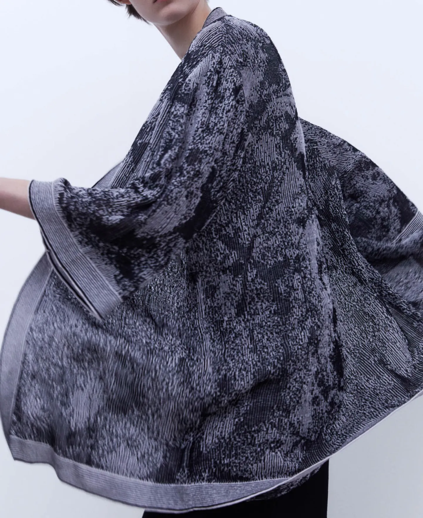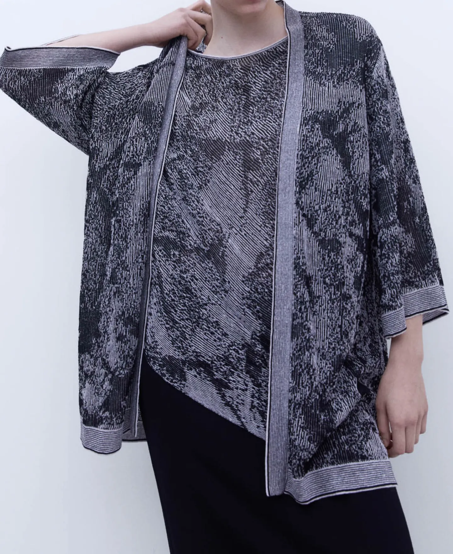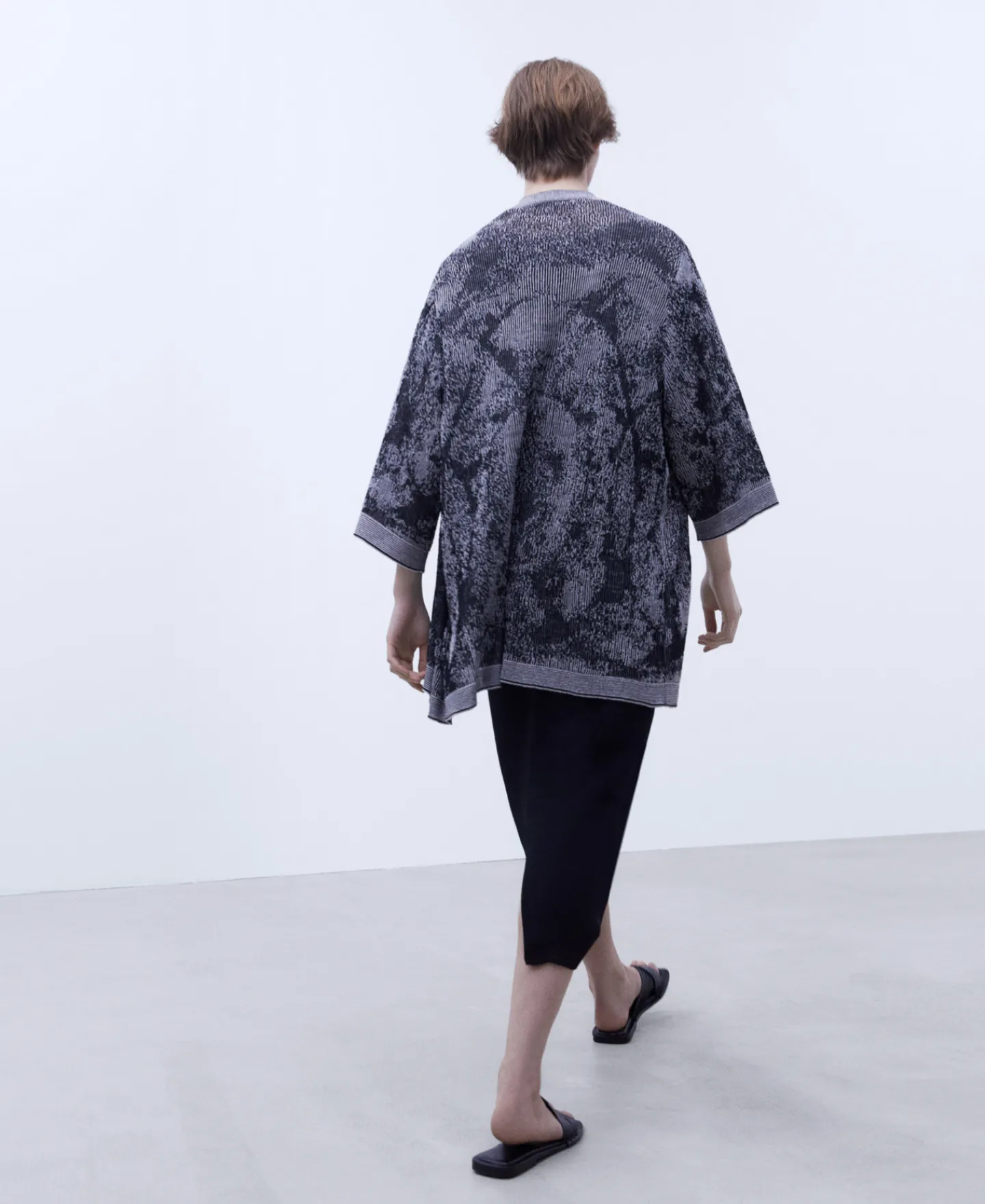 Jacquard. Manga Ampla. Sem Botoes.Algodao E LinhoJacquardManga Ampla