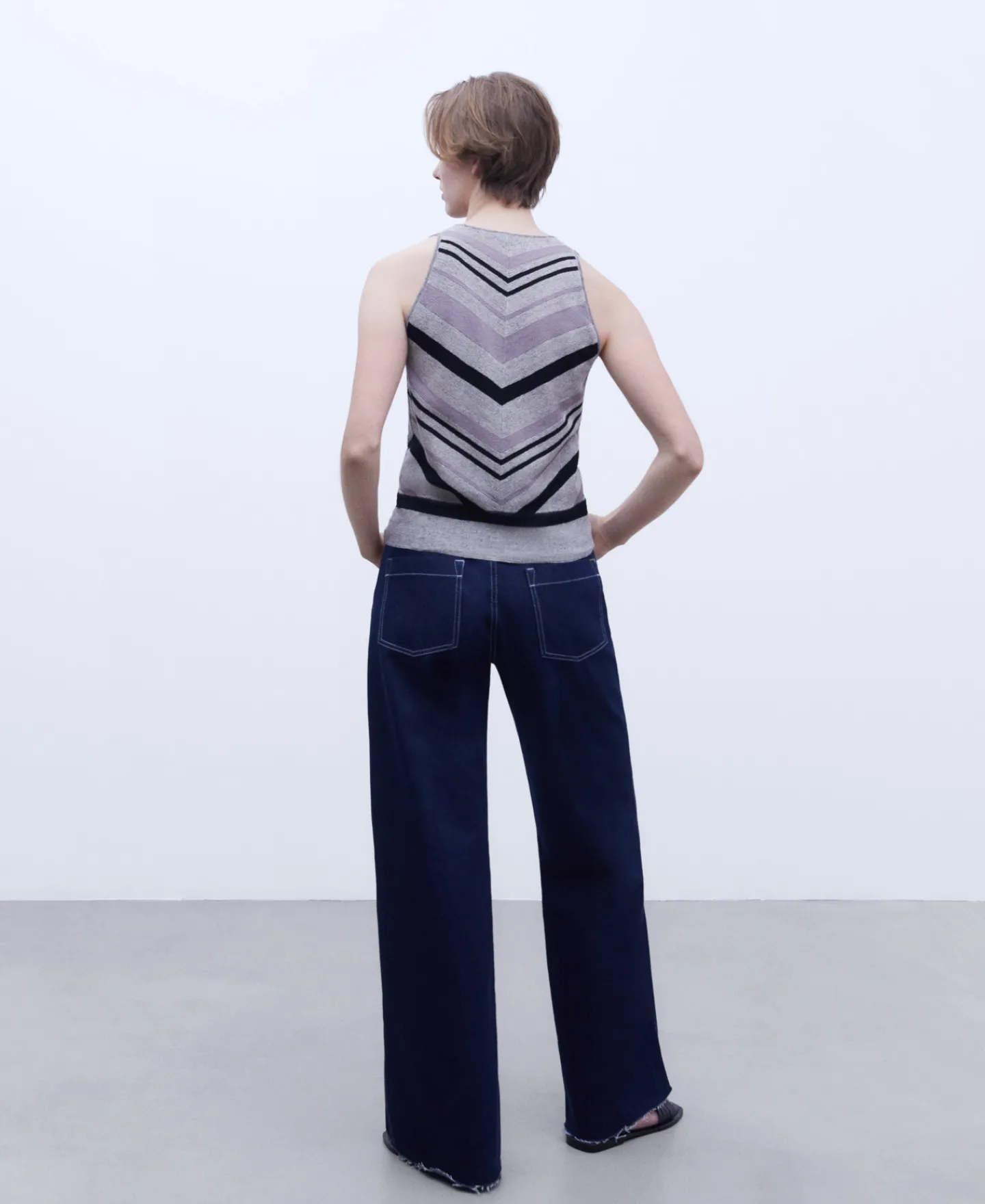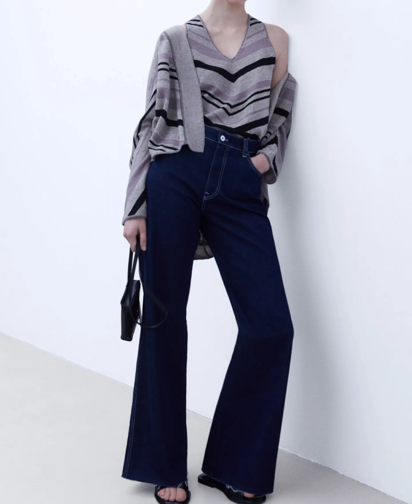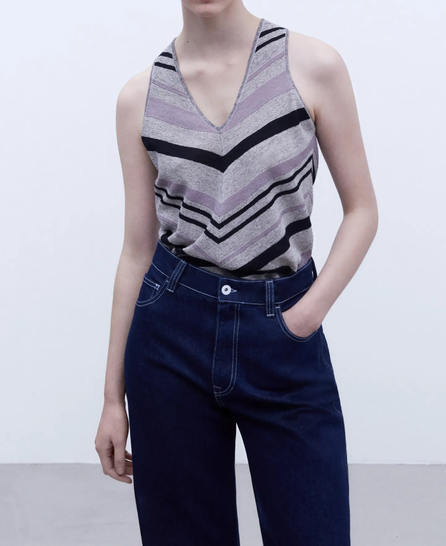 Decote Em V. Bainha Reta. Linho E NylonDecote Em VBainha Reta