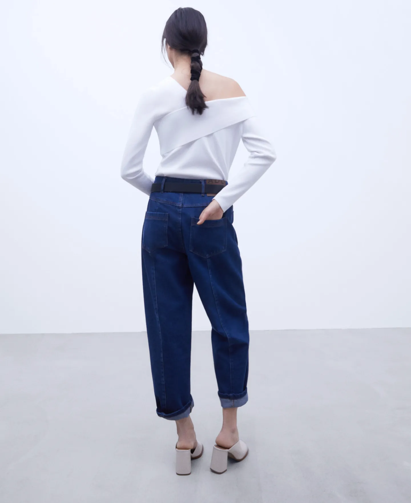 Top Em Malha. Abertura Assimetrica. Manga Comprida. Bainha Reta.49% Nylon RecicladoMalhaDecote AssimetricoManga Comprida