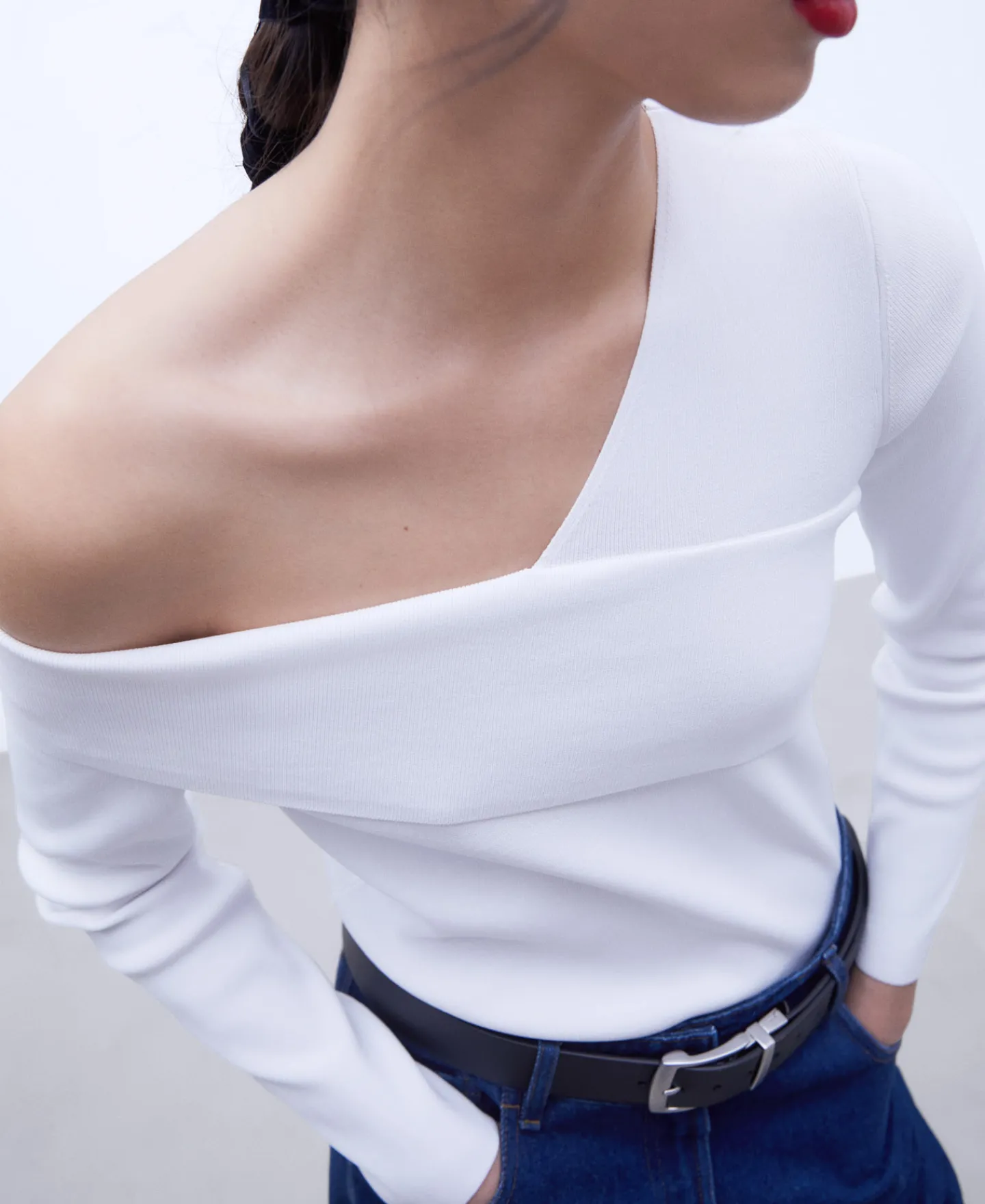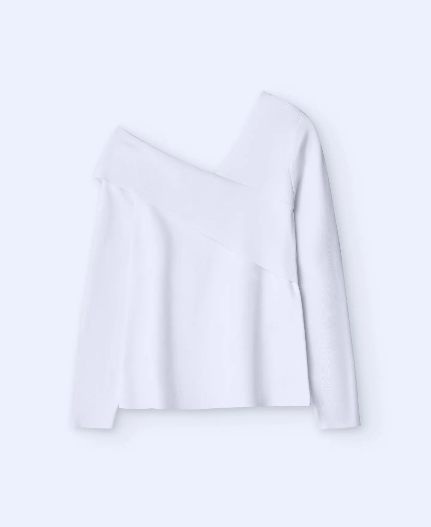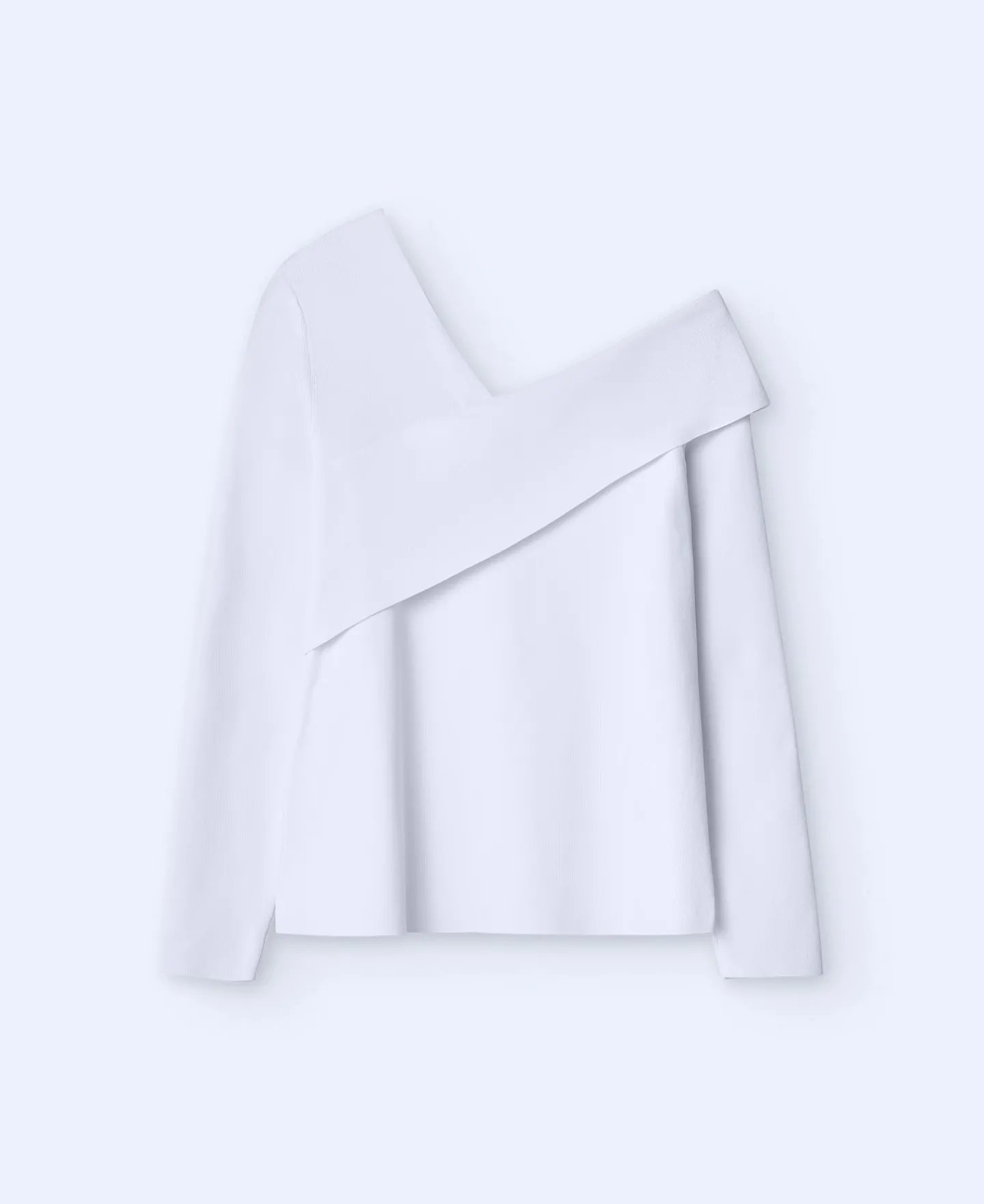 Top Em Malha. Abertura Assimetrica. Manga Comprida. Bainha Reta.