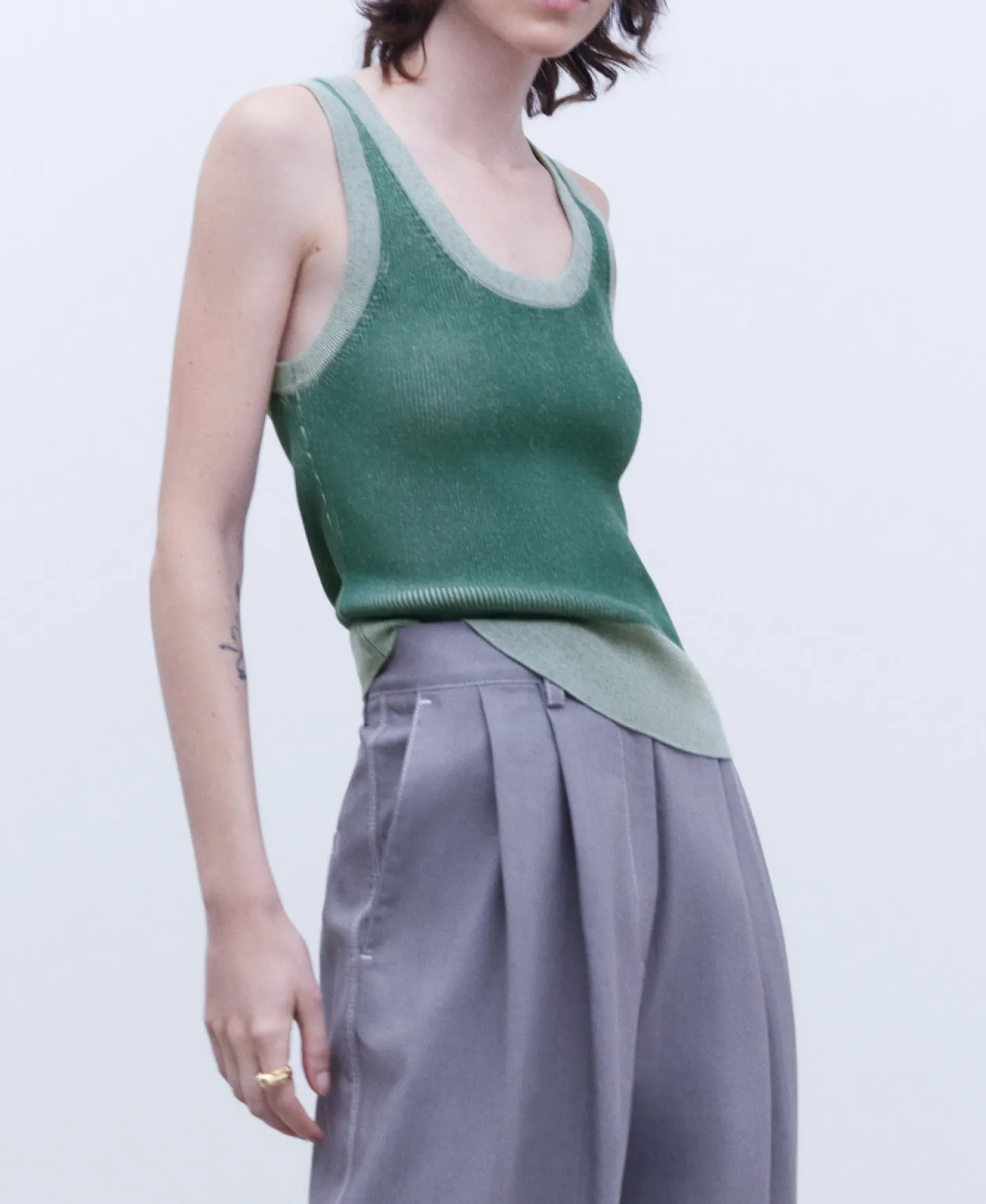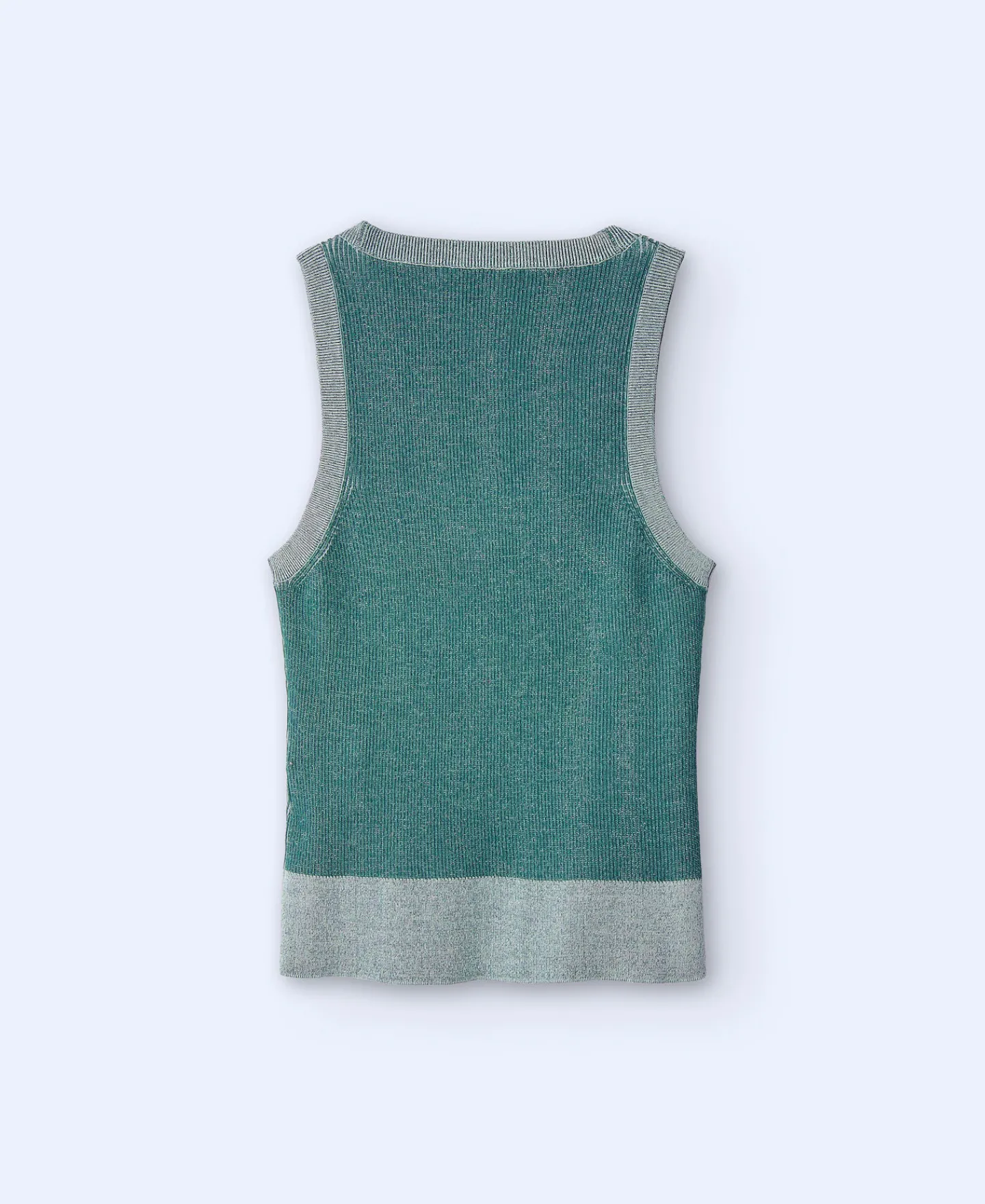Top Em Malha Vanise. Decote Em U. Remates Em Contraste. Bainha Reta.