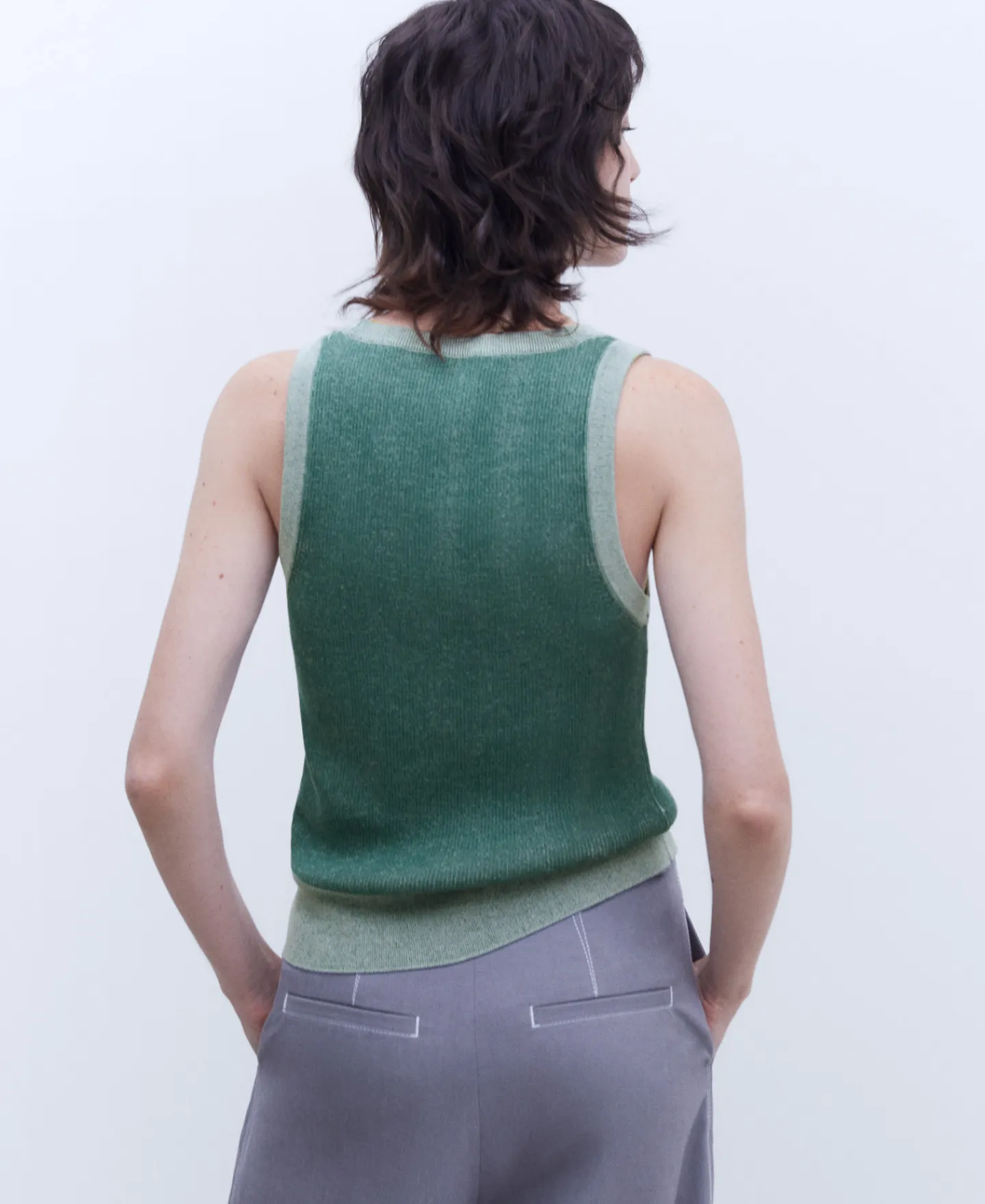 Top Em Malha Vanise. Decote Em U. Remates Em Contraste. Bainha Reta.Malha VaniseDecote Em URemates Em Contraste