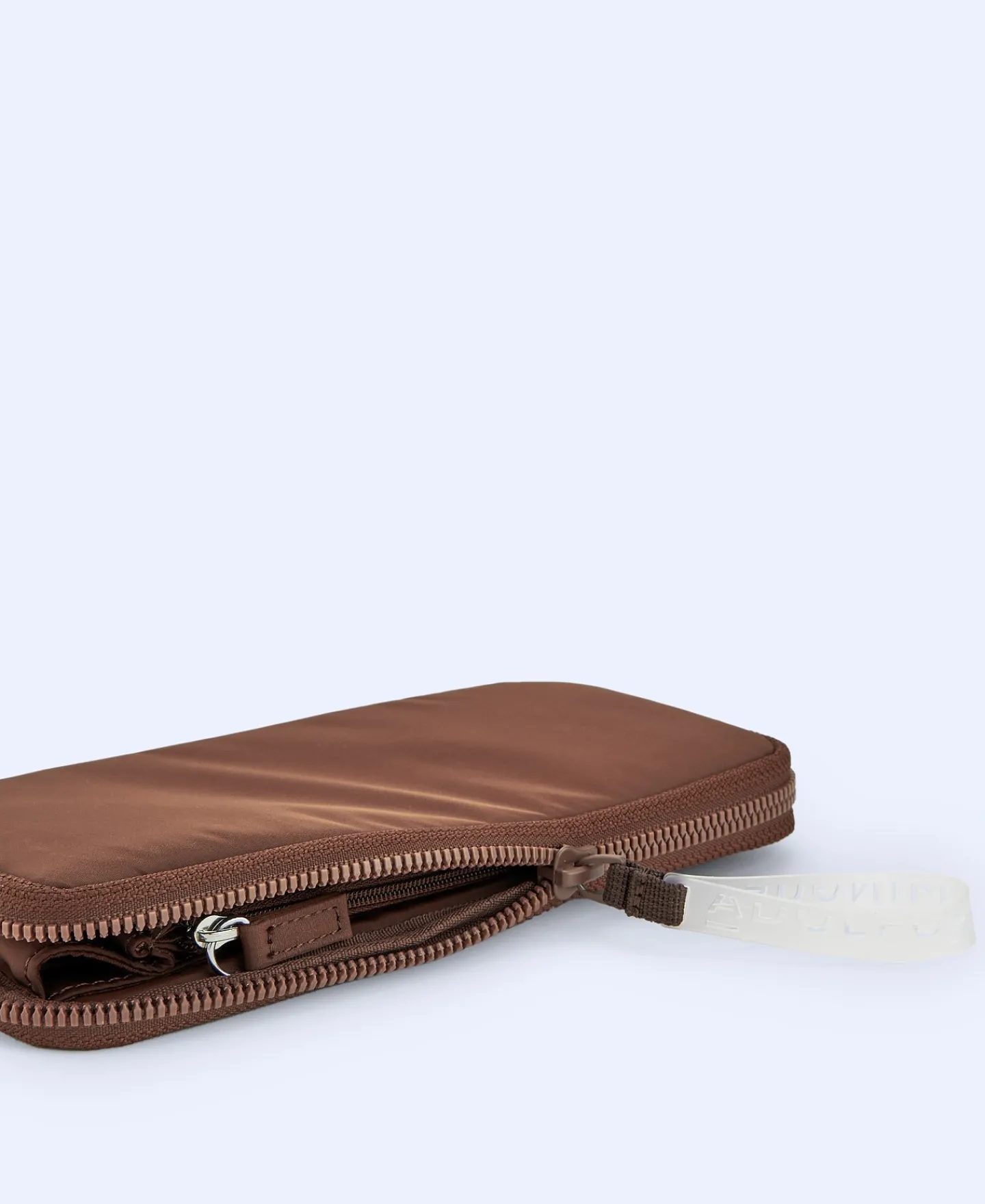 Carteira Retangular Em Textura Lisa. Dois Compartimentos. Fecho De Correr. Porta-Cartoes Interior. Porta-Moedas Interior. Logotipo.