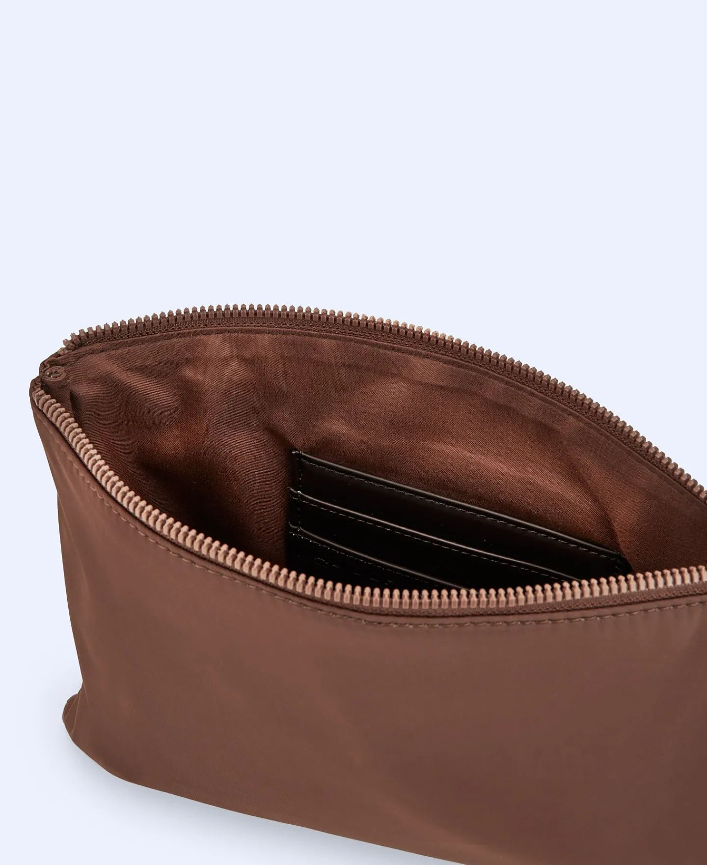 Clutch Retangular Em Textura Lisa. Um Compartimento. Fecho De Correr. Porta-Cartoes Interior. Logotipo.