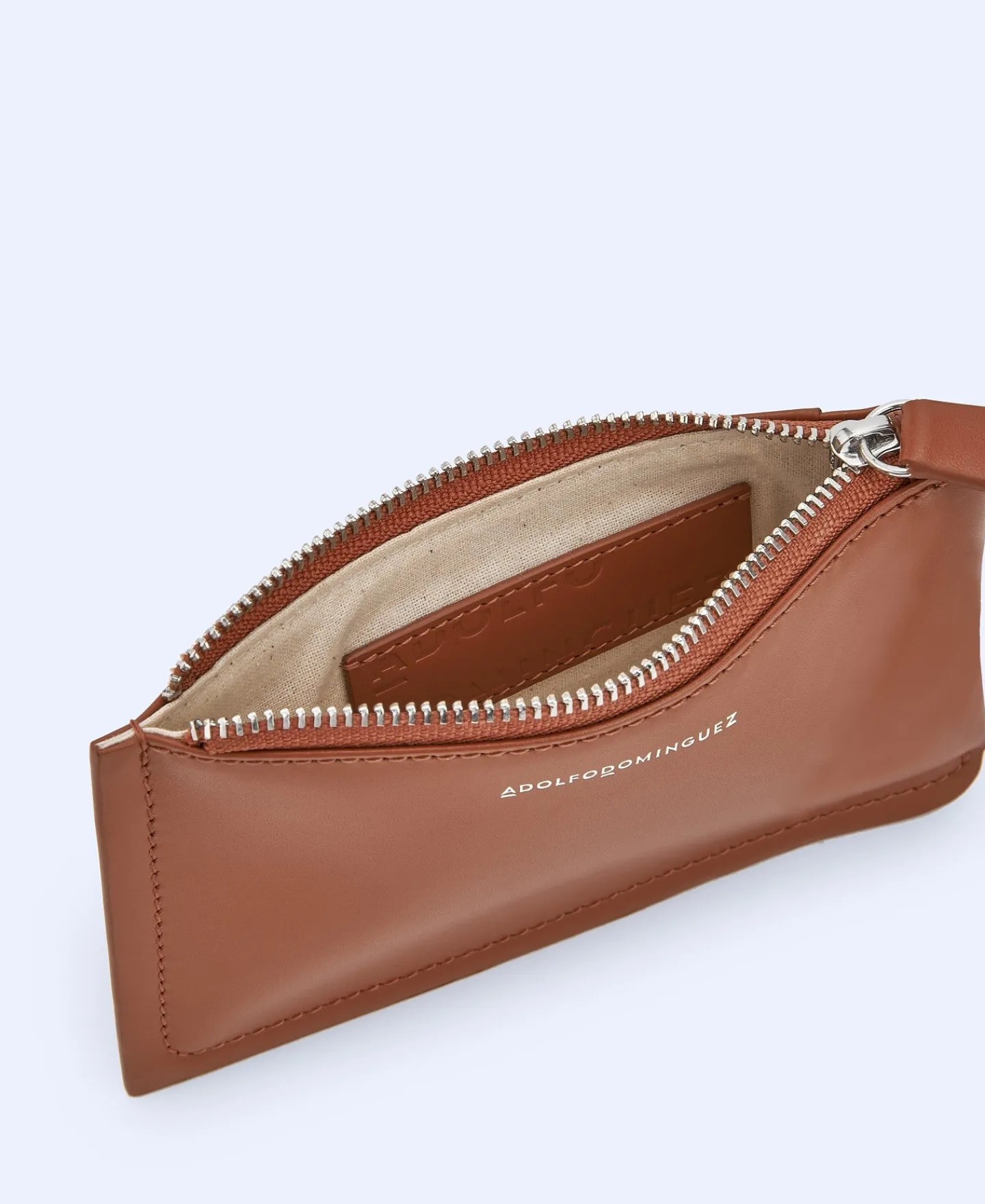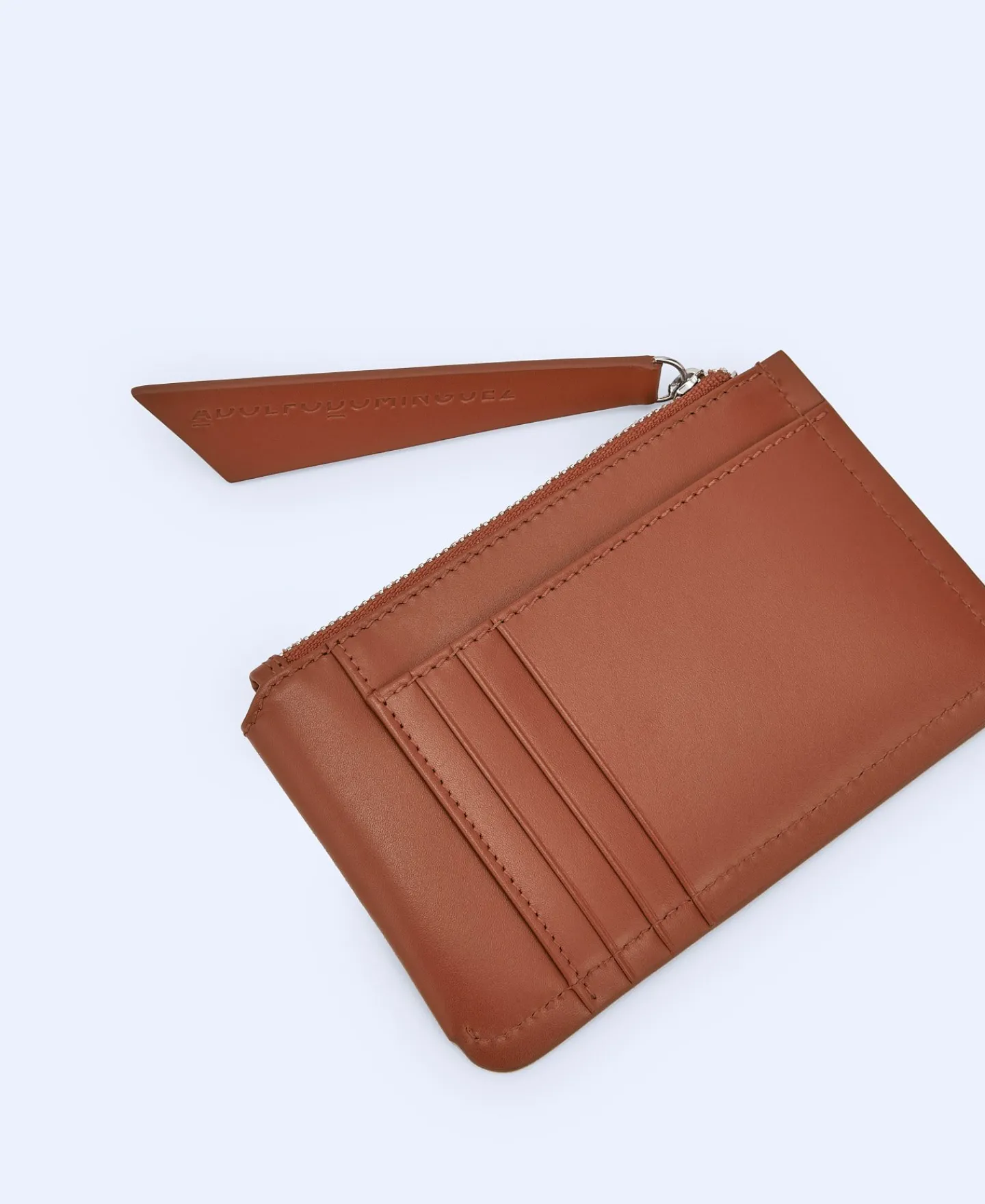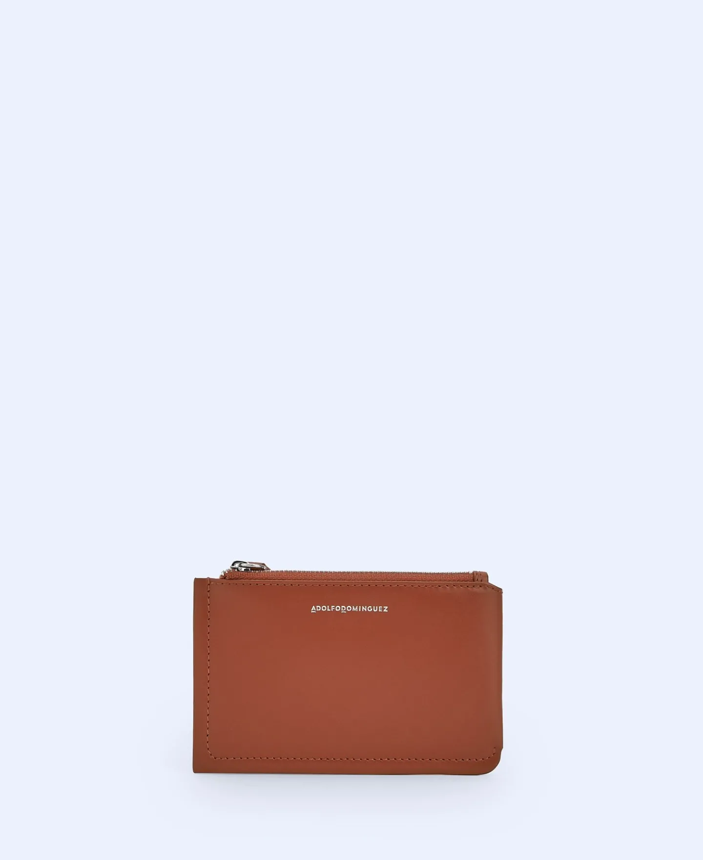 Porta-Moedas Em Pele De Vaca Lisa. Um Compartimento. Fecho De Correr. Bolso Para Cartao. Logotipo.