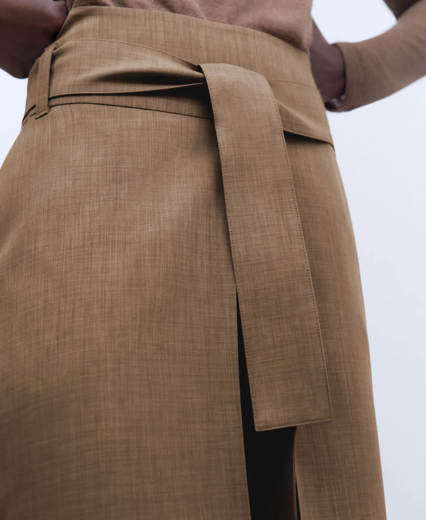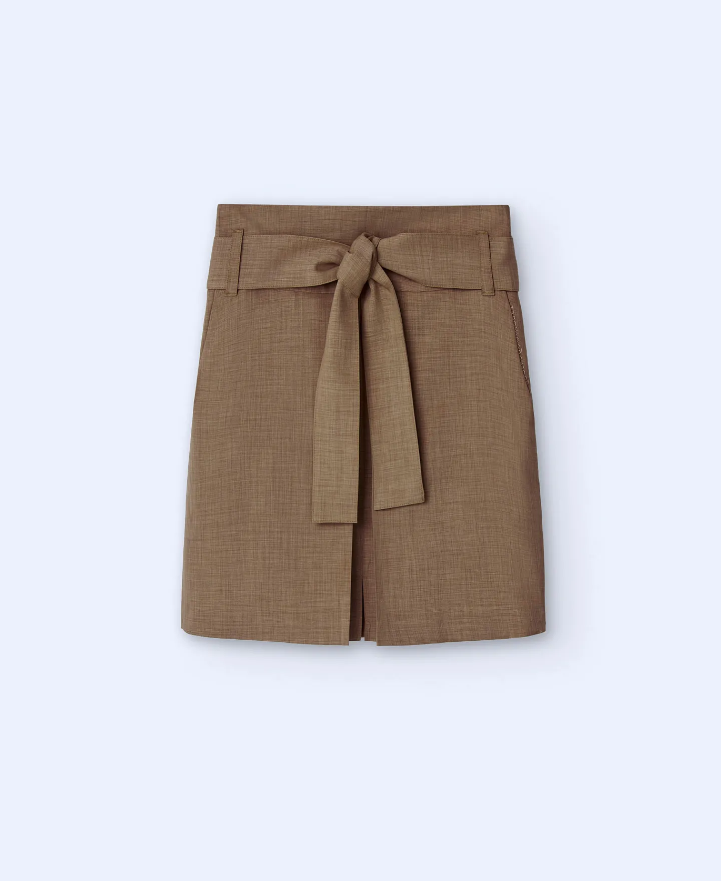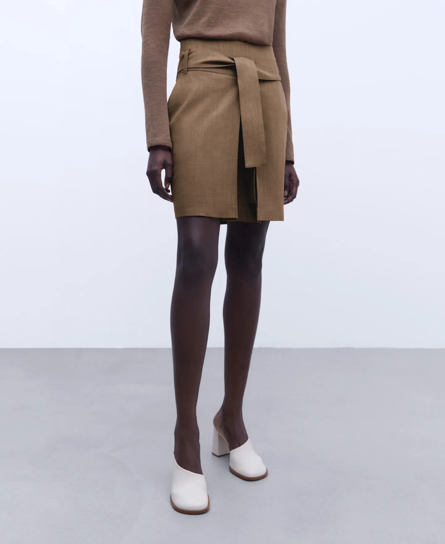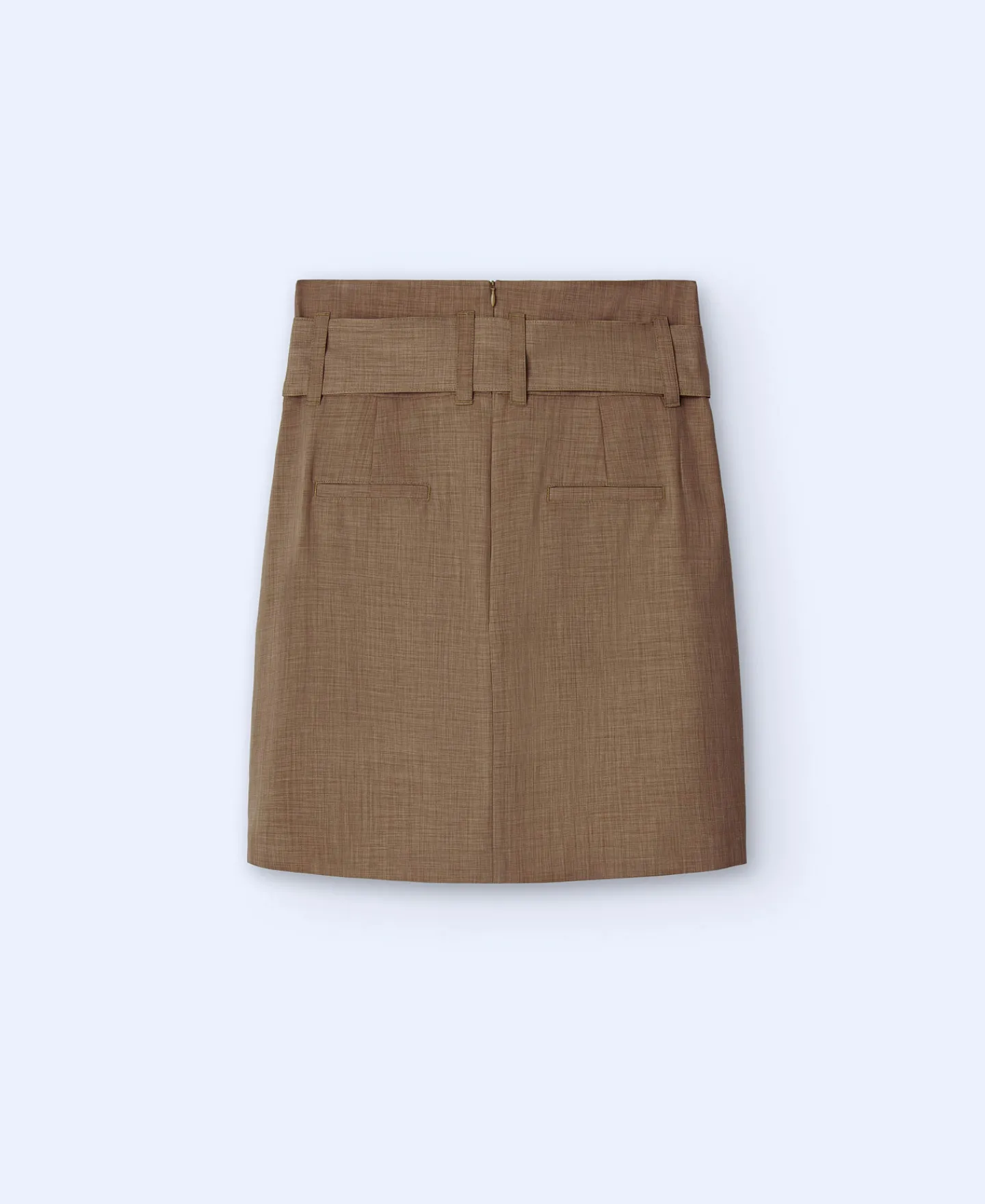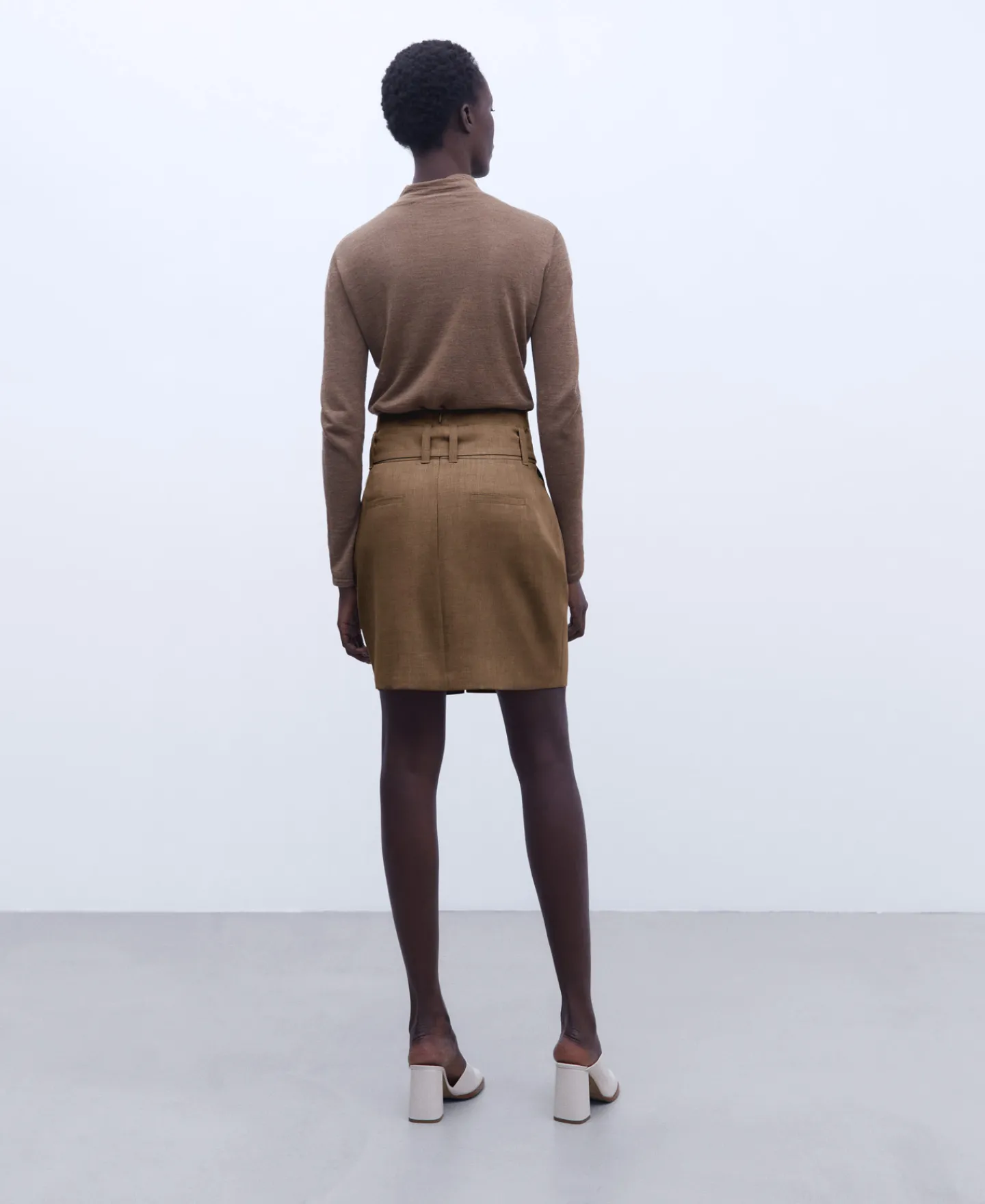 Saia Curta. Cinto. Prega Frontal. Abertura Central. Bolso Lateral. Fecho De Correr Traseiro Oculto. Pinca Posterior. Bol…