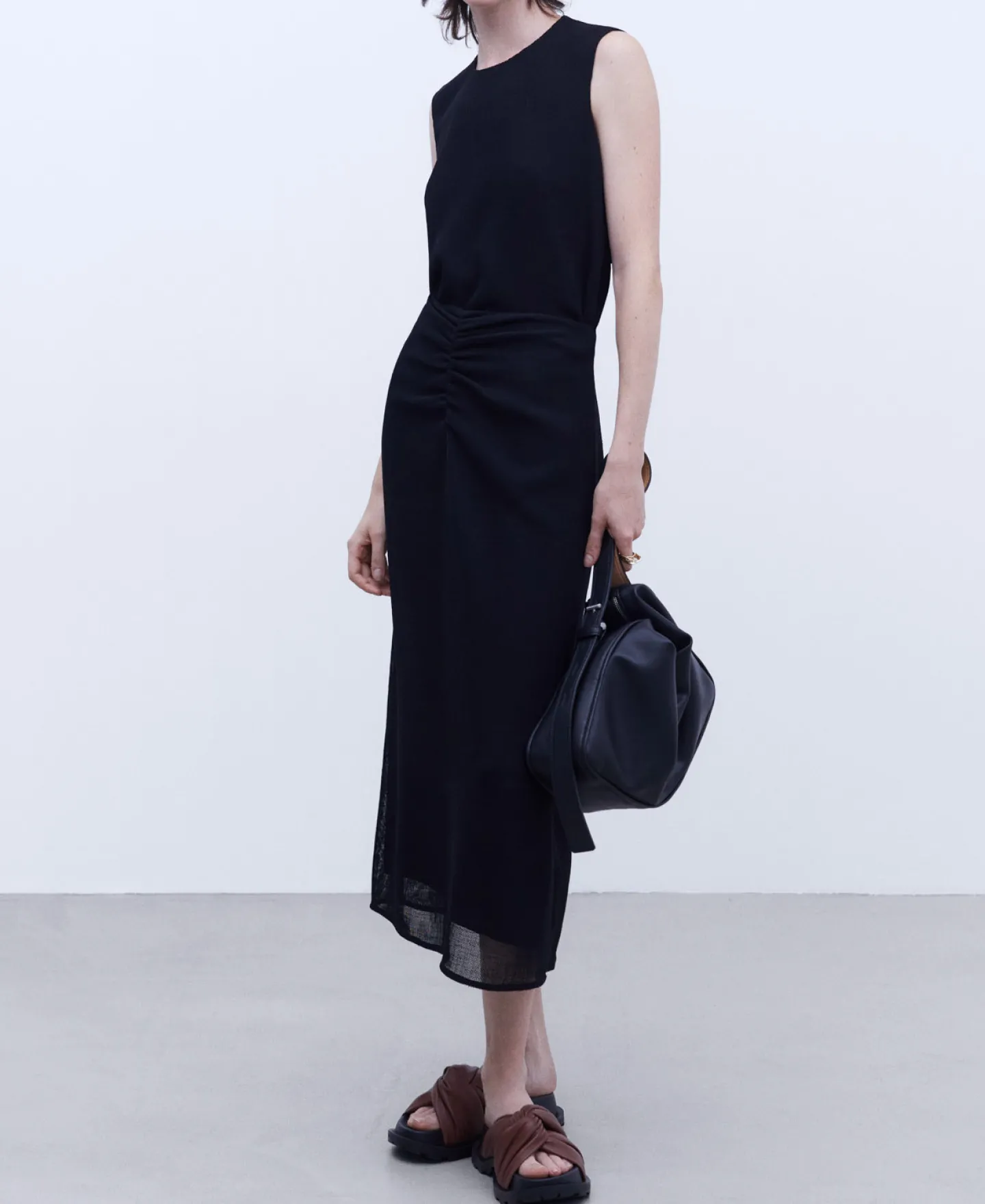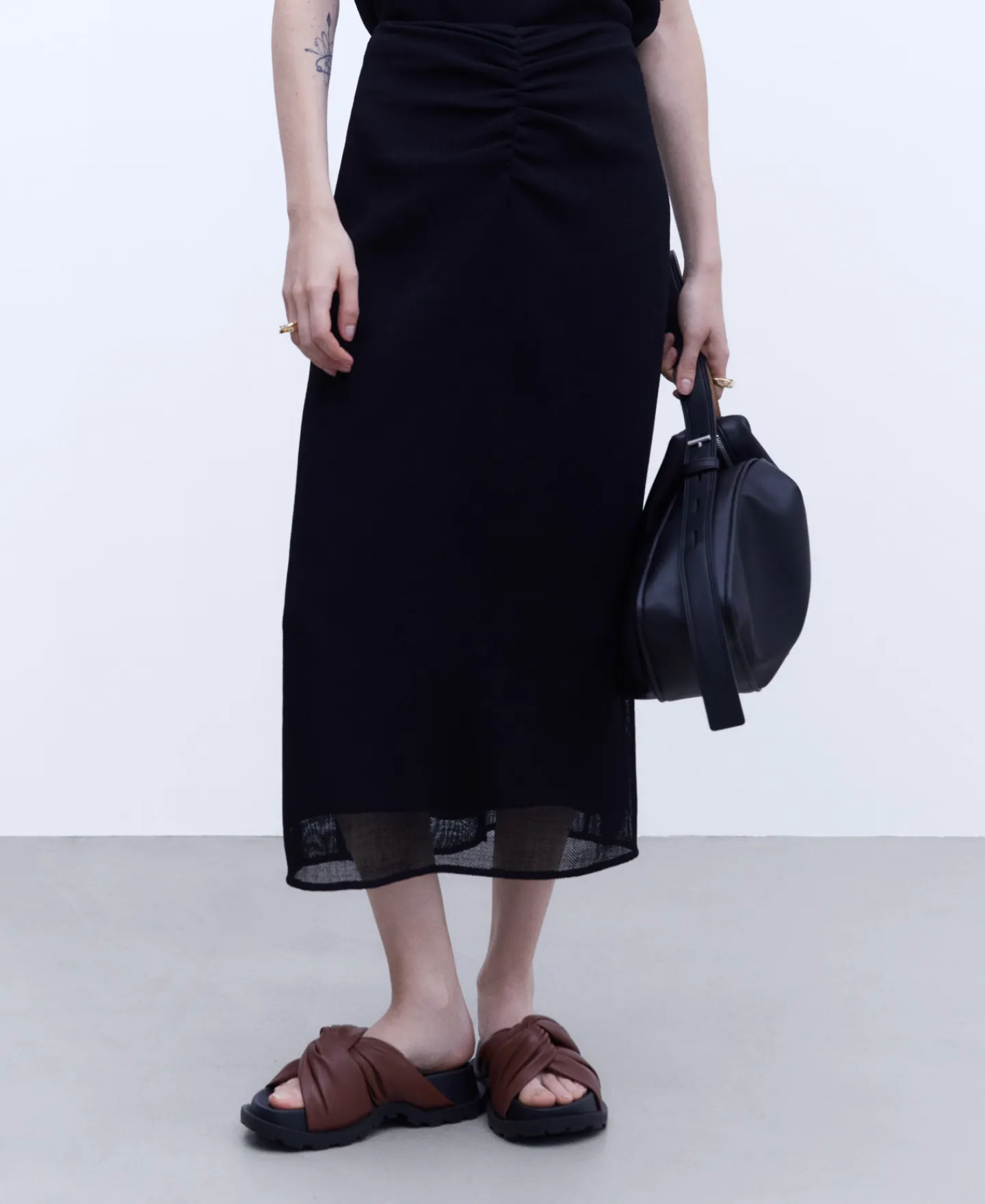Midi. Bainha Reta. Fecho De Correr Traseiro.MidiBainha RetaFranzido DianteiroFecho De Correr